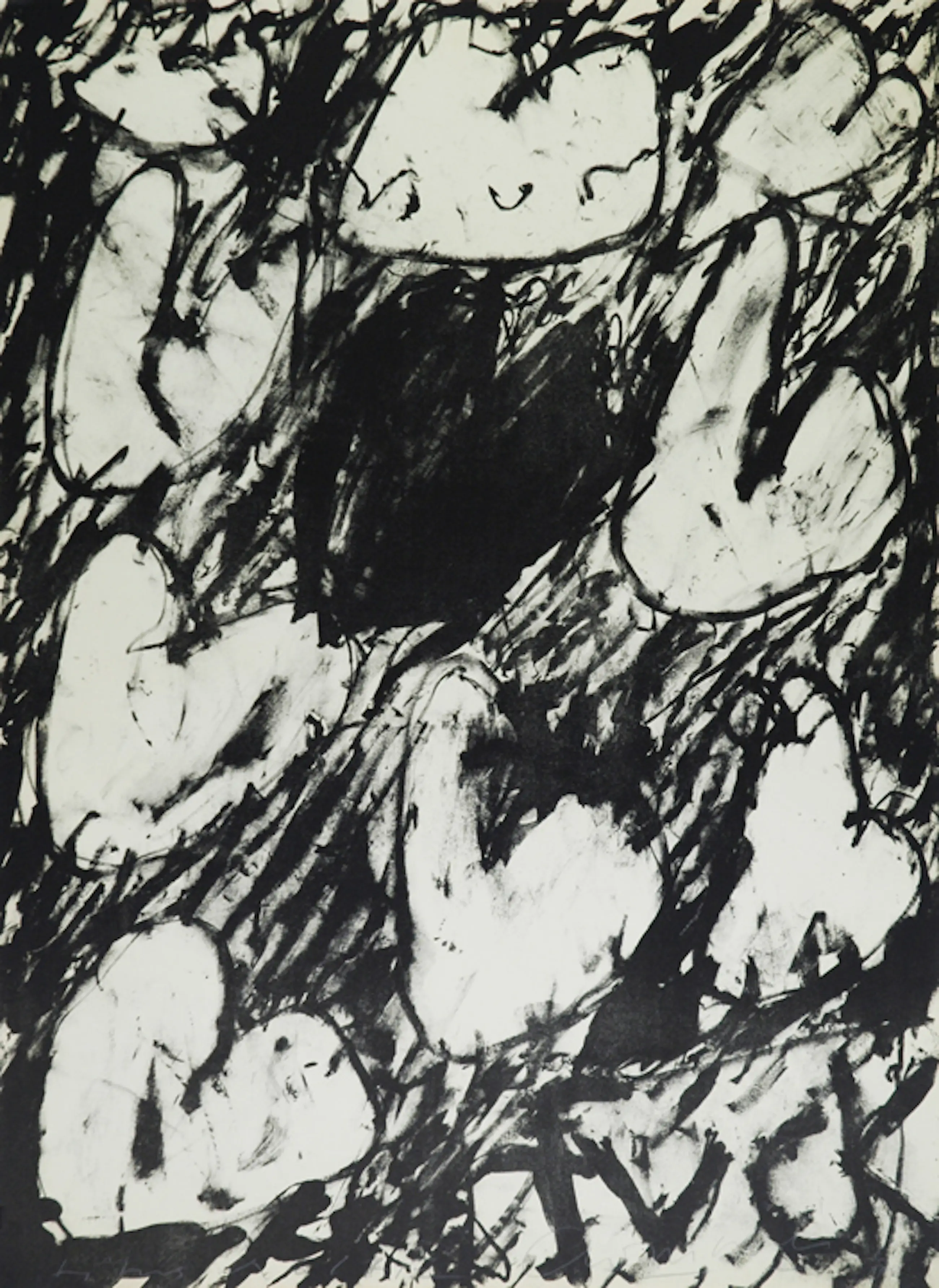 Gedicht van Jan Hanlo, 4 zwart-wit litho's van Freerk de Wit, Hugo Pleysier, Joost Ijland, CWM Dolk/Titus Nolte. Doughnut & Devrient Oplagenummer 22/50