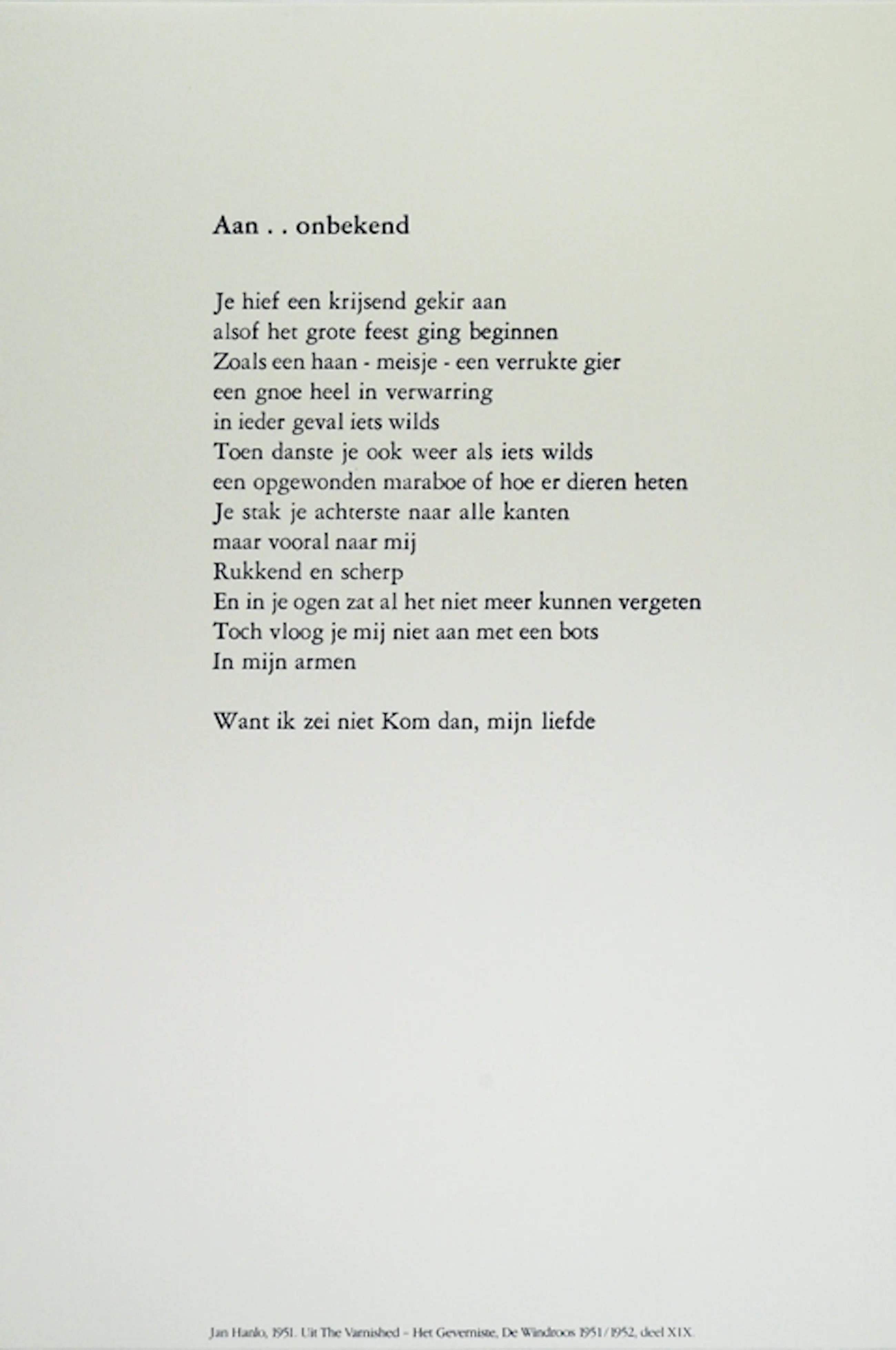 Huug Pleysier - Aan..onbekend - Gedicht van Jan Hanlo met 4 zwart-wit litho's