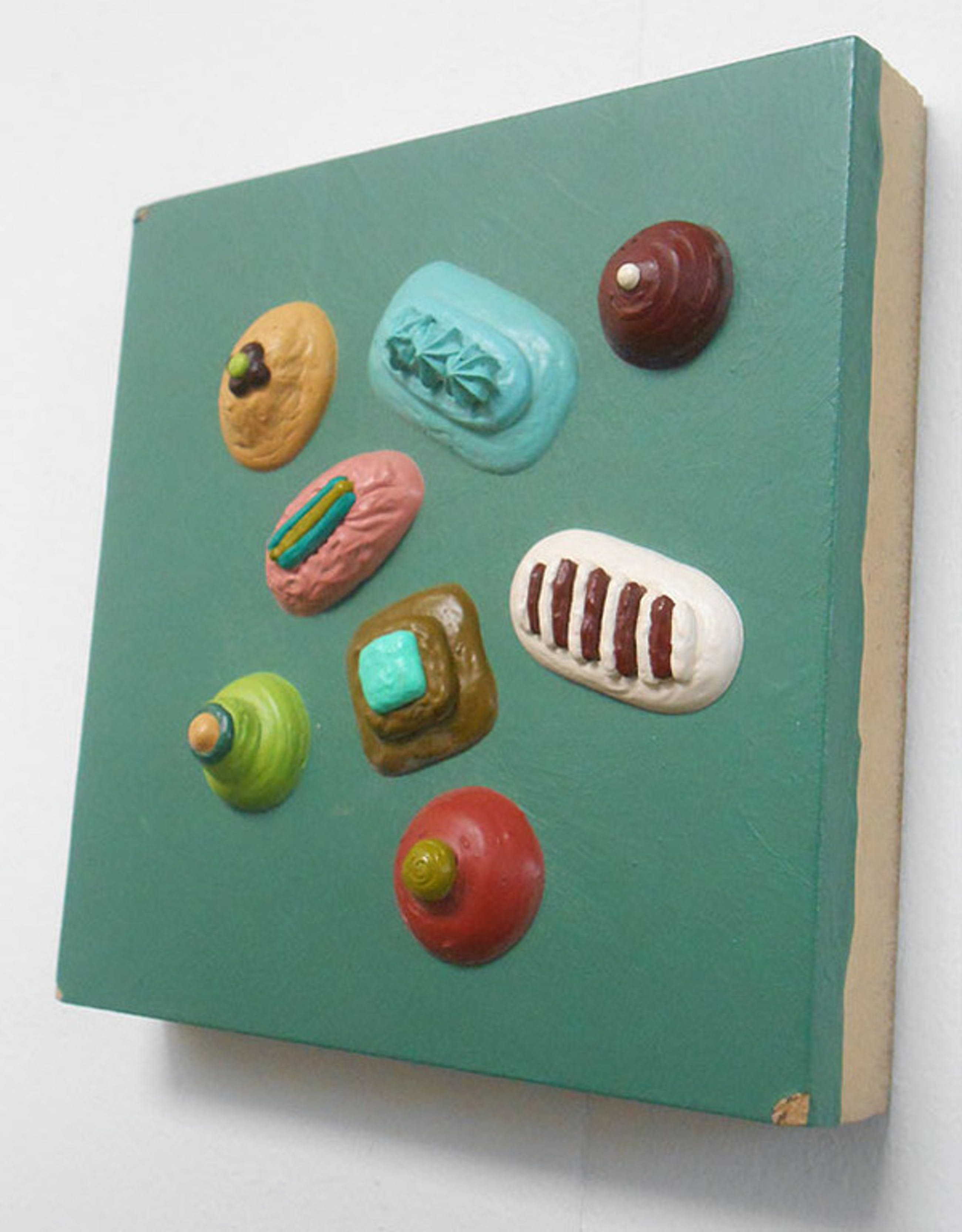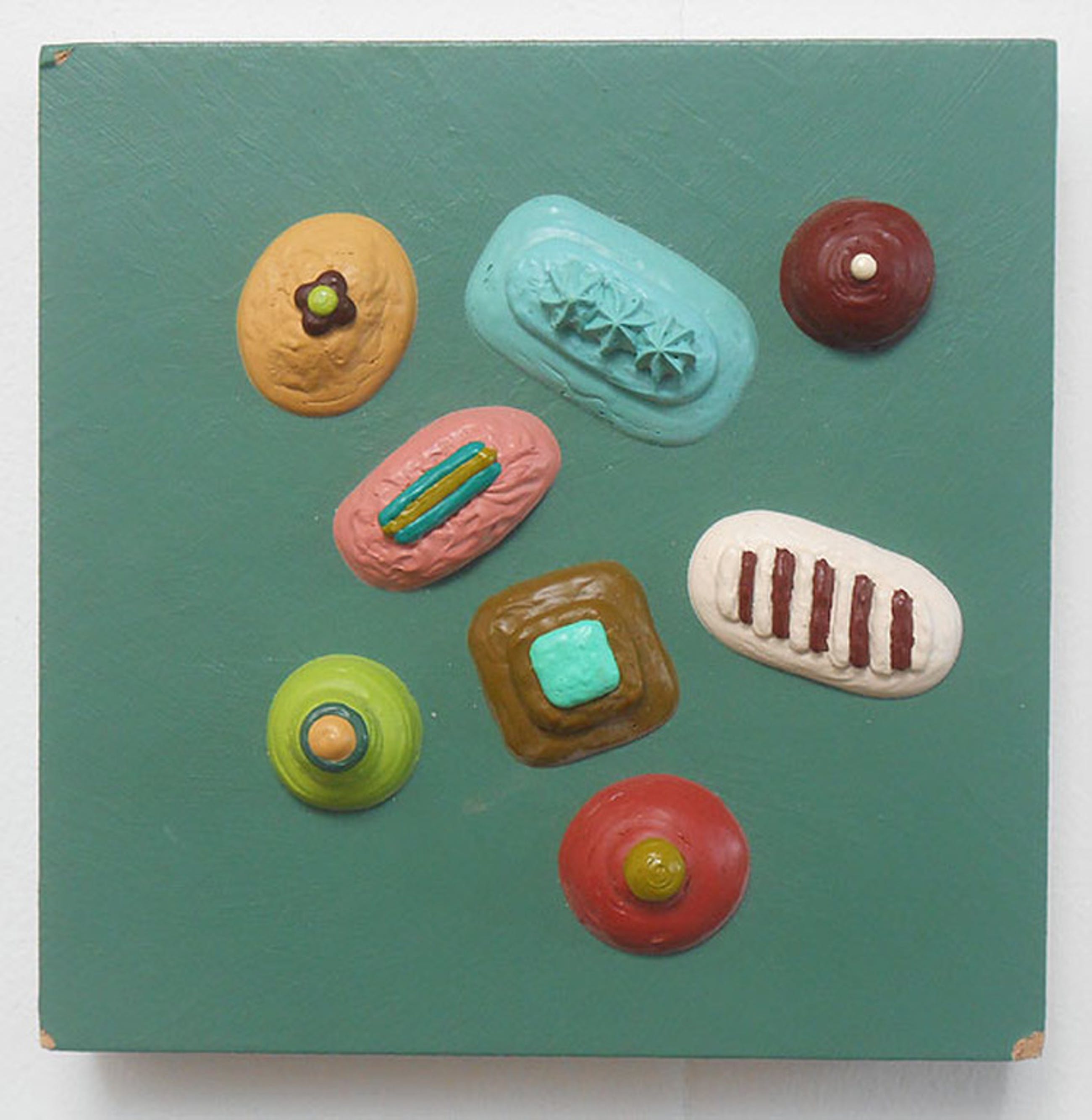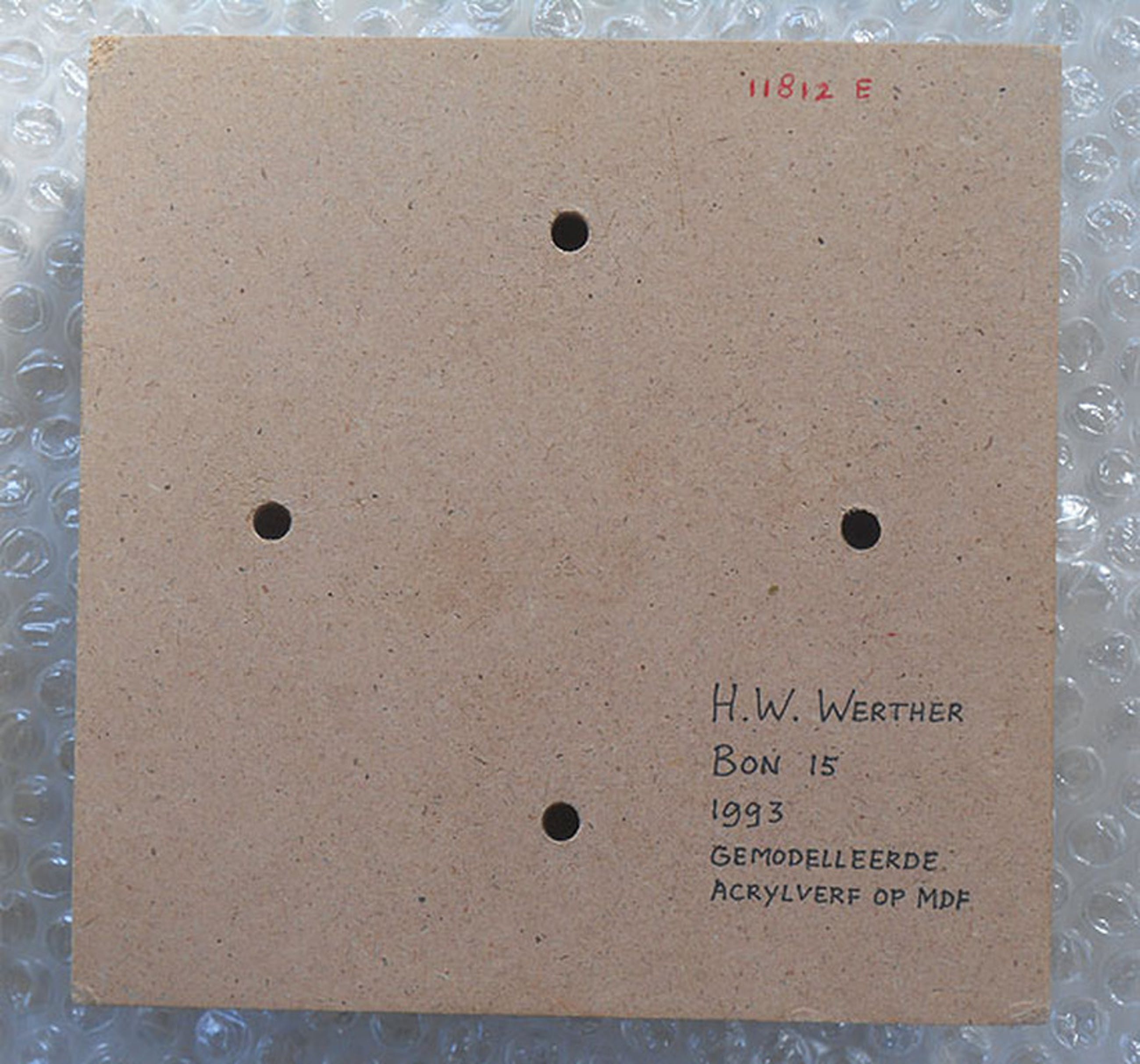 Schilderij, gemodelleerde acrylverf op MDF paneeltje, 15 x 15 cm.