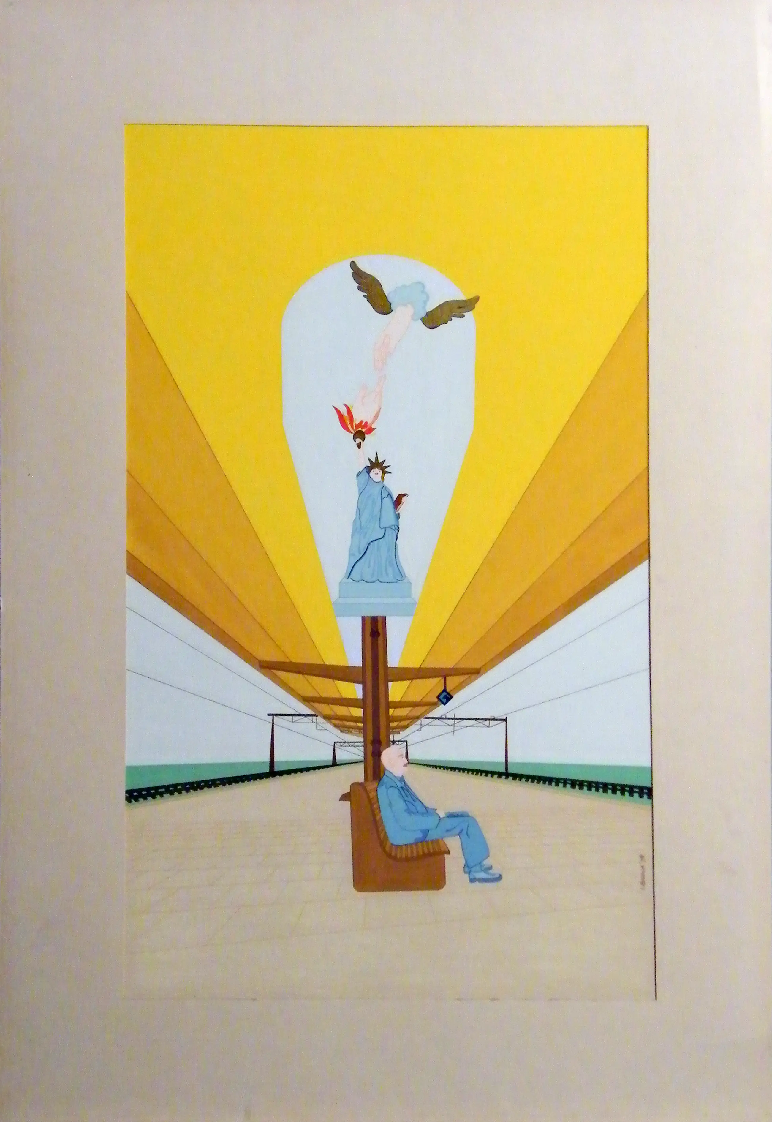 Goed, zit vast aan PP (niet zuurvrij), zonder lijst. Werk komt uit de BKR collectie.