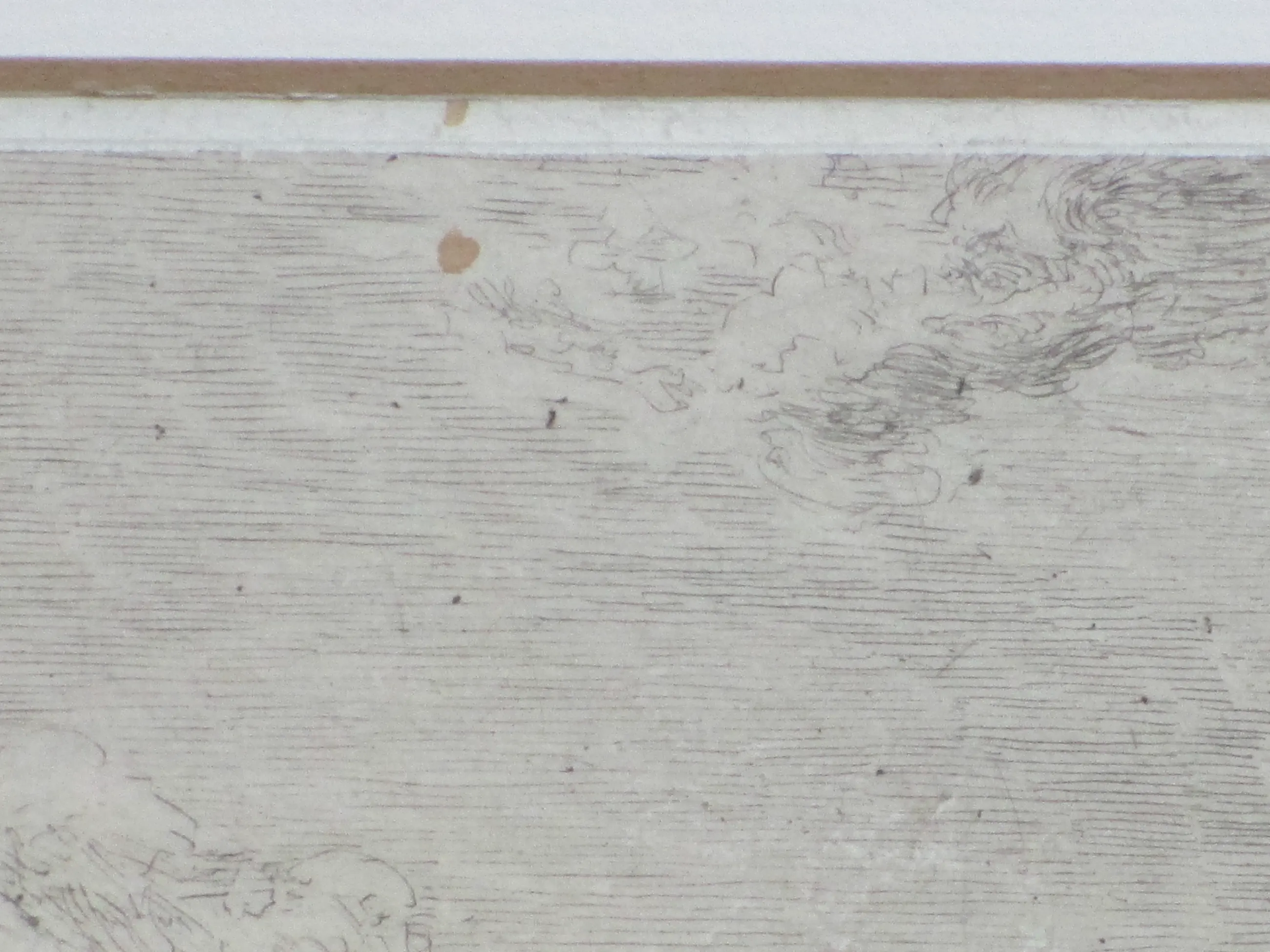 Ets zit vast op onderblad.Kleine foxingplek middenboven.