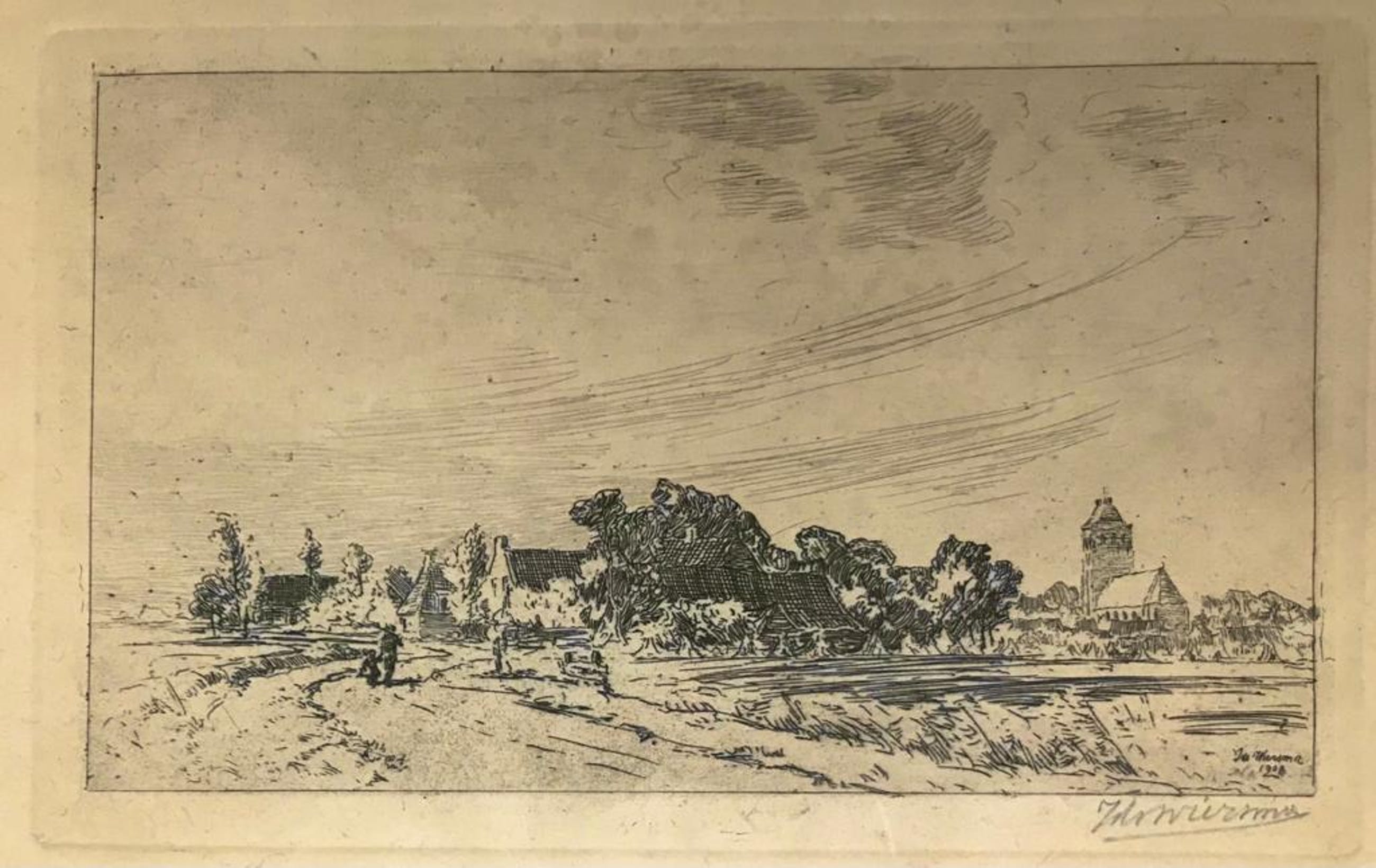 Zeldzame vroege ets van Ids Wiersma. In de plaat en met potlood gesigneerd.