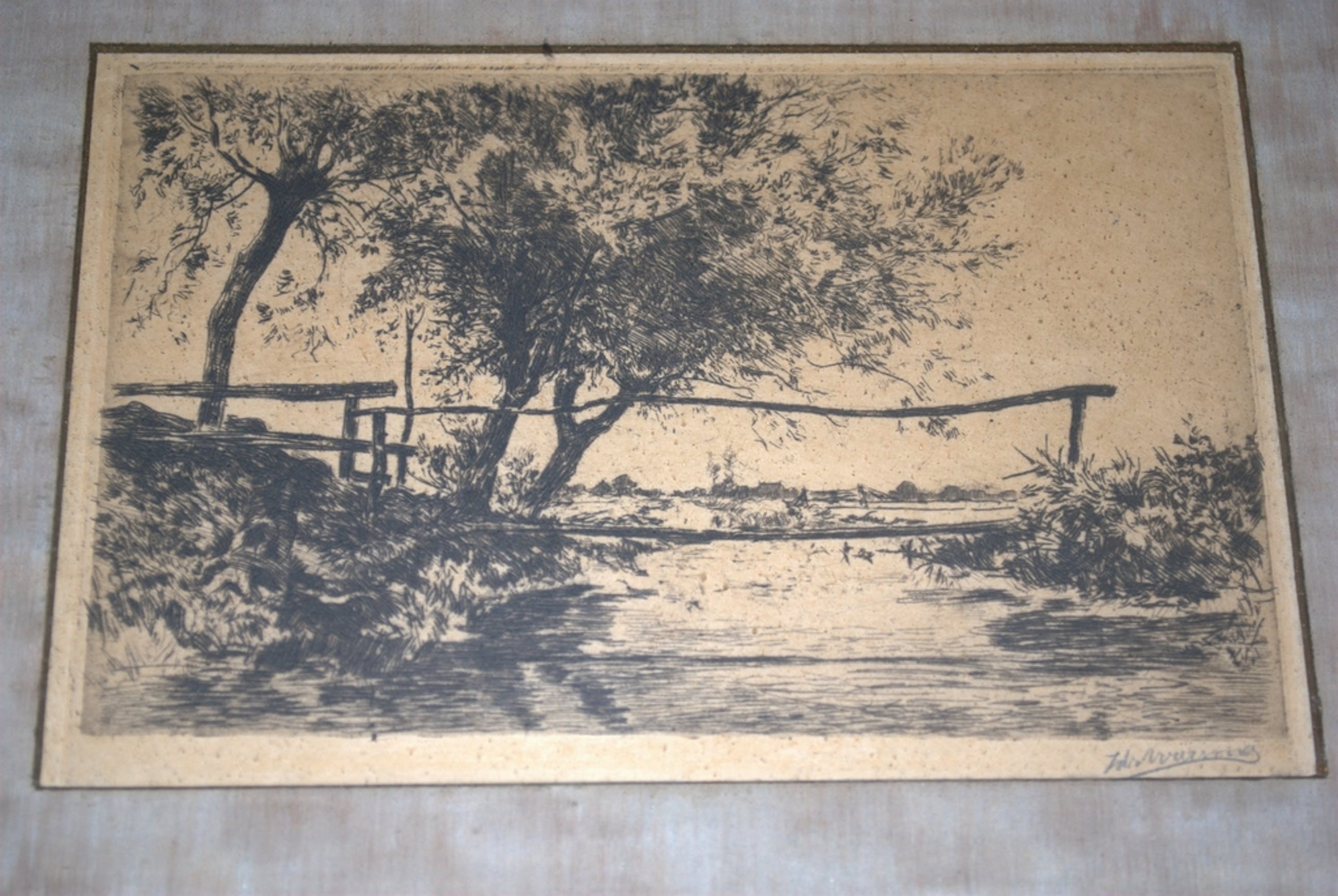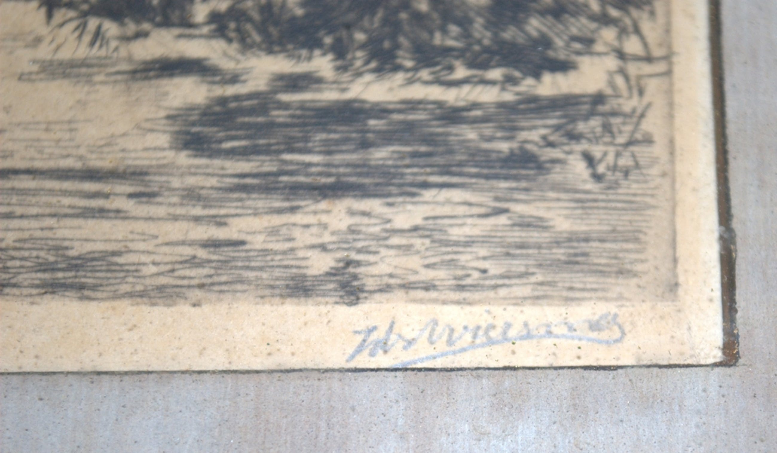 Ids Wiersma: plaatrand ets 10x15.5 cm, in goede staat, licht vergeeld, in potlood gesigneerd.