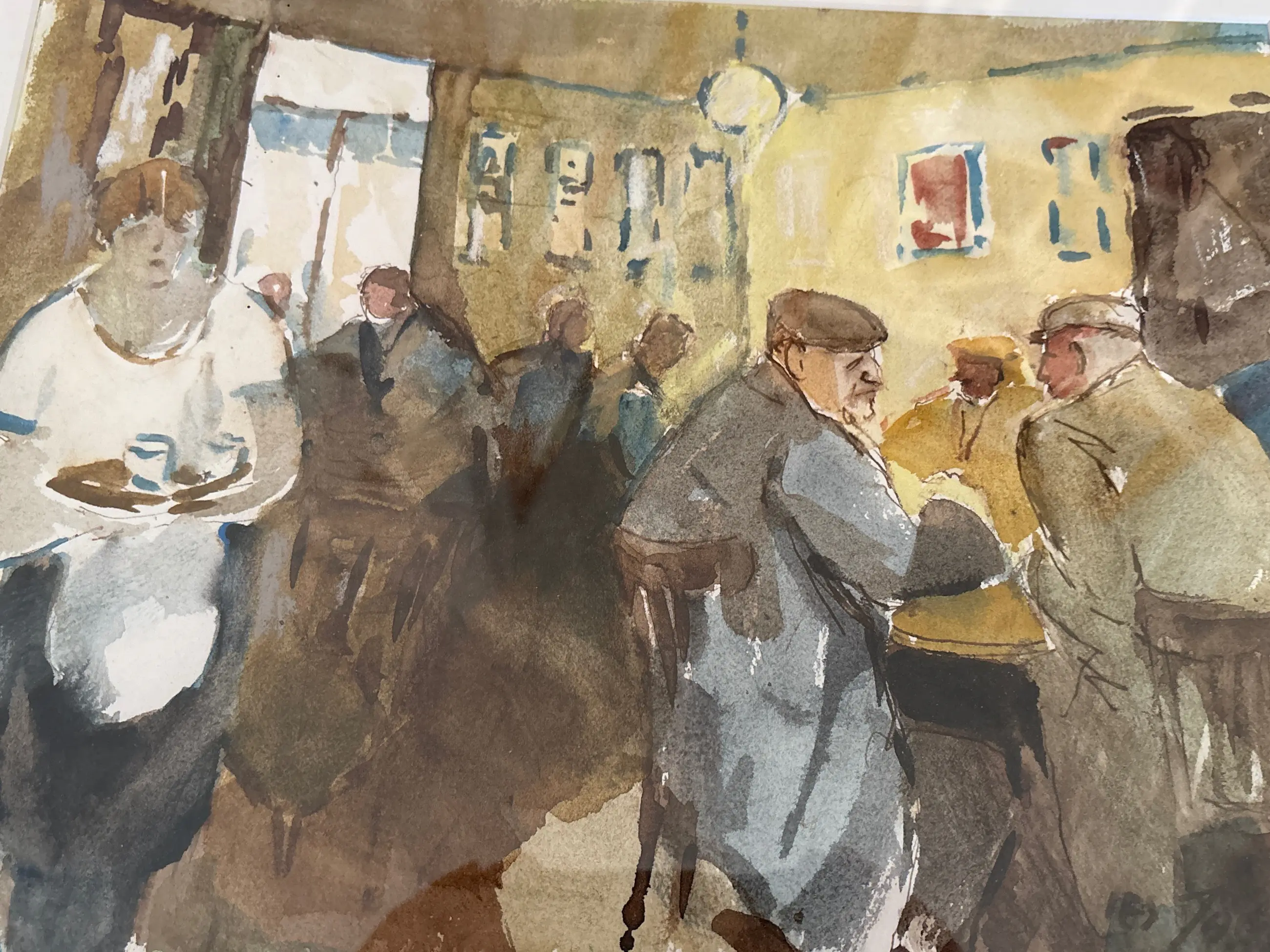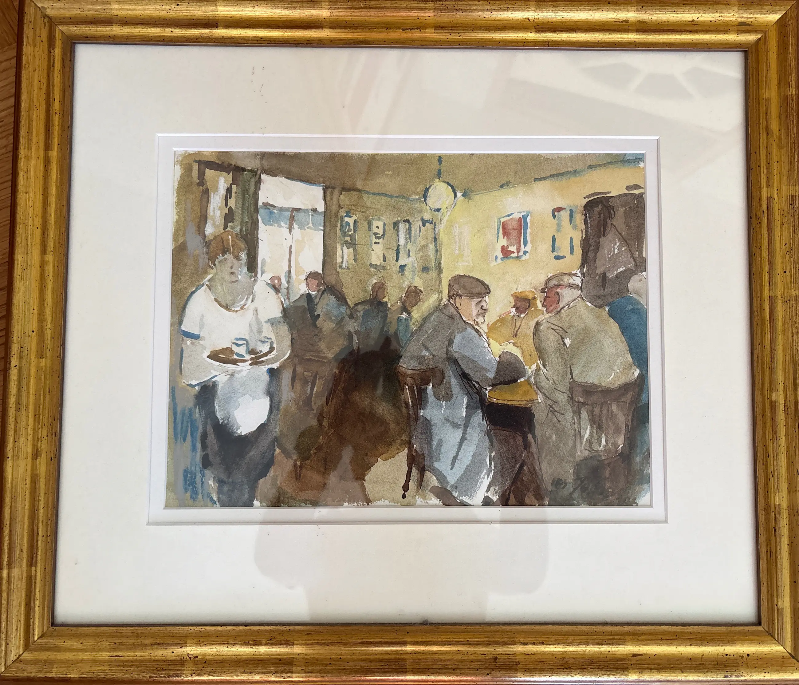 Acquarel van Ies Jacobs met kunstaankoopformulier (gesigneerd).