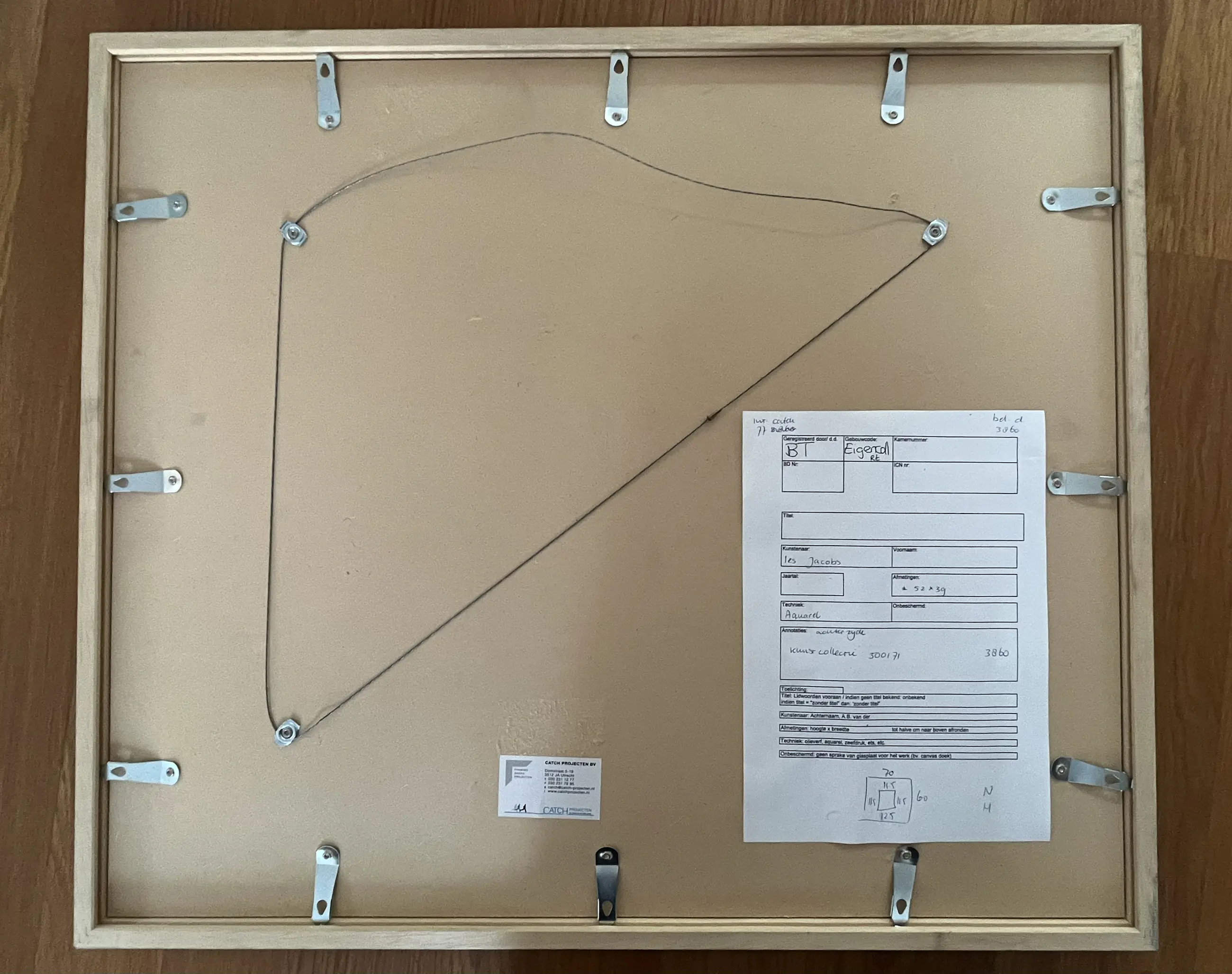Het werk is af te halen op locatie. Als koper dient u zelf verpakkingsmateriaal mee te nemen. De locatie is: Uden, Nederland