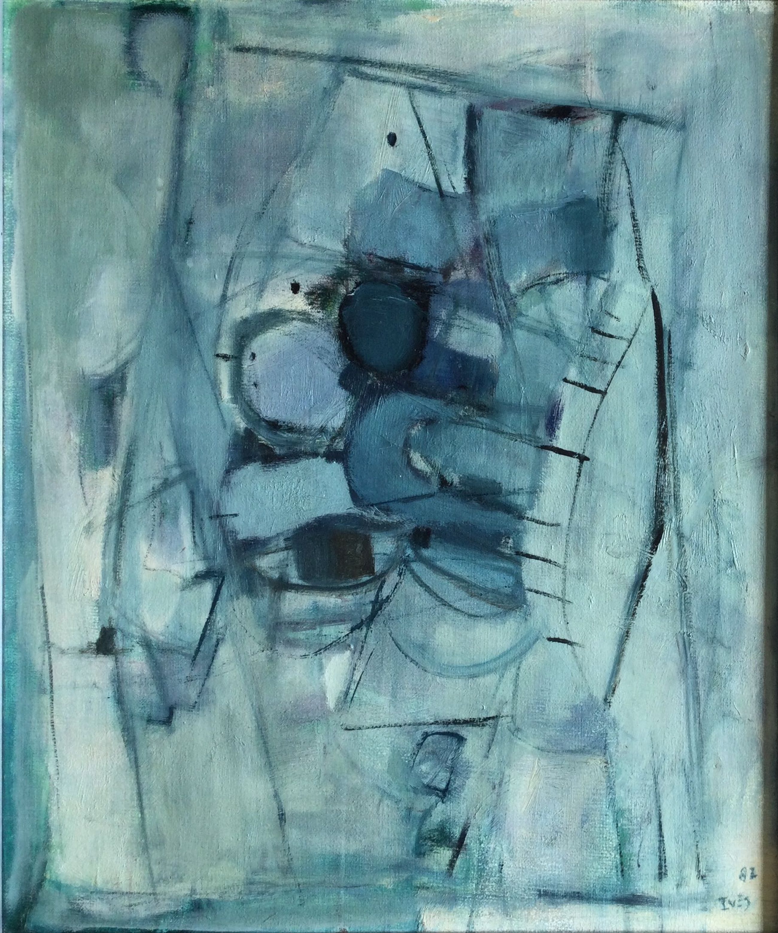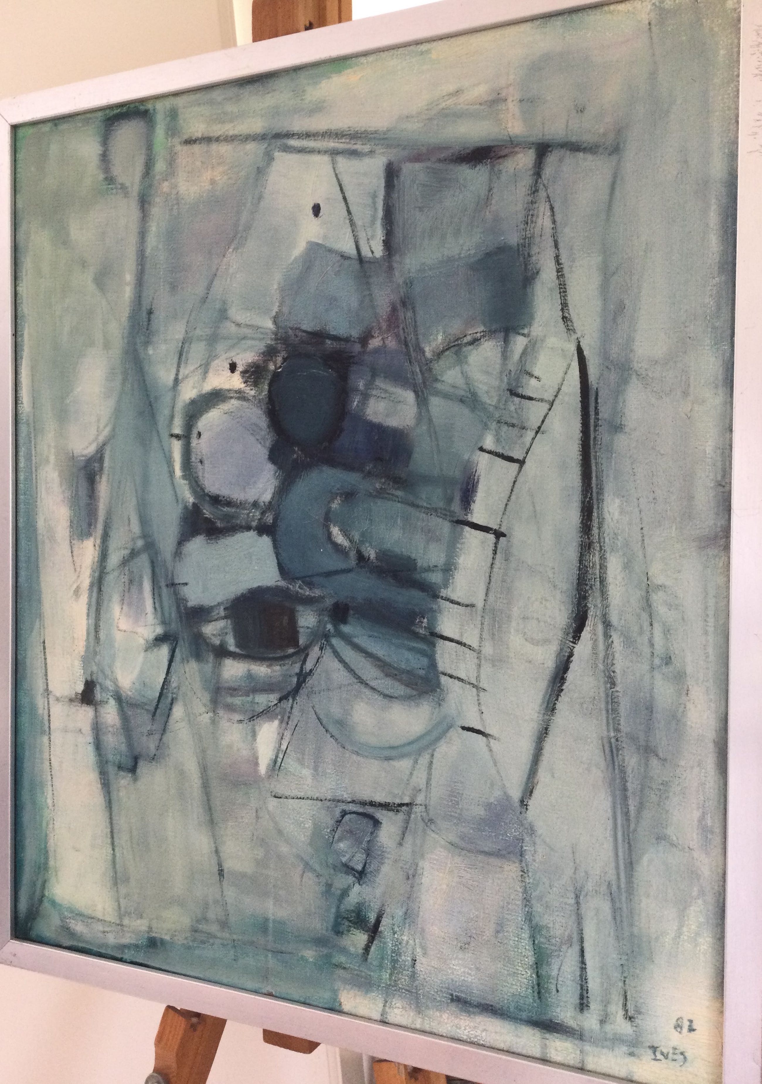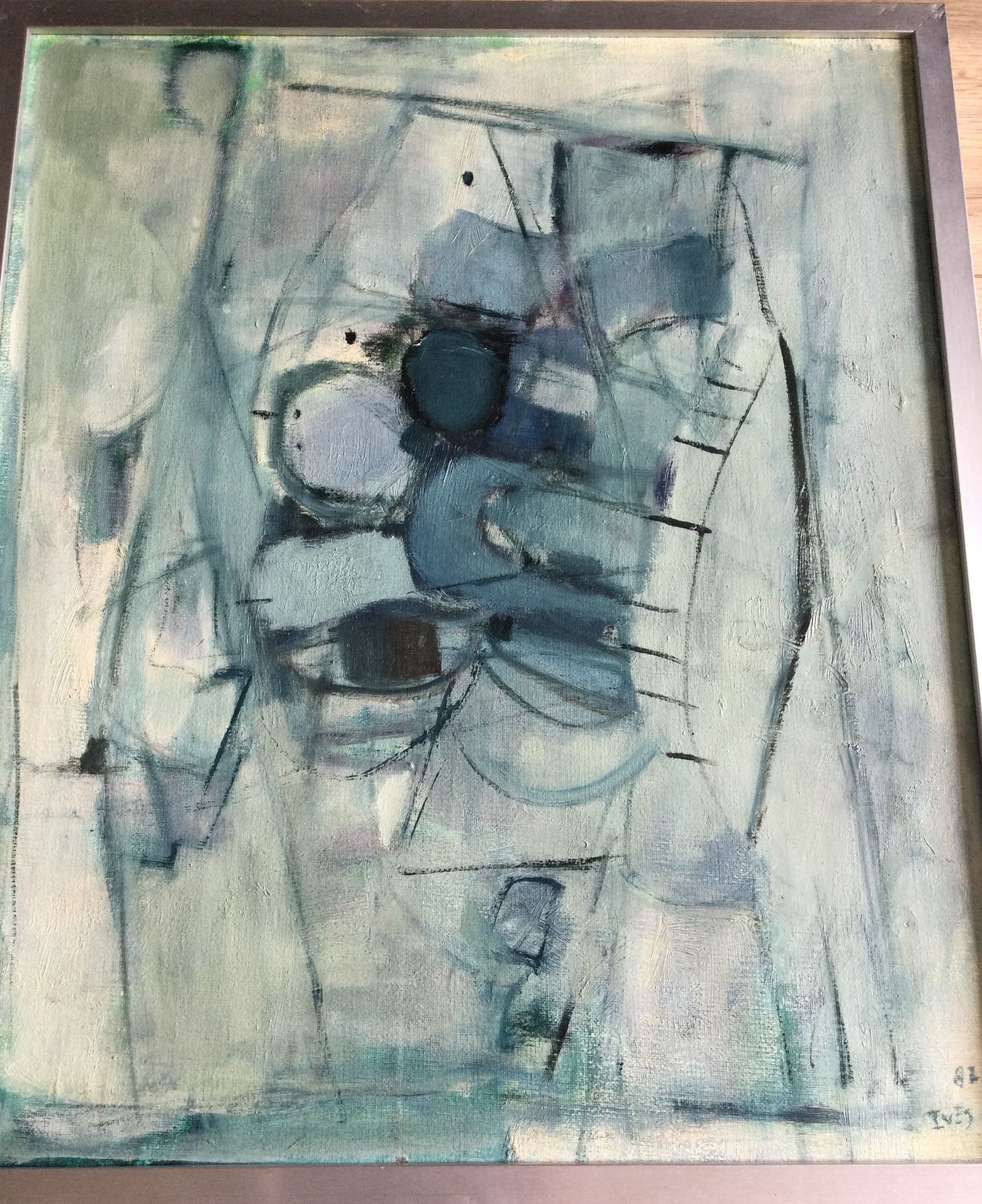 Iet van Es (1932) vinden hun weg doorgaans via de professionele kunsthandel en galerieën. Dit schilderij is afkomstig uit een bedrijfscollectie.