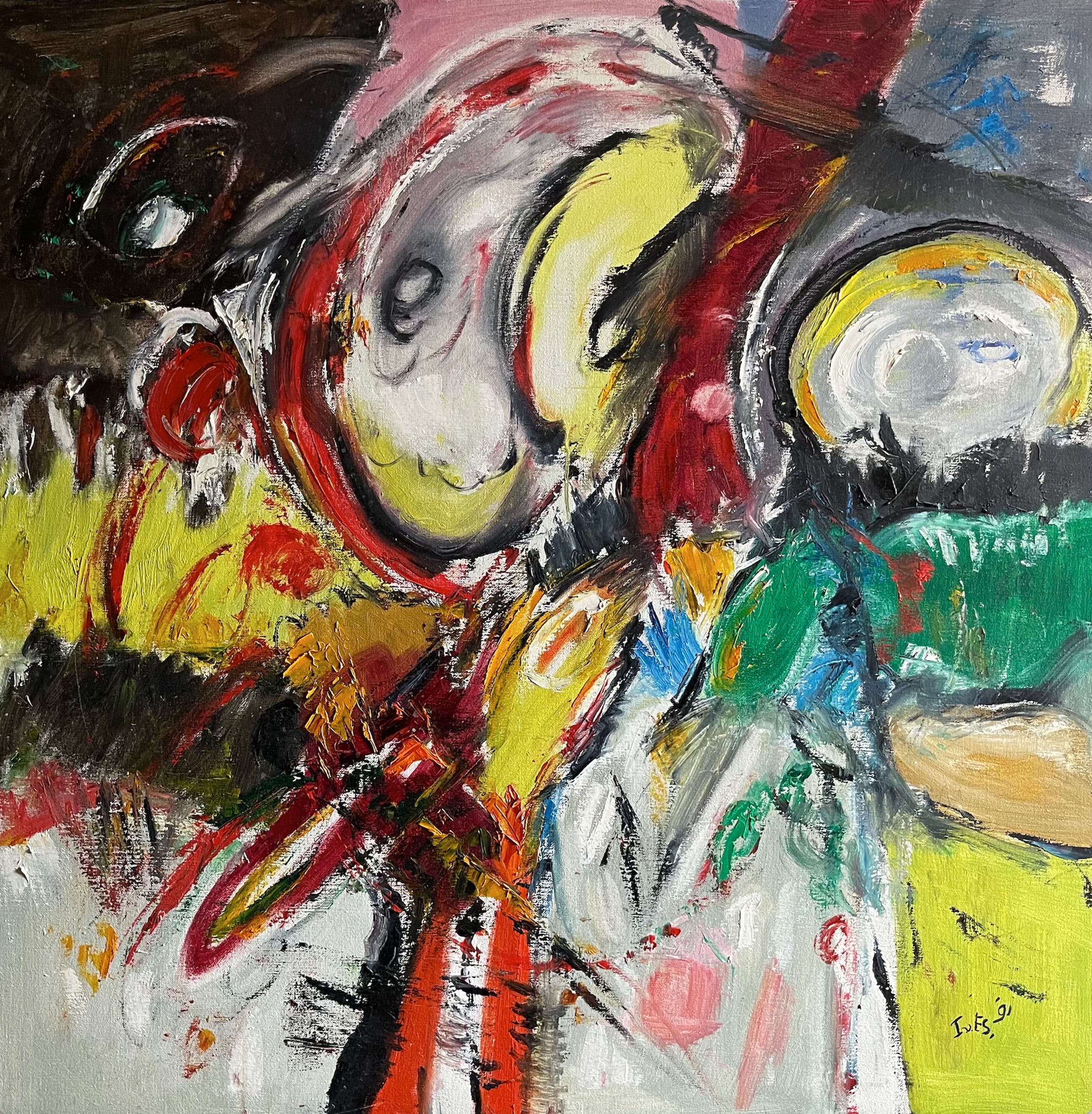 Heeft altijd bij ons in de vergaderruimte gehangen echter door verhuizing naar een kleiner pand in het archief beland. Midden jaren 90 aangekocht bij Business Art Services in Raamsdonksveer. De houten lijst moet waarschijnlijk een keer opnieuw zwart geschilderd worden. Het doek zelf is in goede staat.