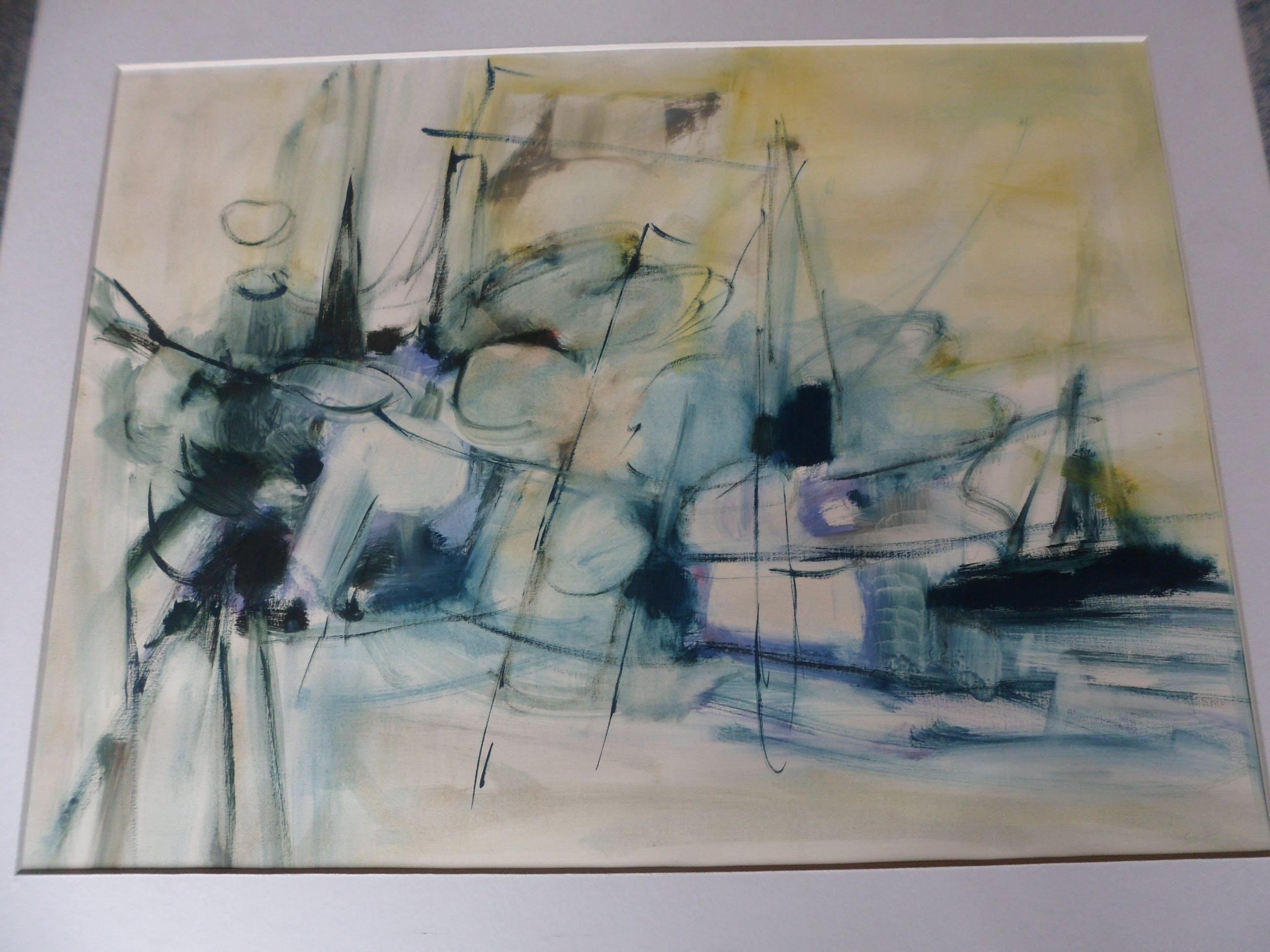 Fraai abstract werk van de Nederlandse kunstenaar Let van Es. Gesigneerd en gedateerd r.o. met: L. v. Es '81