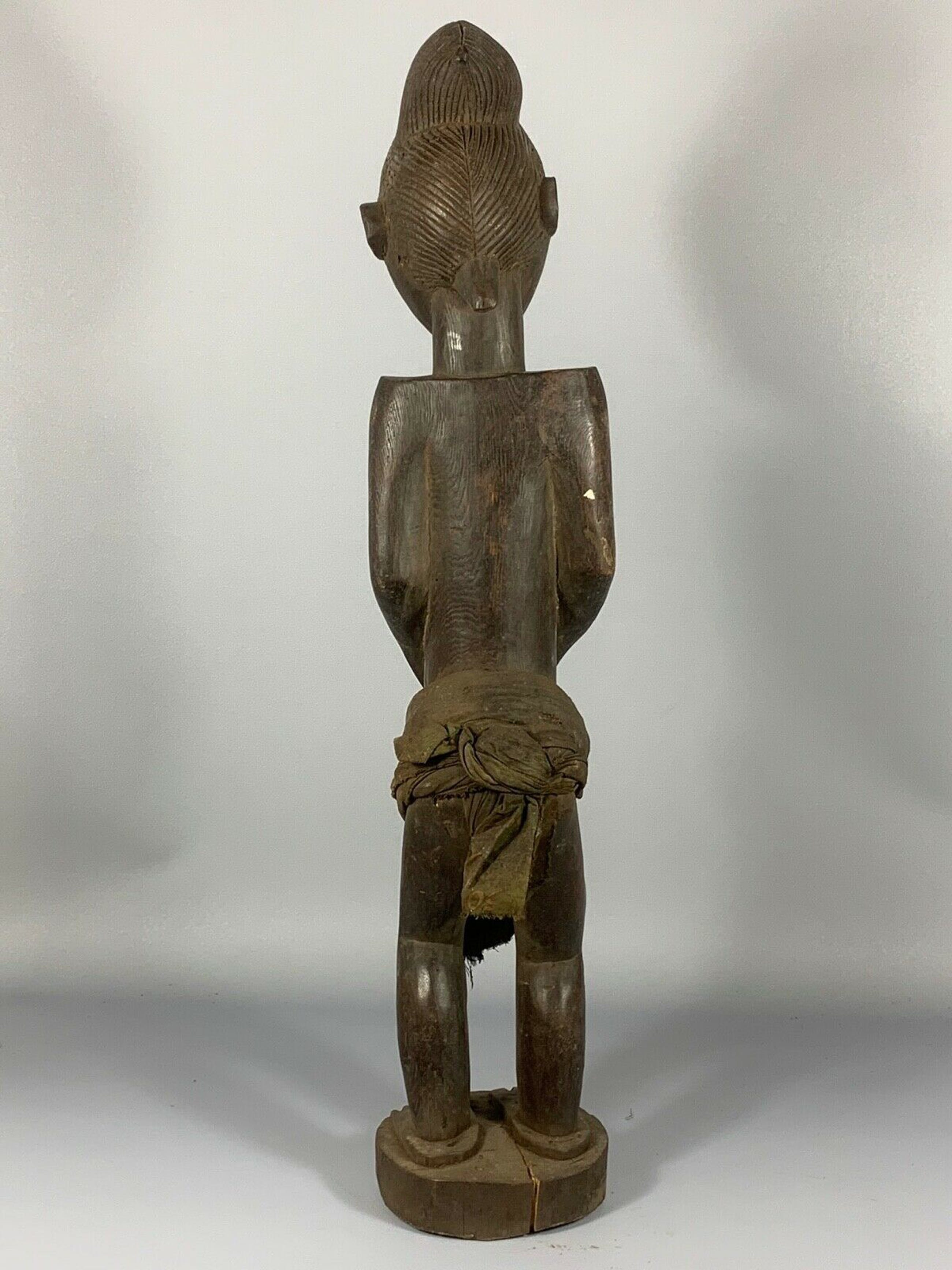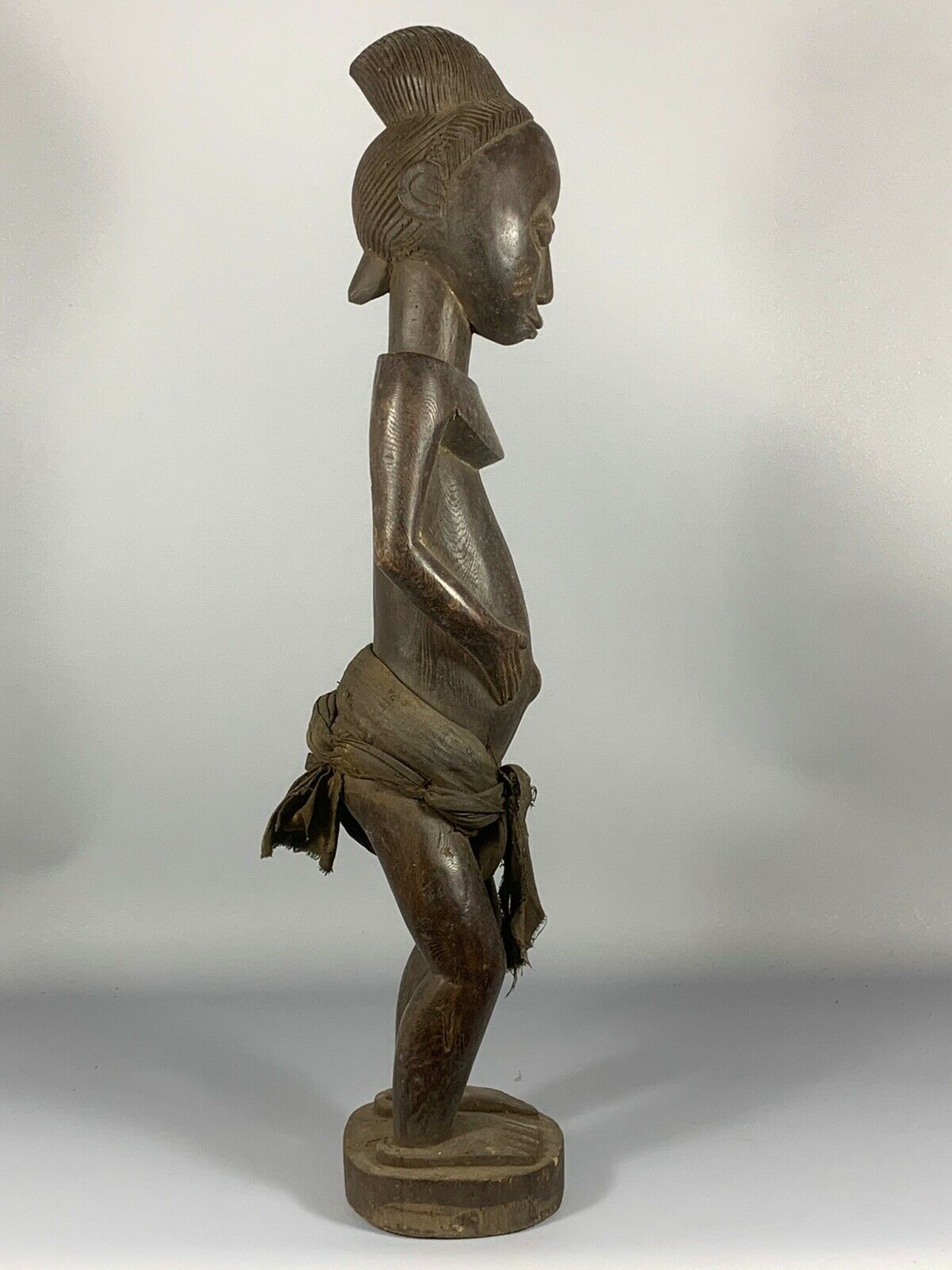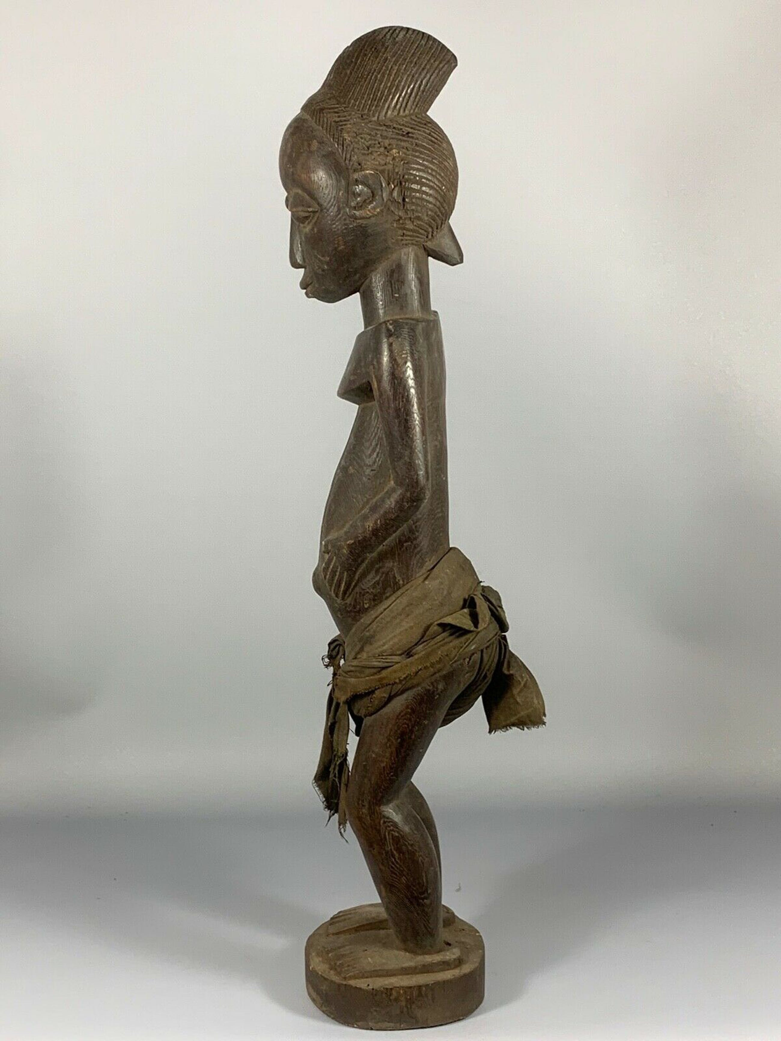 The lack of overall centralization among the Igbo-speaking peoples has been conducive to the development of a great variety of art styles and cultural practices. The earliest sculpture known from Igboland is from the village of Ibo Ukwu, where the grave of a man of distinction and a ritual store, dating from the 9th century AD, contained both chased copper objects and elaborate castings of leaded bronze. Ibo sculpture is subject to rather strict rules: the figures are generally frontal, symmetrical, and upright, with legs slightly spread, arms held away from the body, and hands stretched forward, palms open. Proportions are true to those of the human body, with the exception of the neck, which is more elongated. The whole gives the impression of balance and stability yet lacks the degree of refinement and precision.