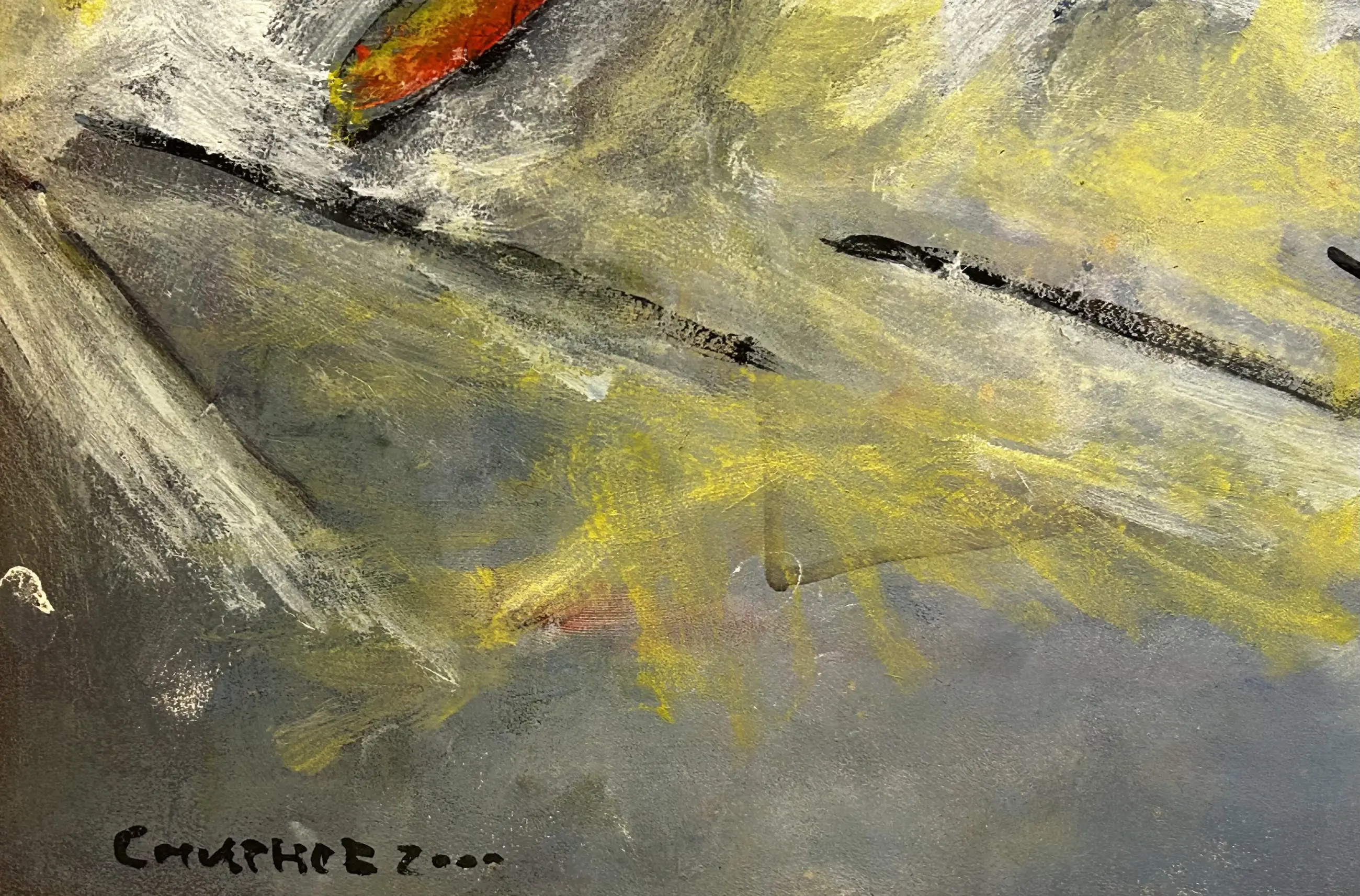 In 'jonge' kunstenaarsjaren is dit schilderij gekocht tijdens een expositie in Noord-Holland. Later werk ook nog aangekocht via galerie in Drenthe.