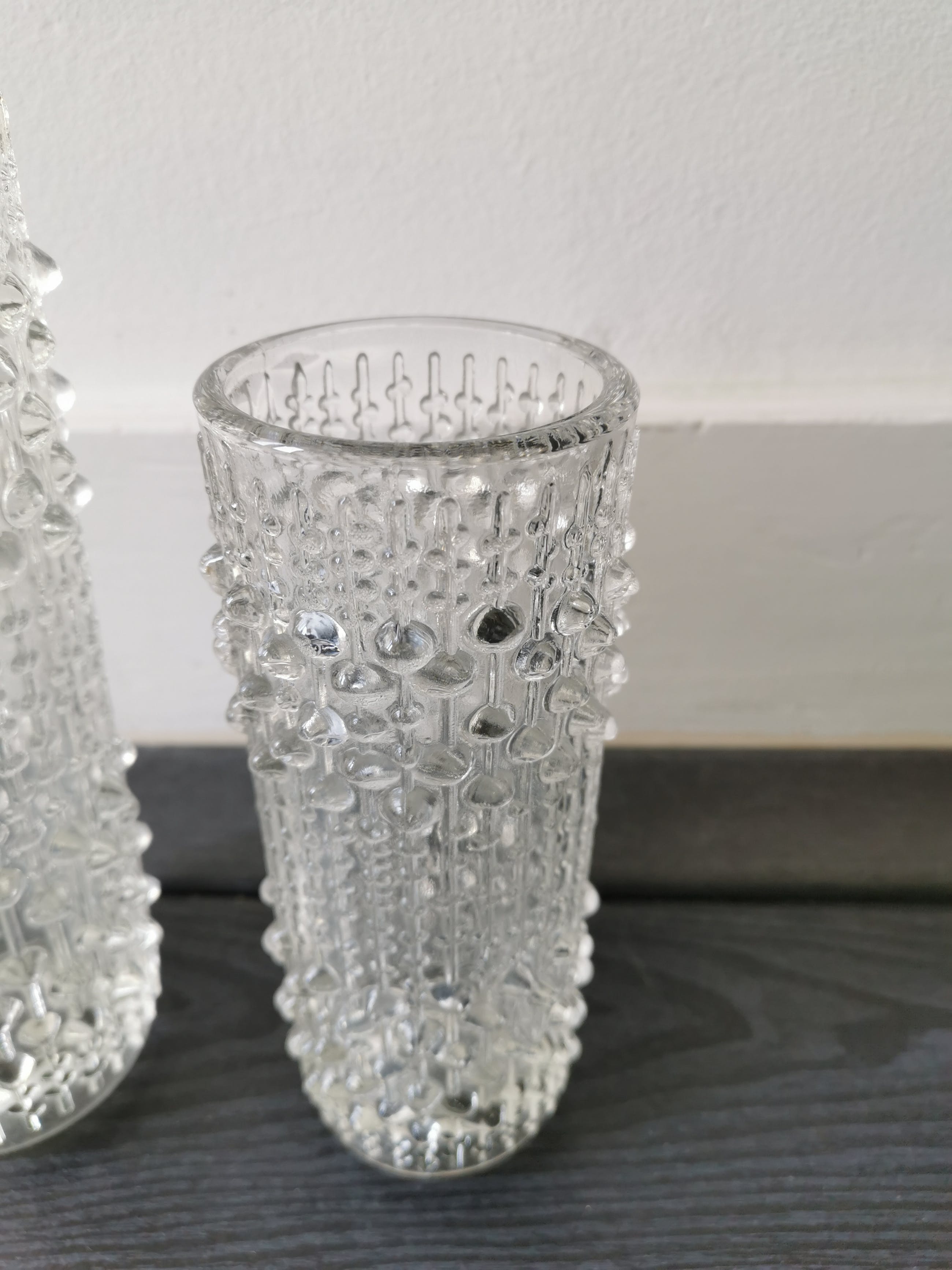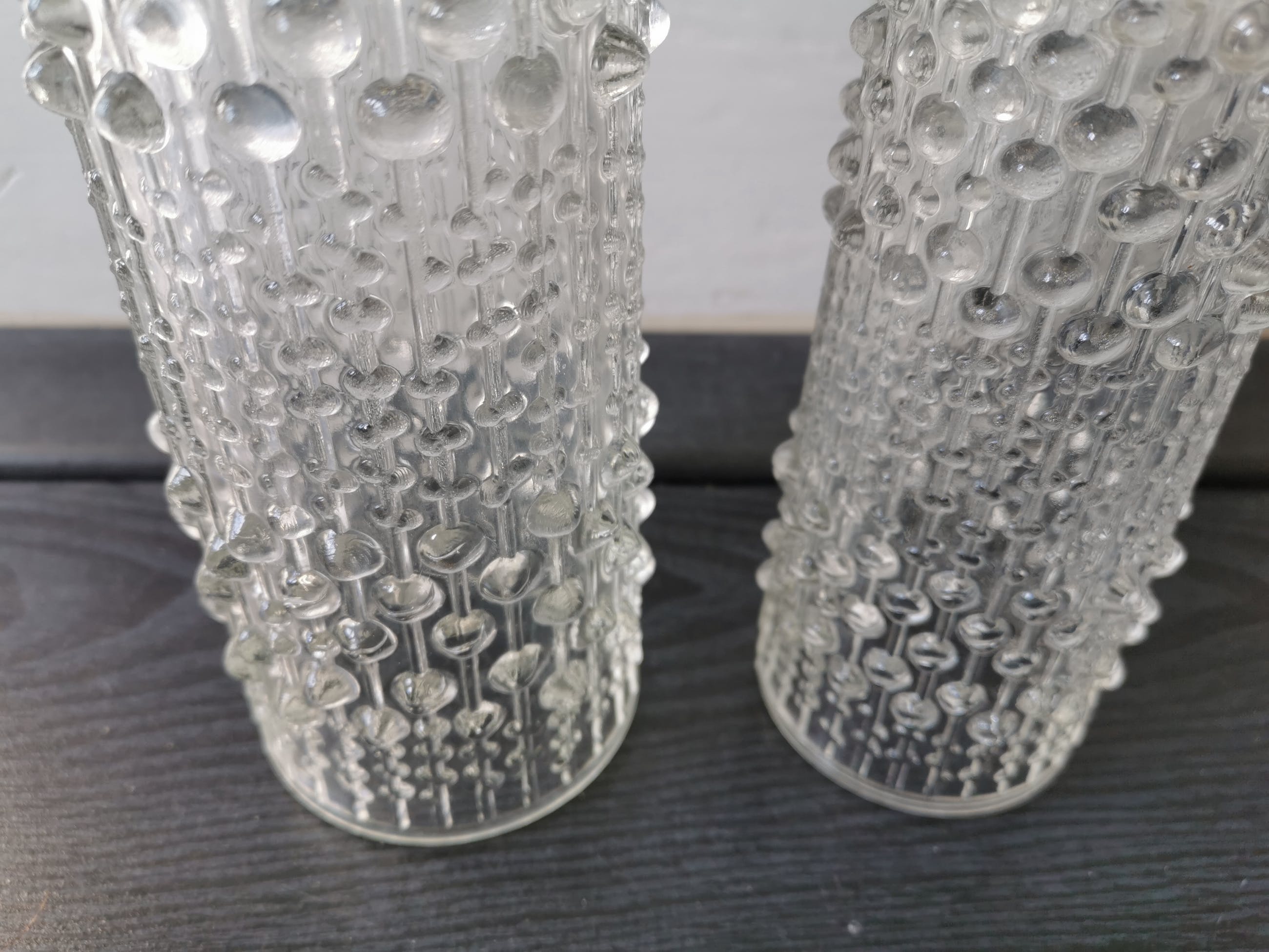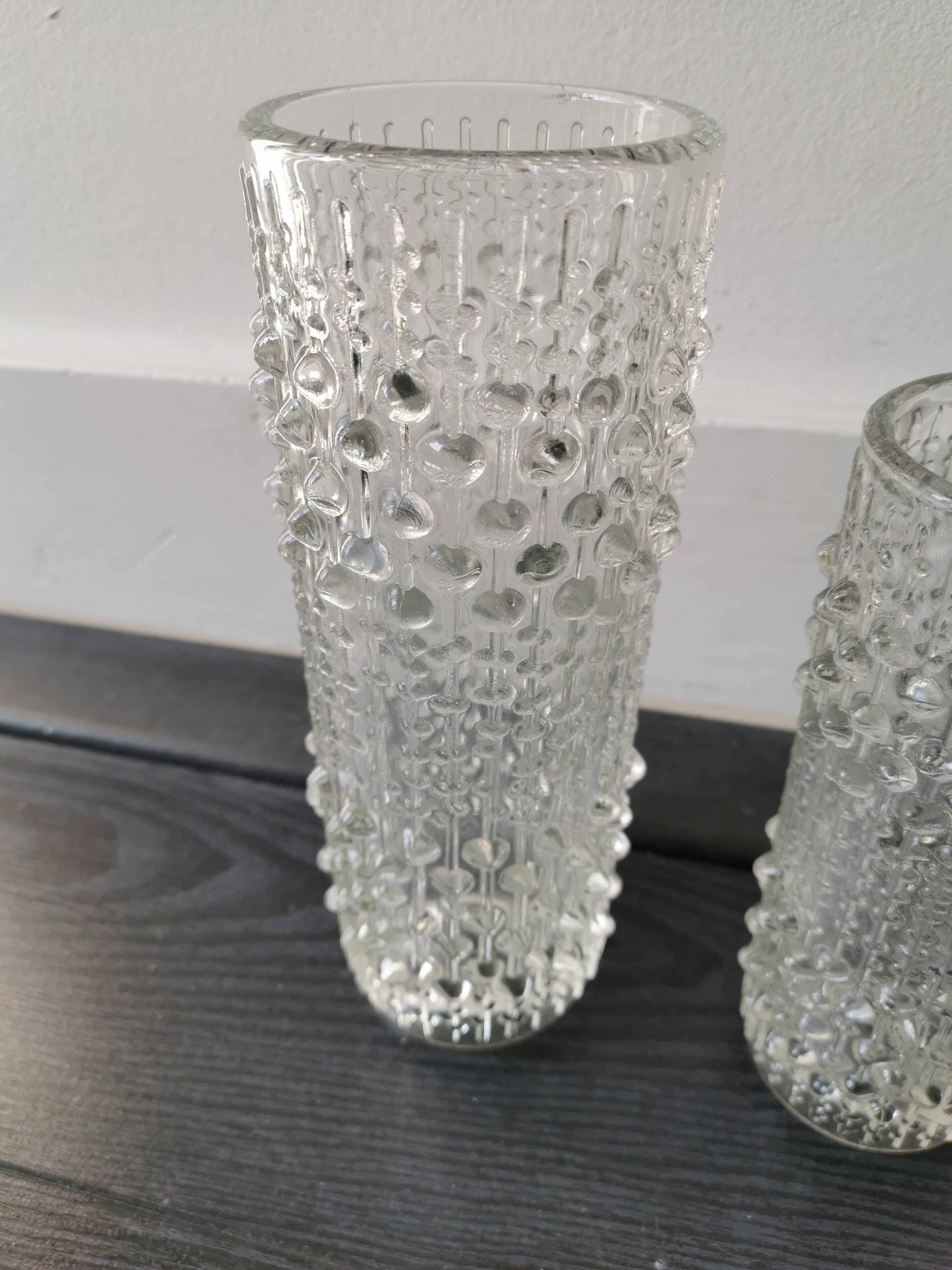 2 puntgave vazen van O. Toikka voor iittala uit Finland, dit zijn decdrupoelvazen van het model Kastehelmi uit de jaren 70.