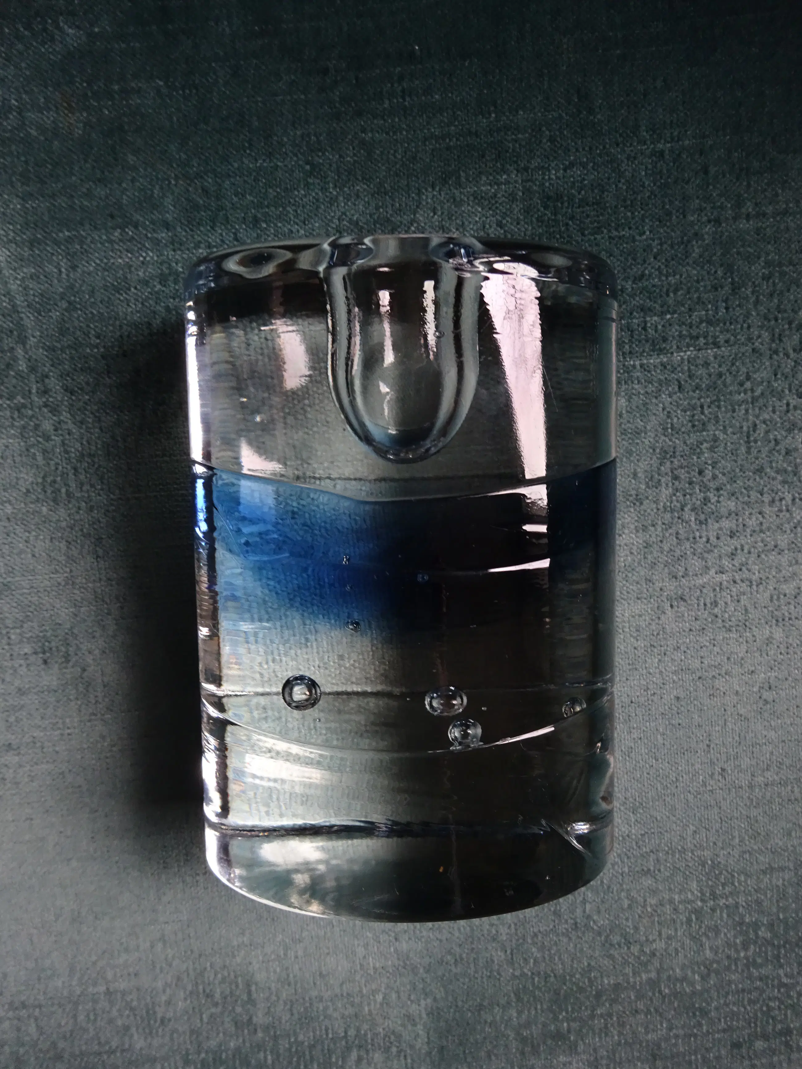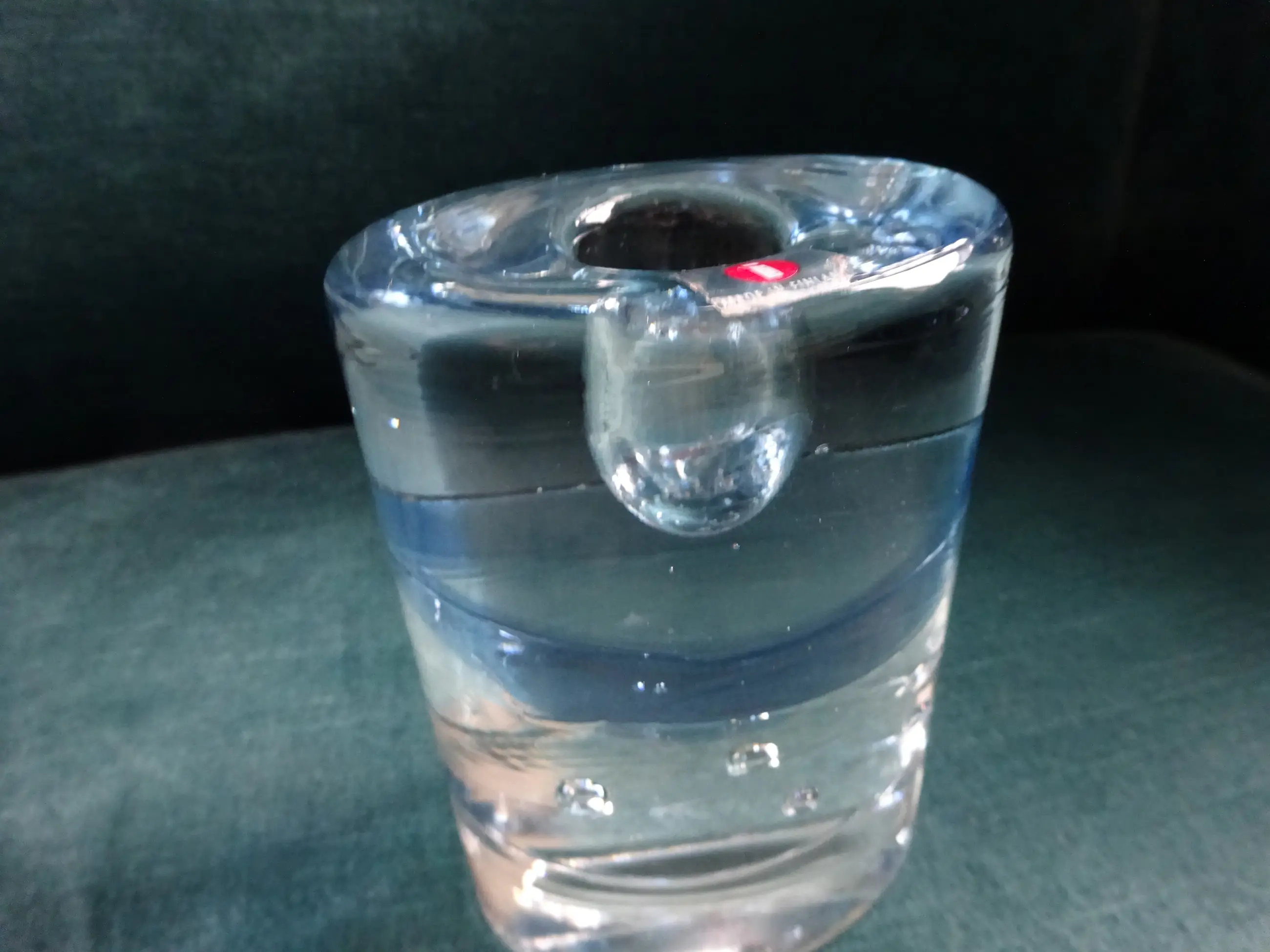 Kandelaar zwaar helder glas met blauwe zweem en luchtbellen Ontwerp: Timo Sarpaneva Uitvoering: Iittala Finland Jaar: 1978 Naam: Arkipelago (Arktia) Afmeting: ca hoog 10 cm, breed 7.5 cm Kleur: helder glas met blauwe zweem Conditie: nieuwstaat met sticker Iittala