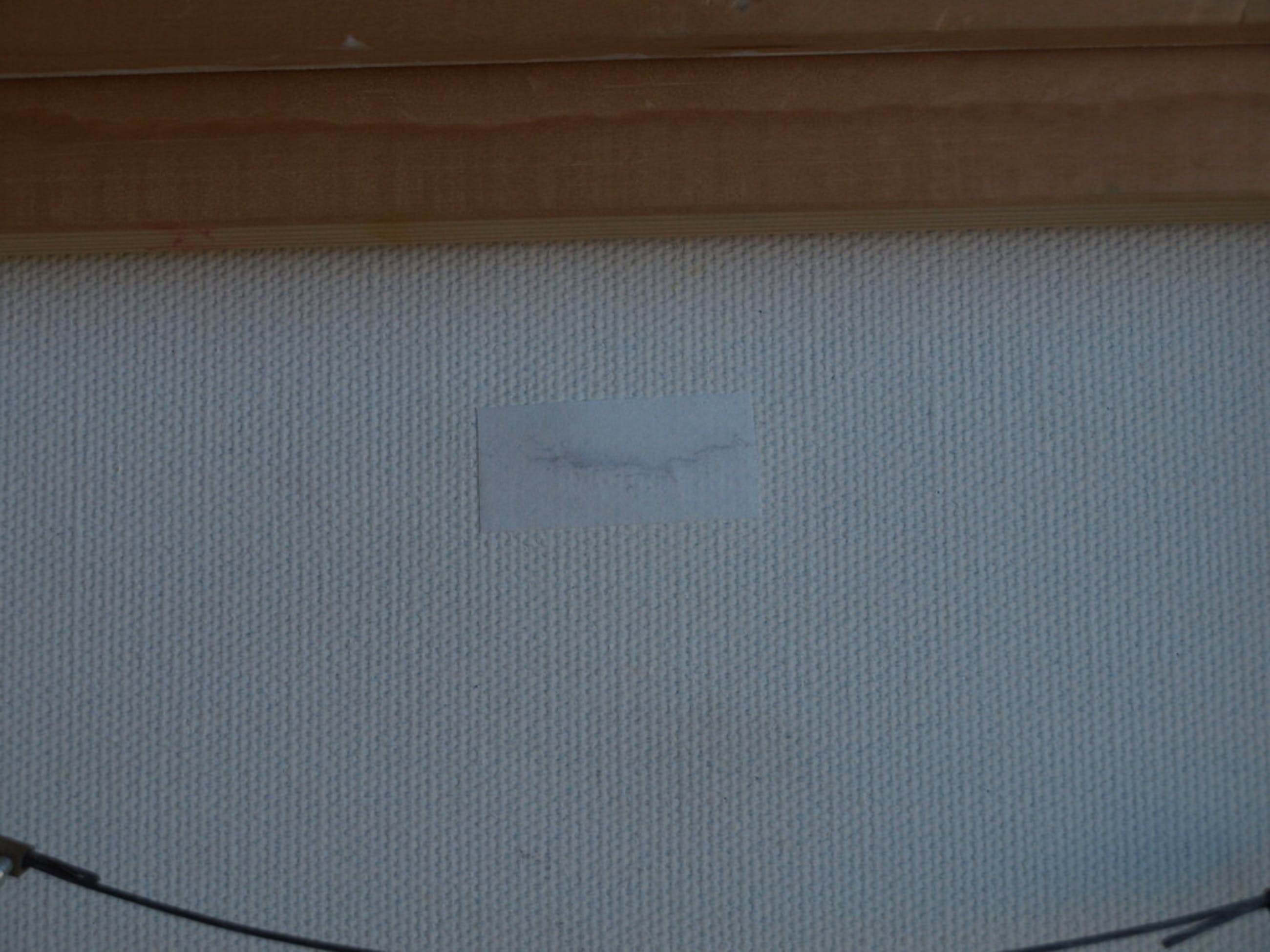 Conditie: Het werk is in goede staat, maar het doek heeft een klein scheurtje (boven de billen van het mannetje, 3 cm; op de achterkant is dit scheurtje afgeplakt met tape).