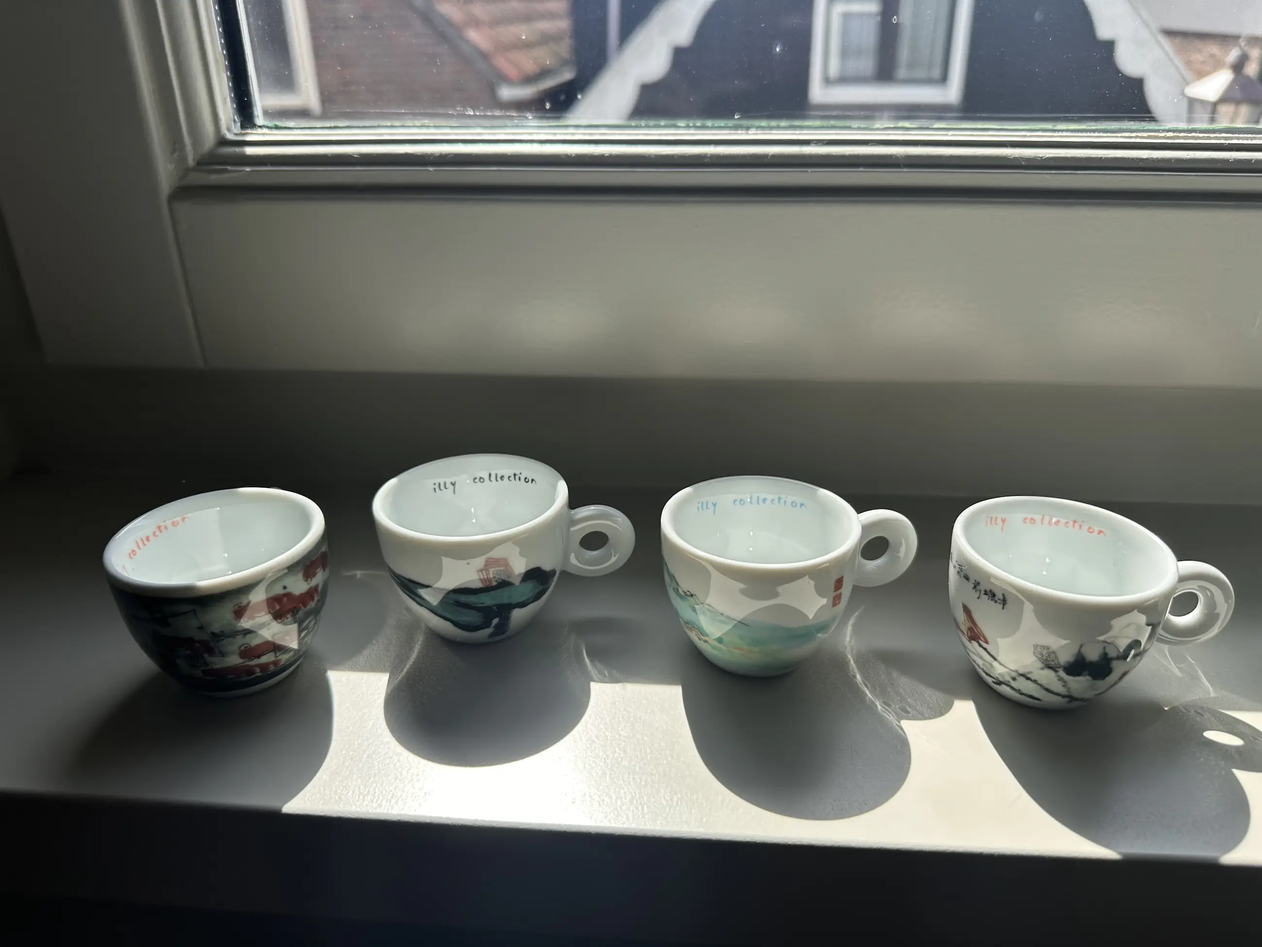 Espresso kopjes inclusief bakjes van de Illy Collections 1995 door An Du.