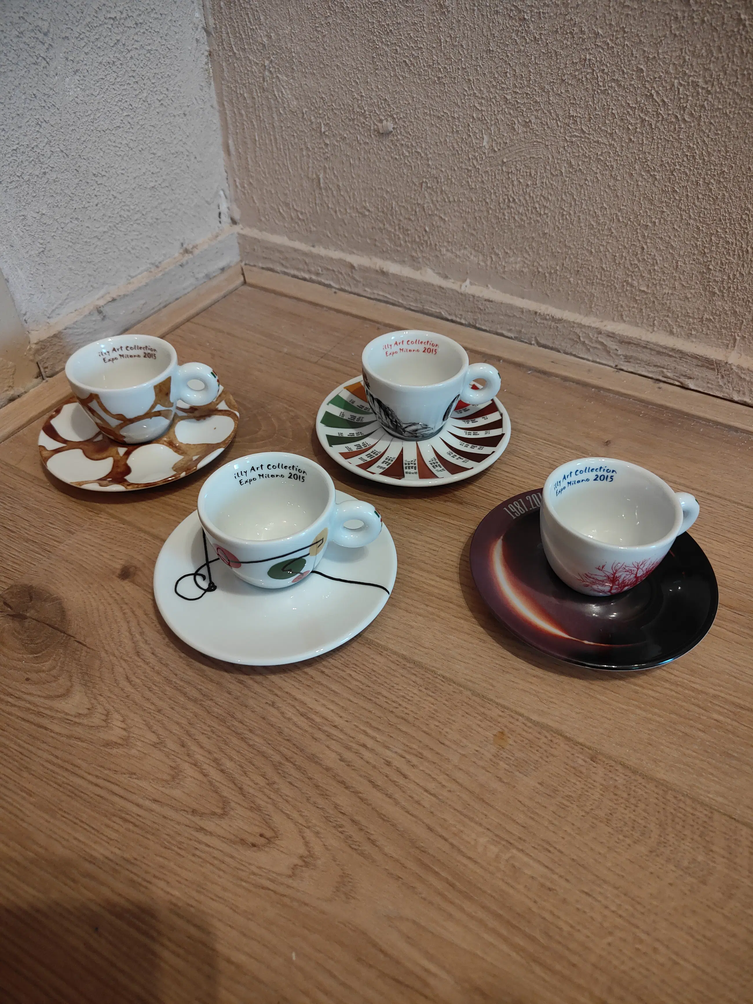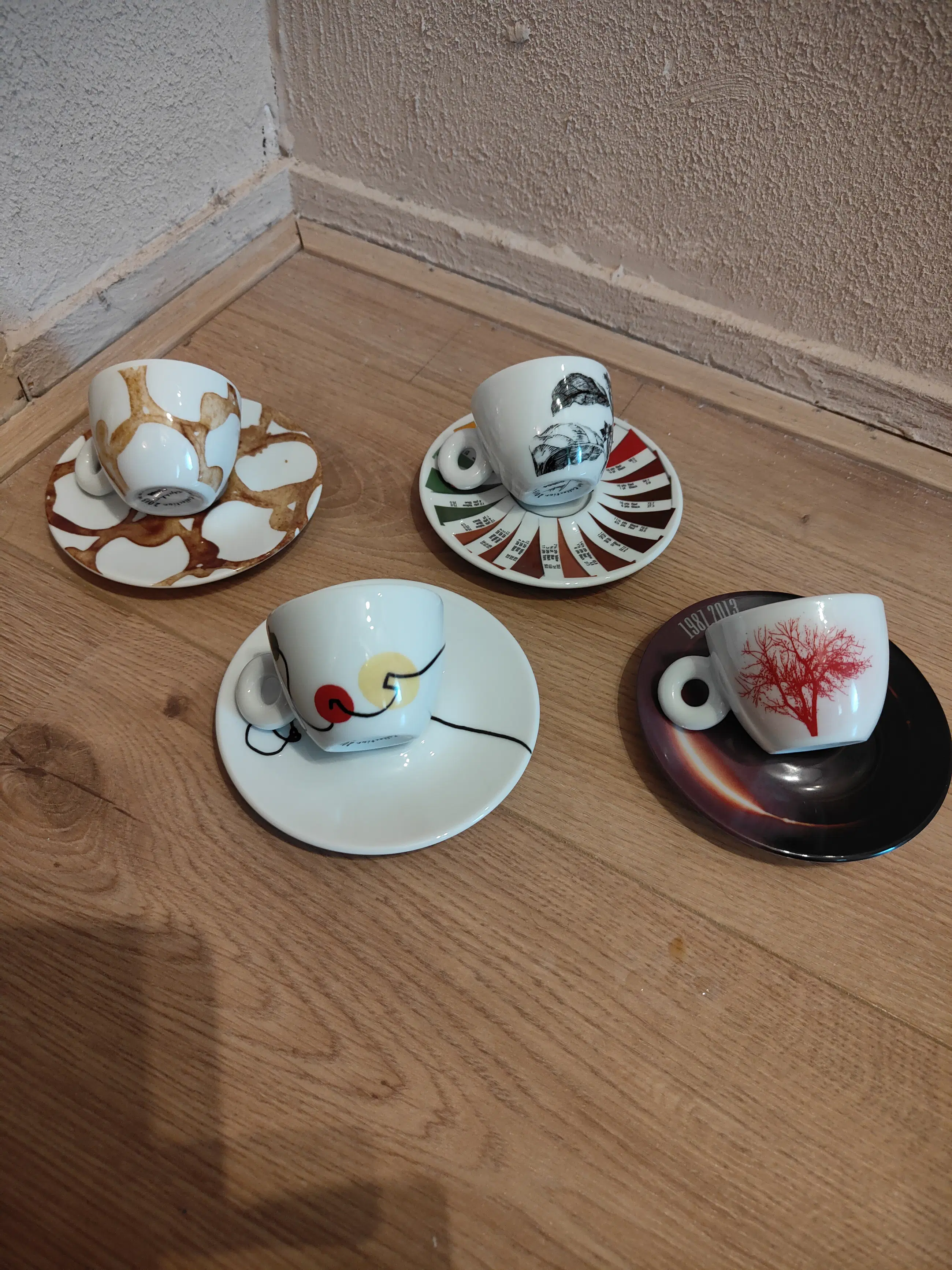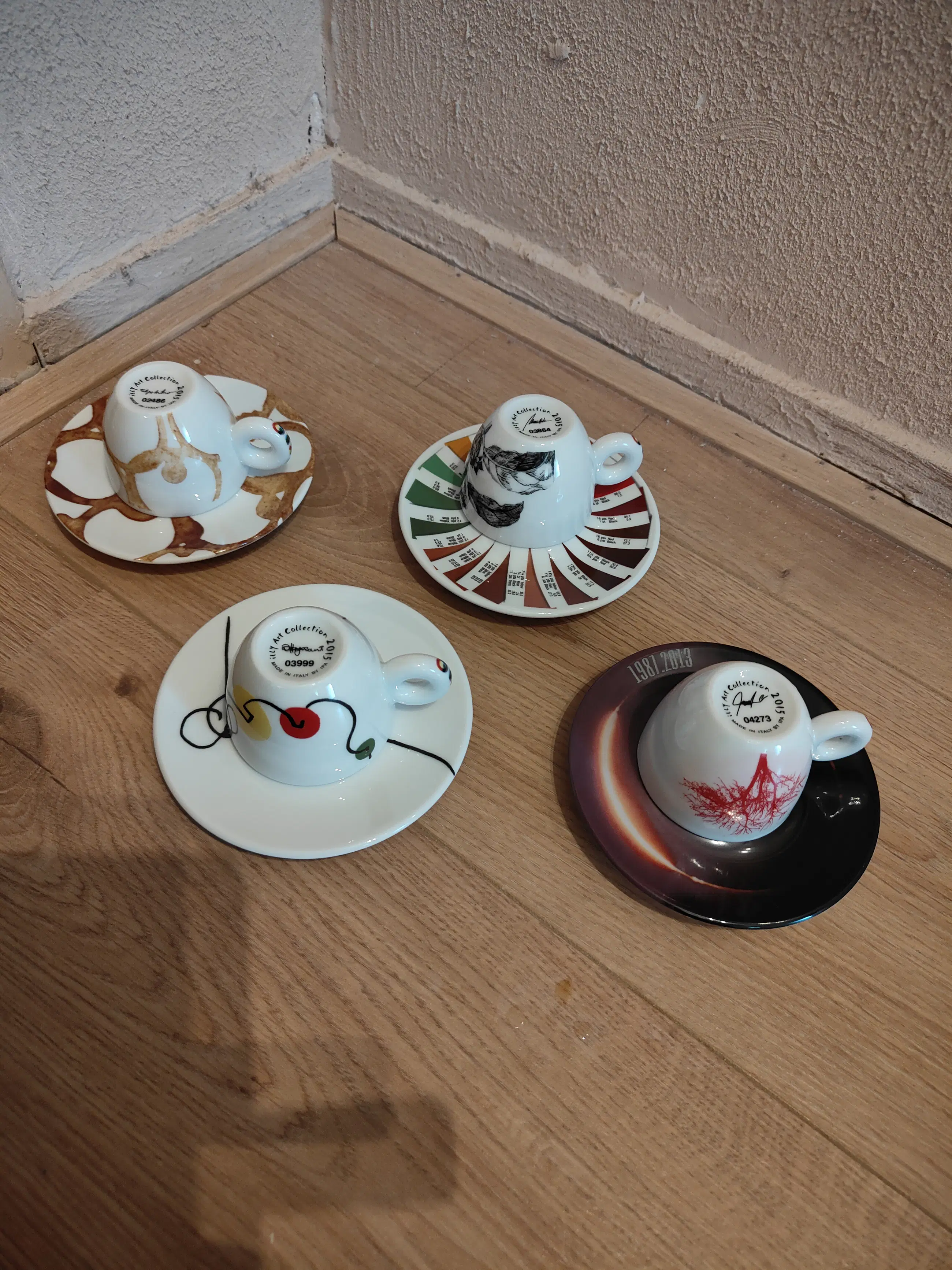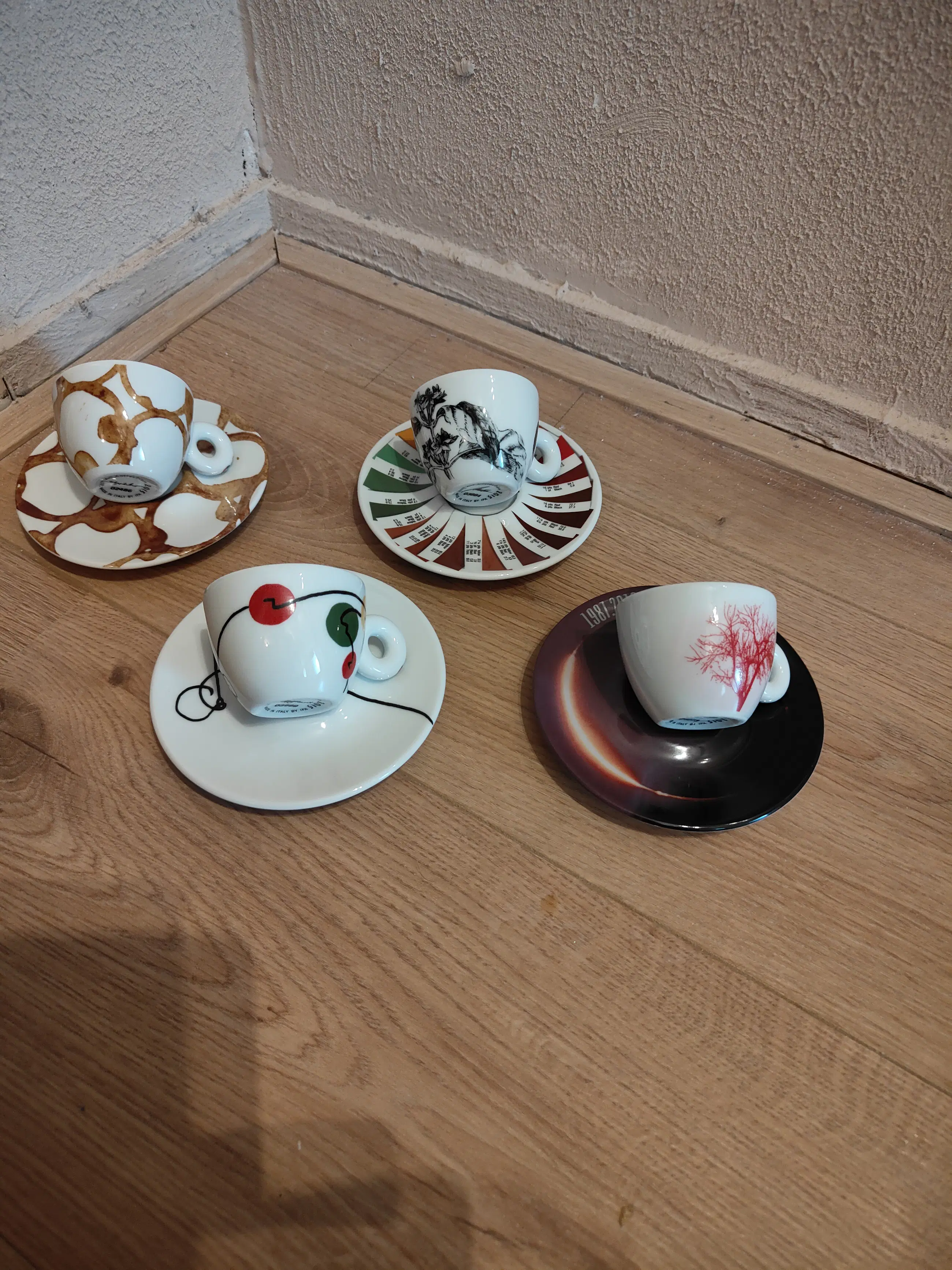 4 door LLY gesigneerde en genummerde espressokopjes en schoteltjes.