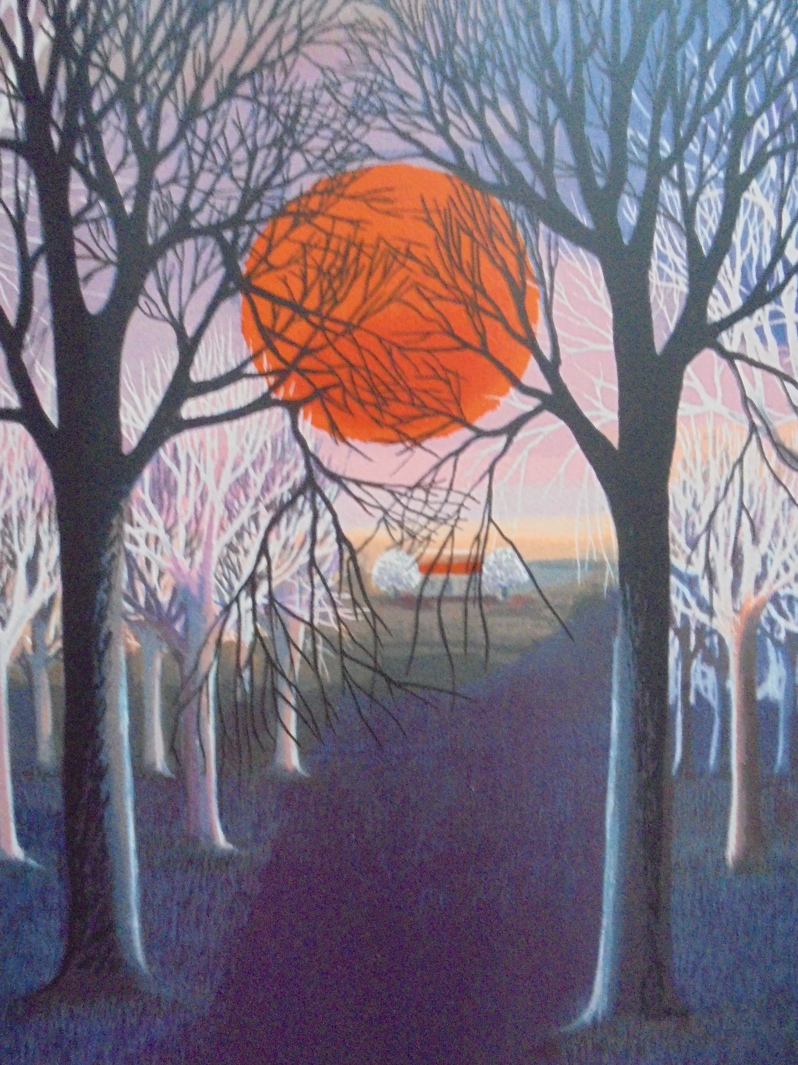 Prachtige zonsondergang van de kunstenaar Ilona Smit. De afbeelding is zeer gedetailleerd en daardoor veel te zien Zeefdruk is genummerd en gesigneerd en in goede staat.. Afmetingen beeld: 59 x 49 cm.