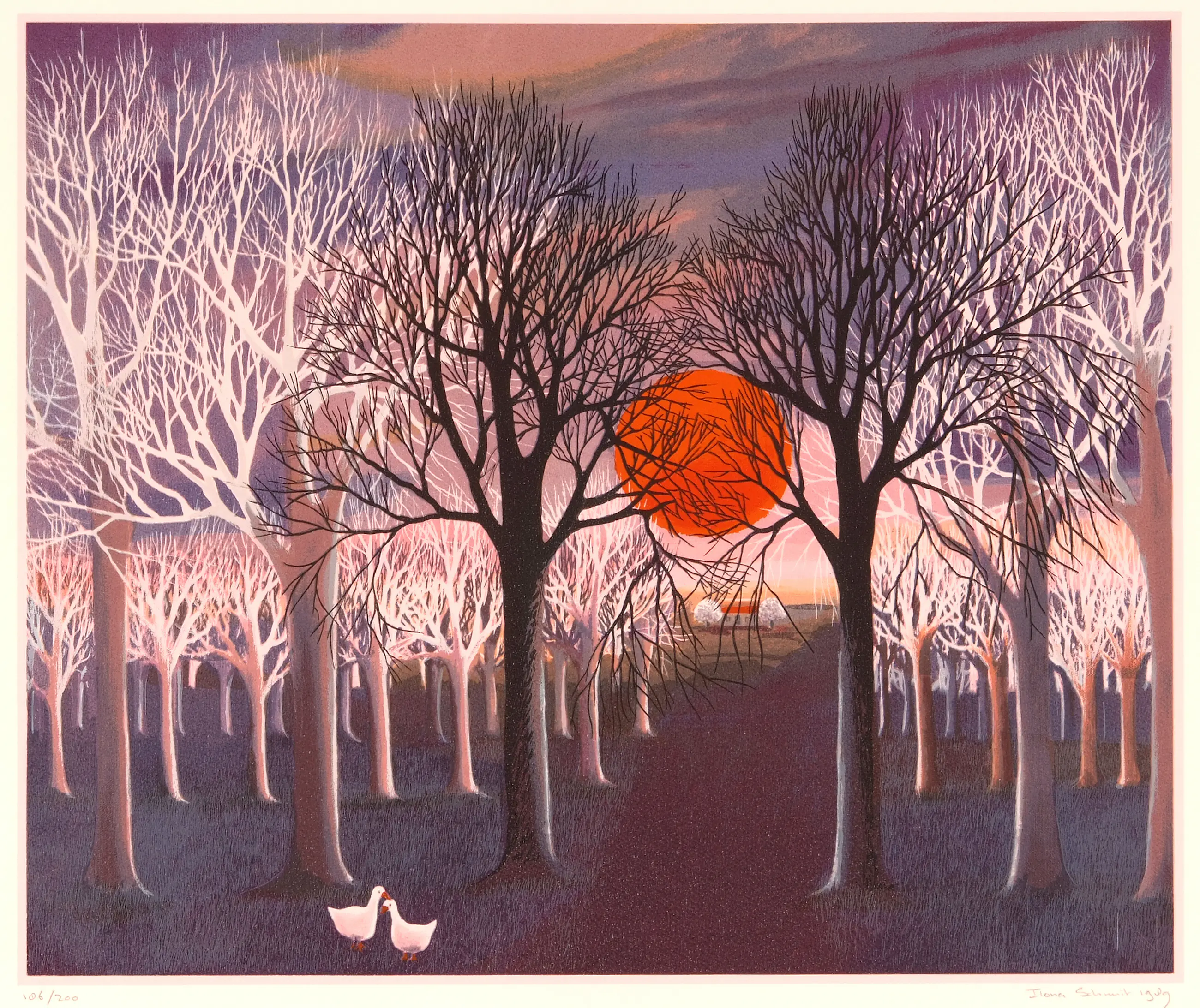 De zeefdruk is met de hand gedrukt op geschept papier