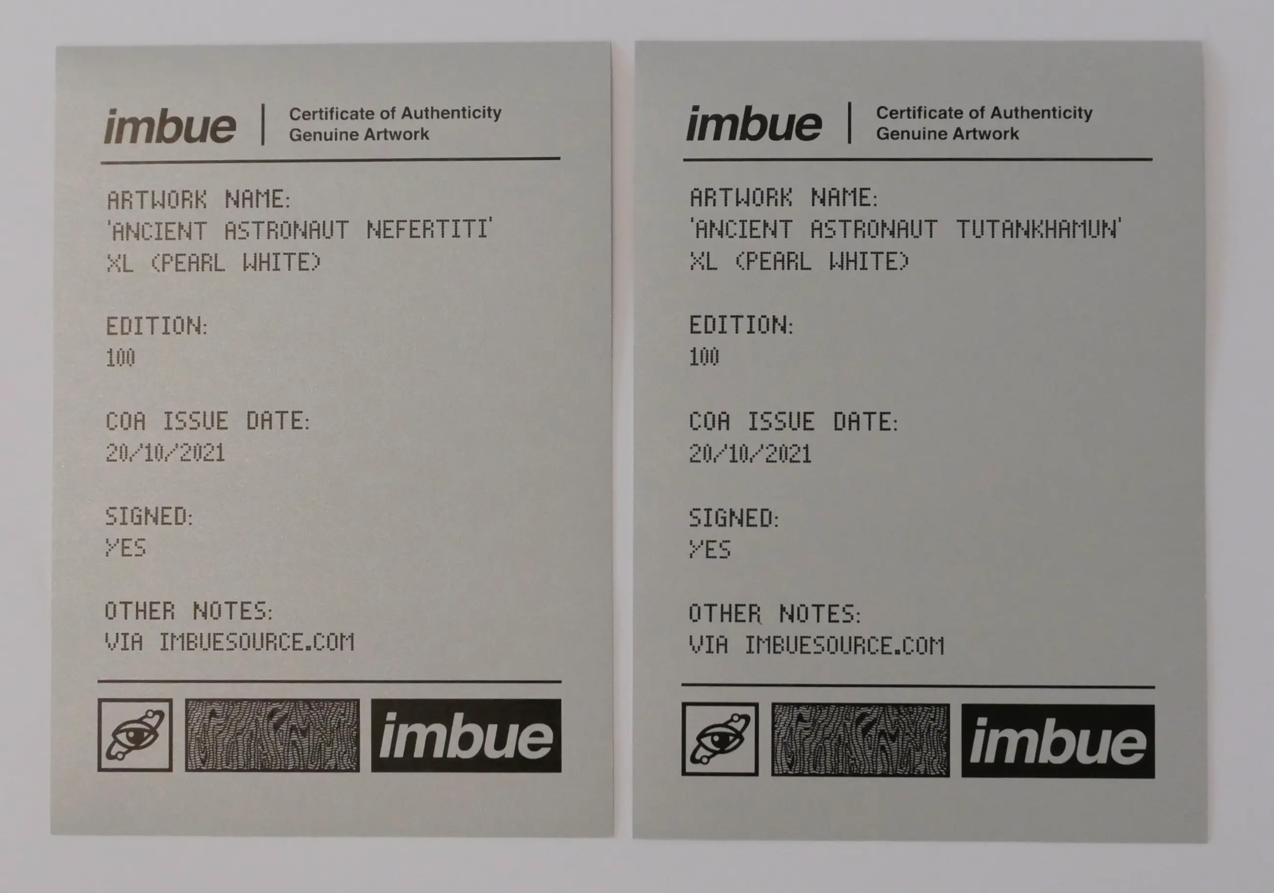 Nefertite XL Ancient Astronaut & Tutankhamum XL Ancient Astronaut , each in pearl white