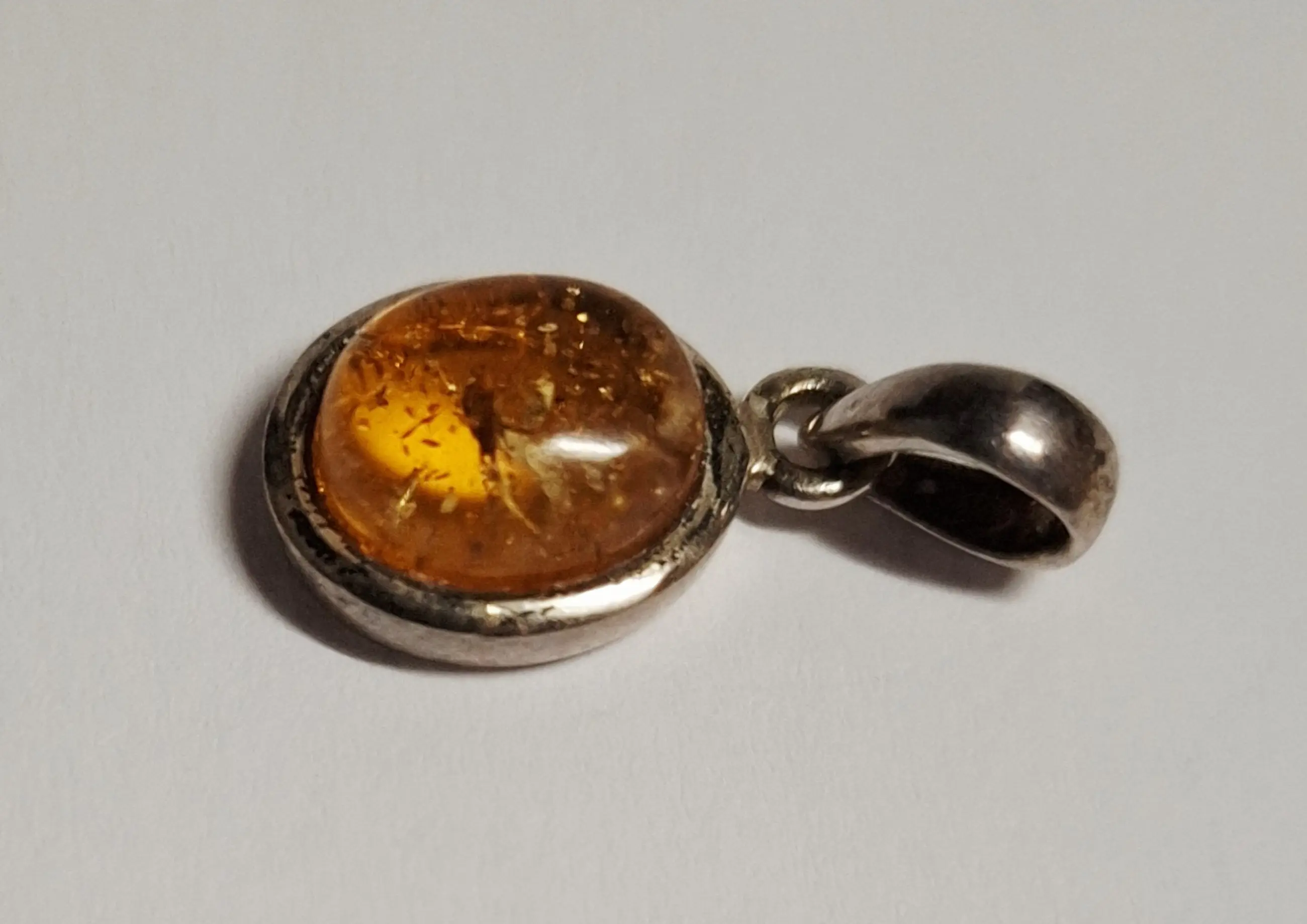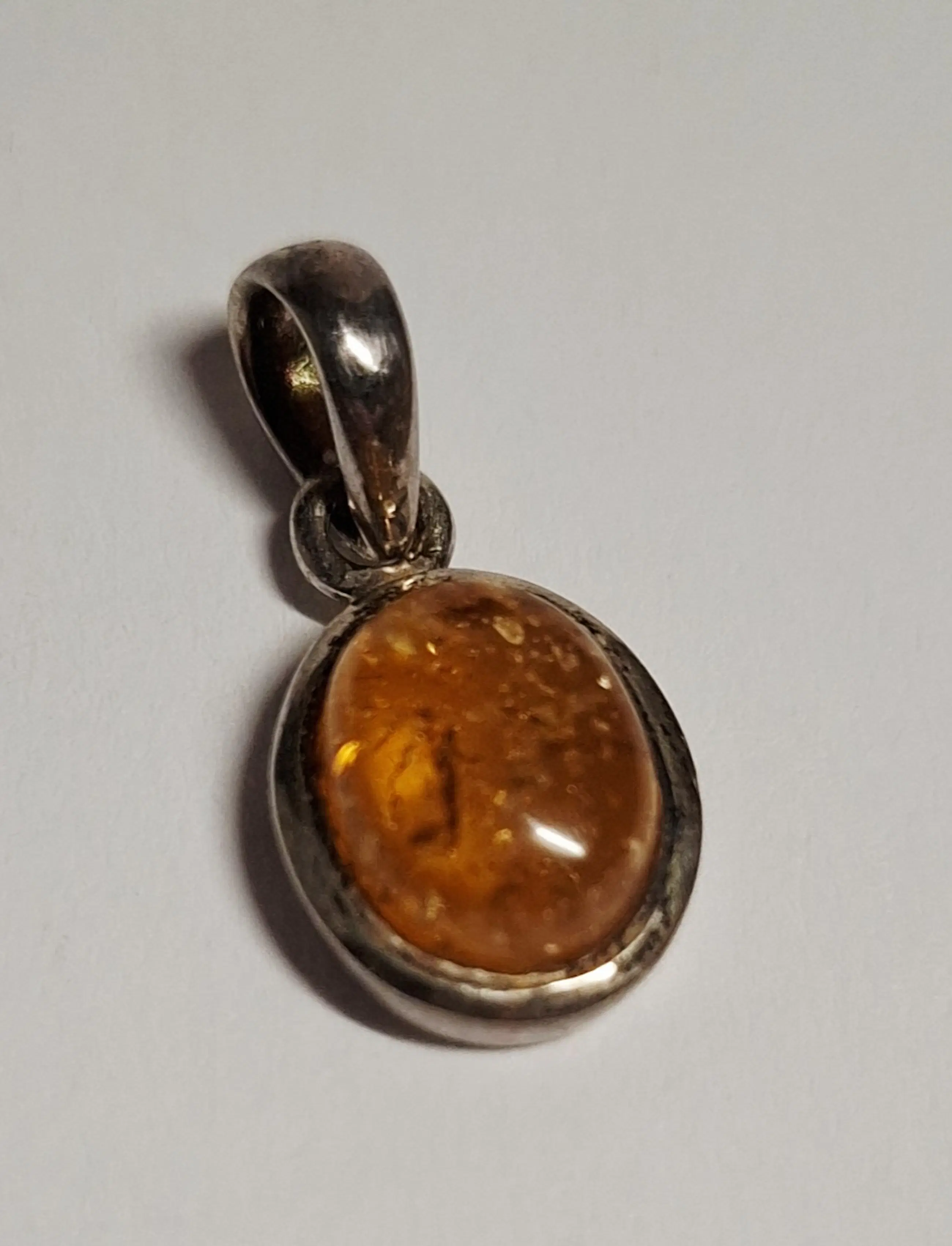 In nieuwstaat Een sierlijk bewerkte hanger met een Barnsteen vintage Zilveren hanger gezet met Barnsteen De hanger heeft een lengte van 2.4 cm.