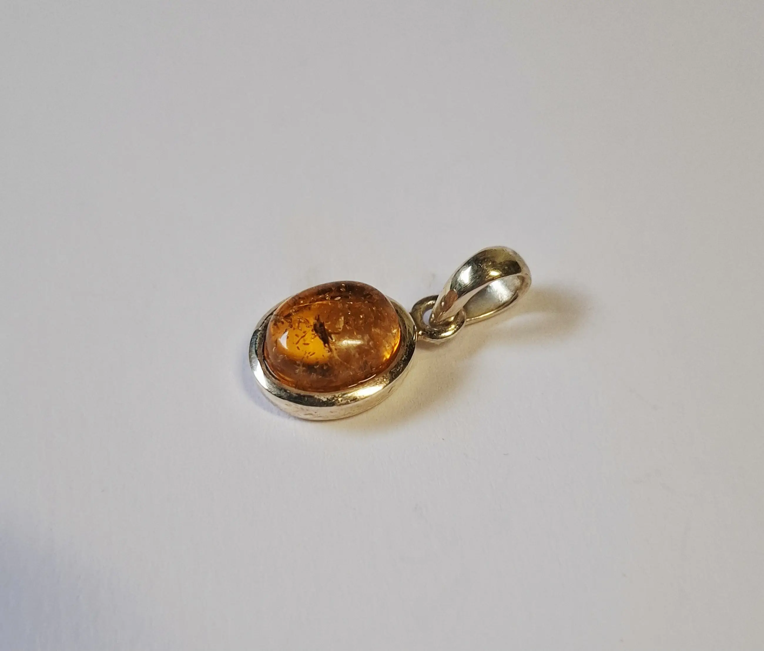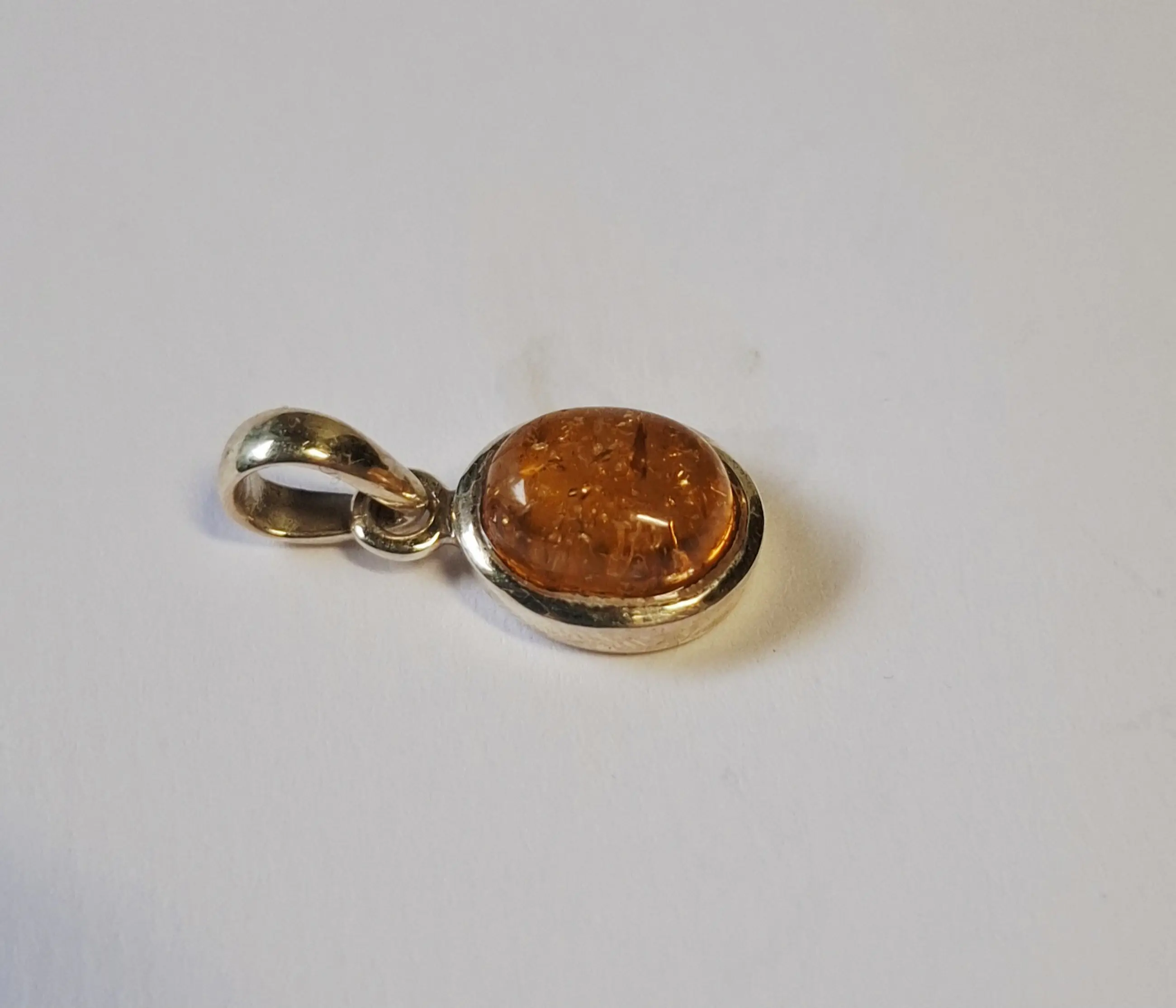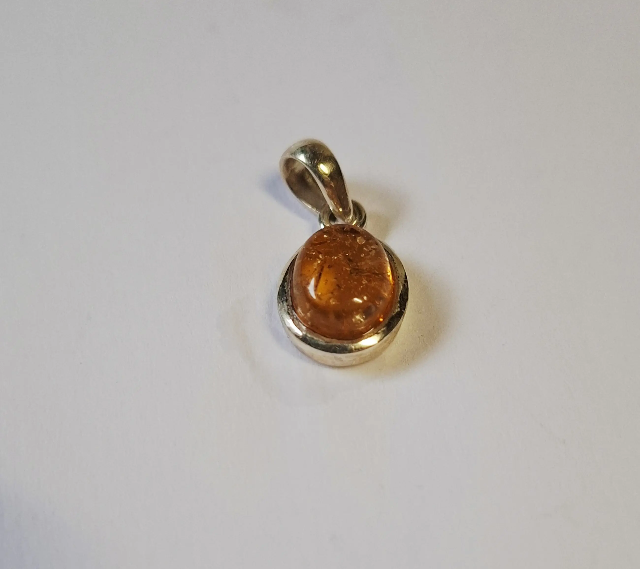 In nieuwstaat Een sierlijk bewerkte hanger met een Barnsteen vintage Zilveren hanger gezet met Barnsteen De hanger heeft een lengte van 2.4 cm.