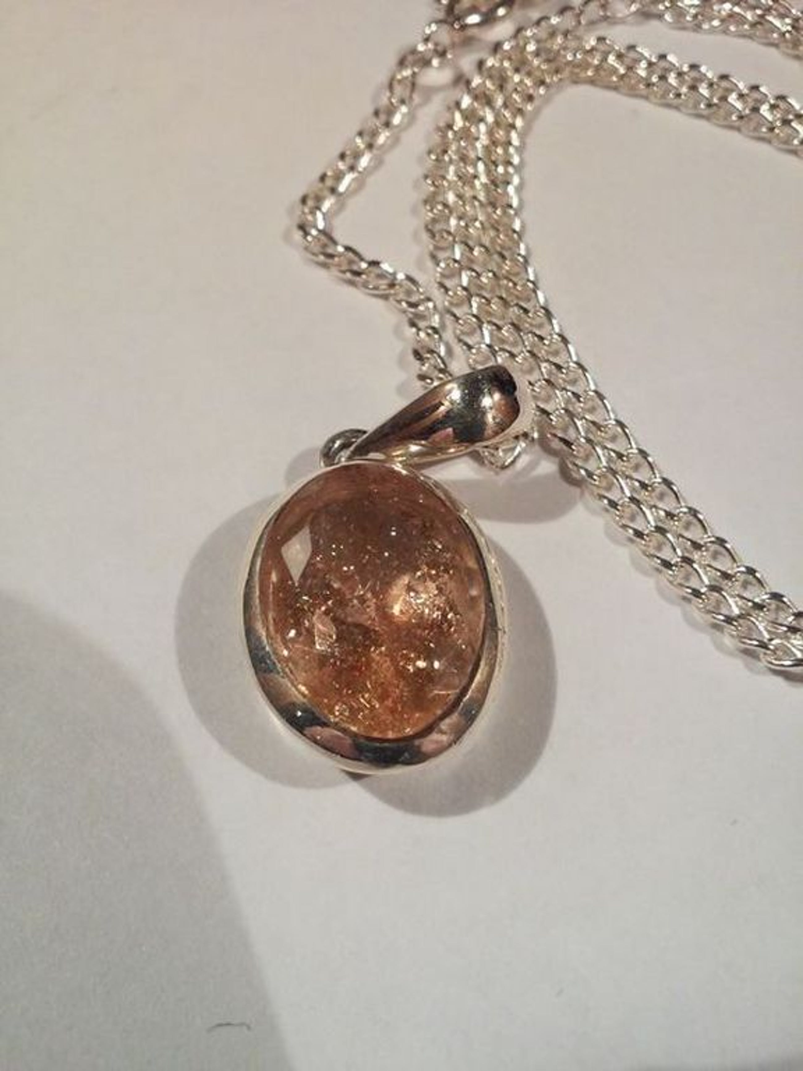 een sierlijke design Zilveren Ketting en Hanger met Facet geslepen Goudsteen hoogste zilvergehalte 925