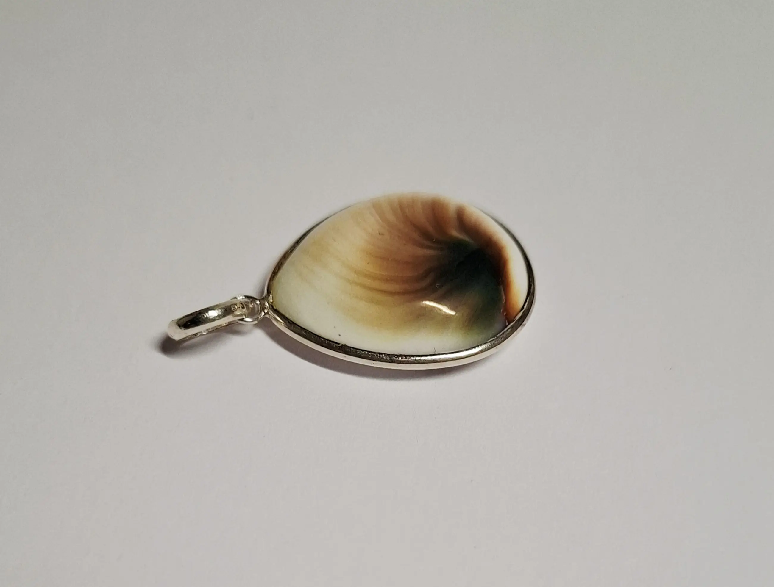 in nieuwstaat zilveren hanger met Shiva schelp hanger ook bekend als Shiva’s oog
