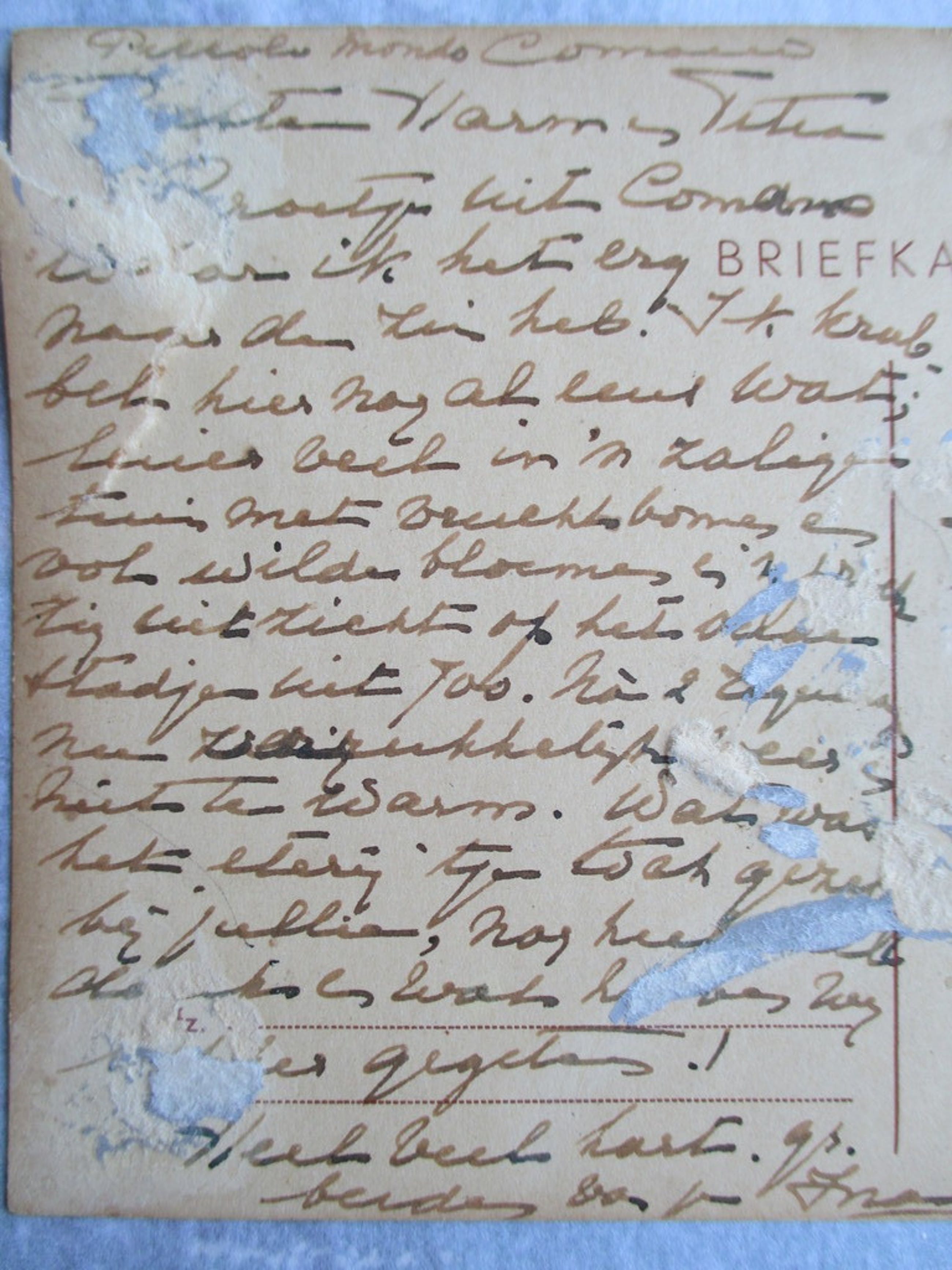 De kaart heeft vastgeplakt gezeten, hiervan zijn resten achterop achtergebleven, zie foto's