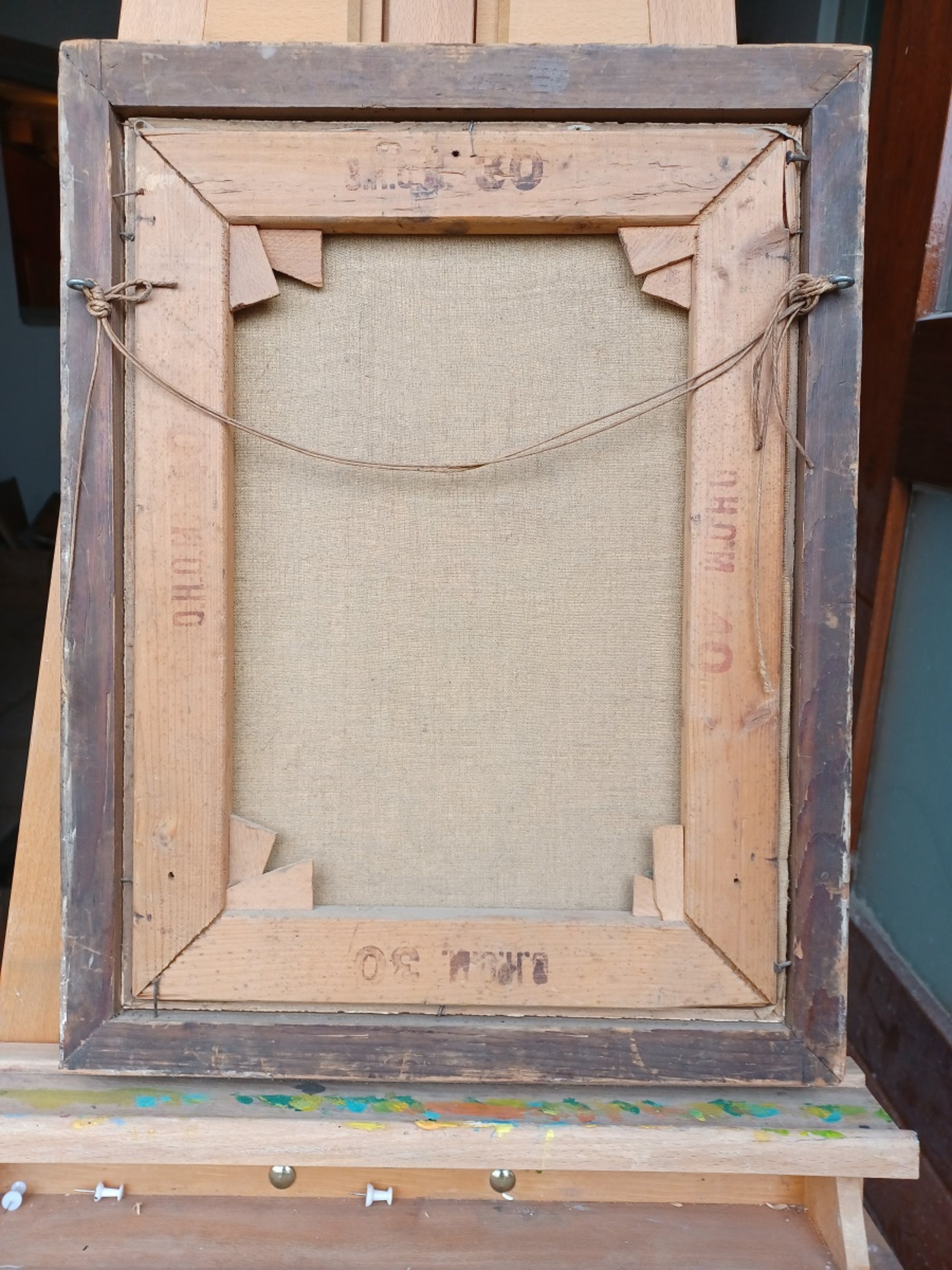 Het schilderij met alleen de handtekening 'Ina Hooft' heeft geen craquelé. De lijst is deels verguld.