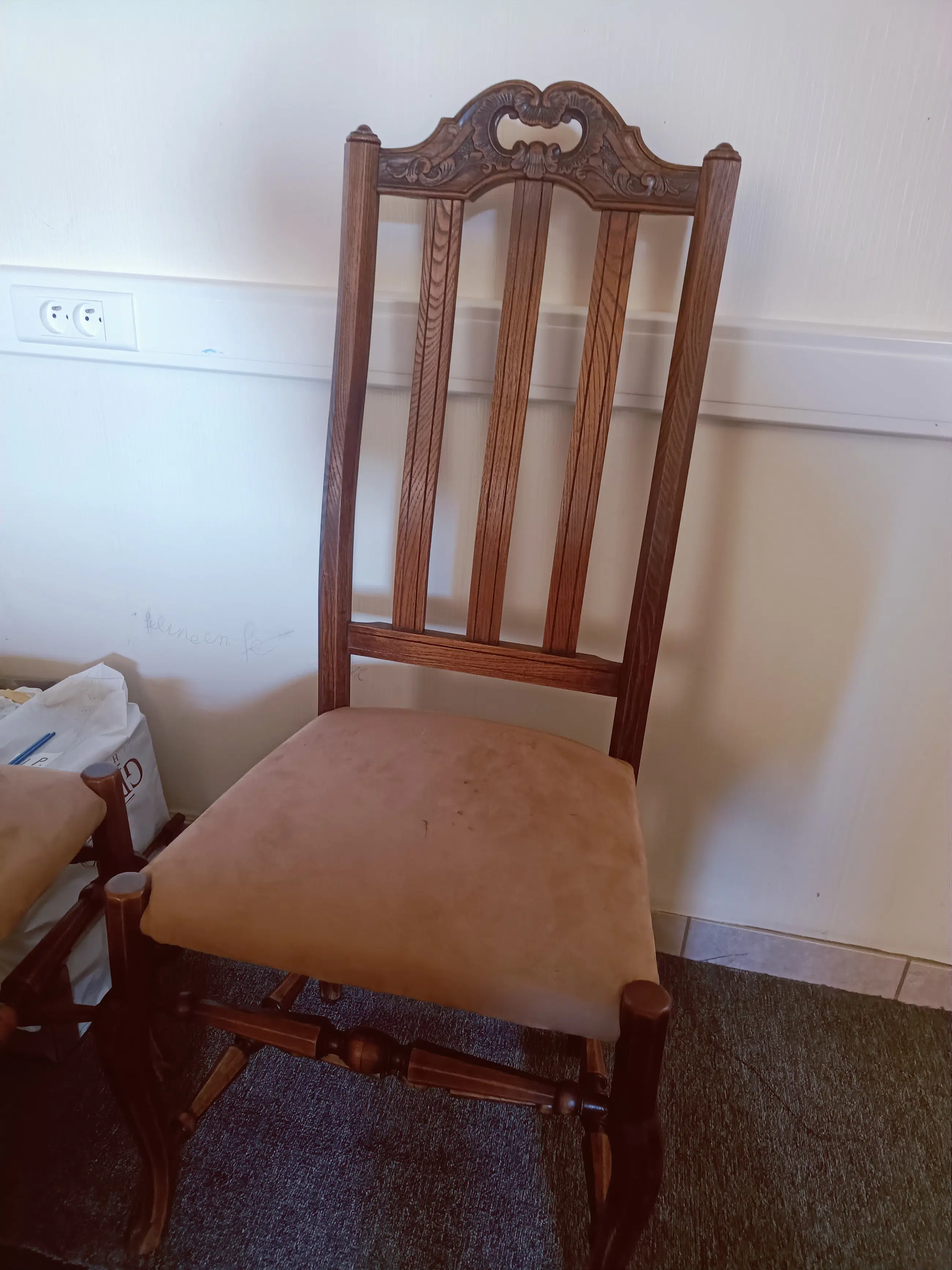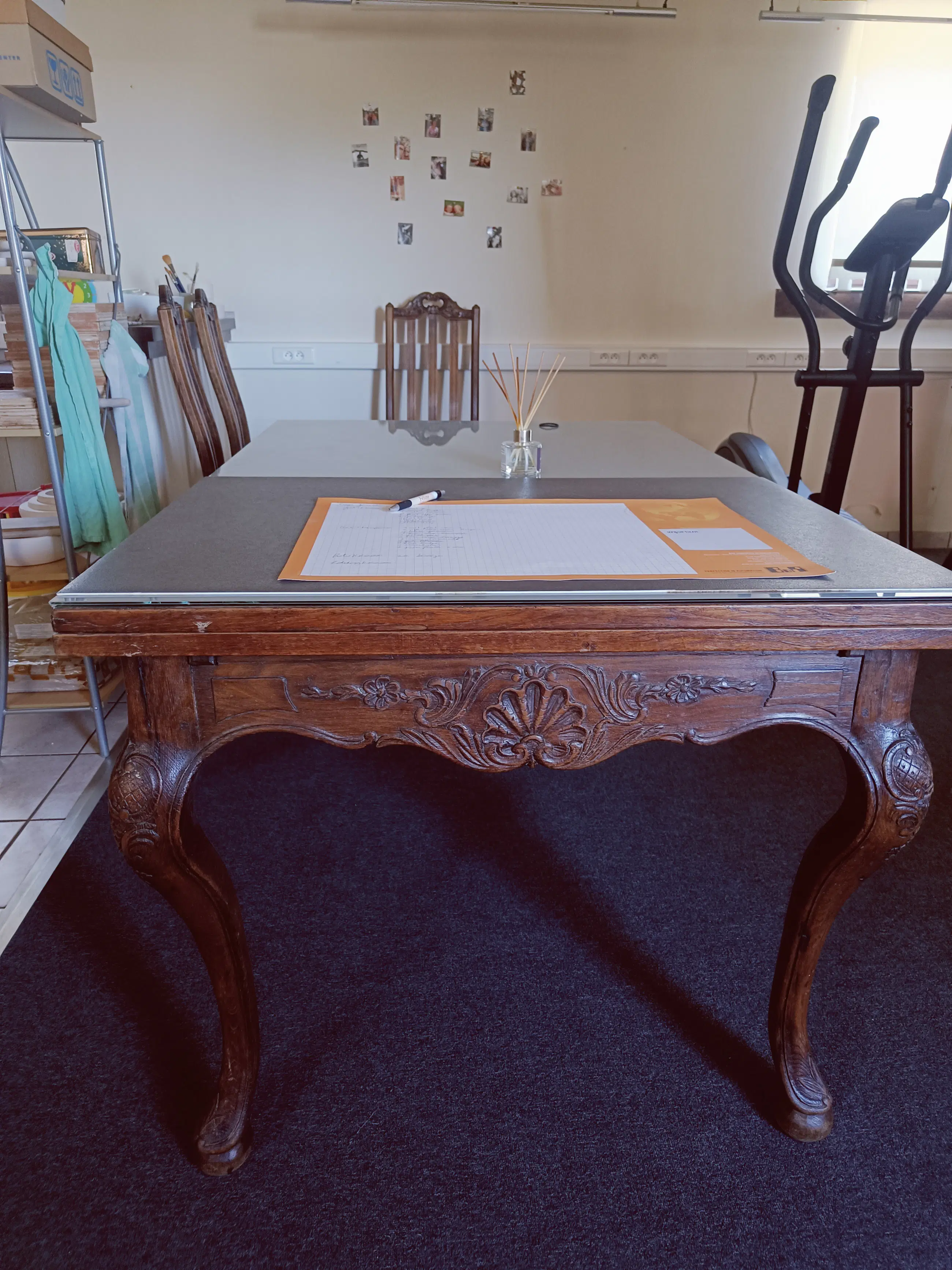 Onbekend - Antieke tafel met stoelen, nieuwe bekleding