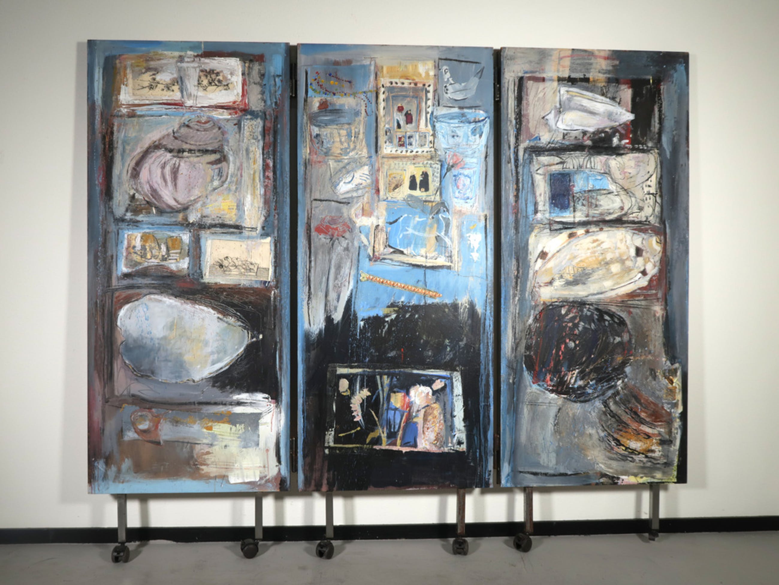 Titel: Drieluik kamerscherm 'Hemel en aarde' (Herinnering) met oevre boek