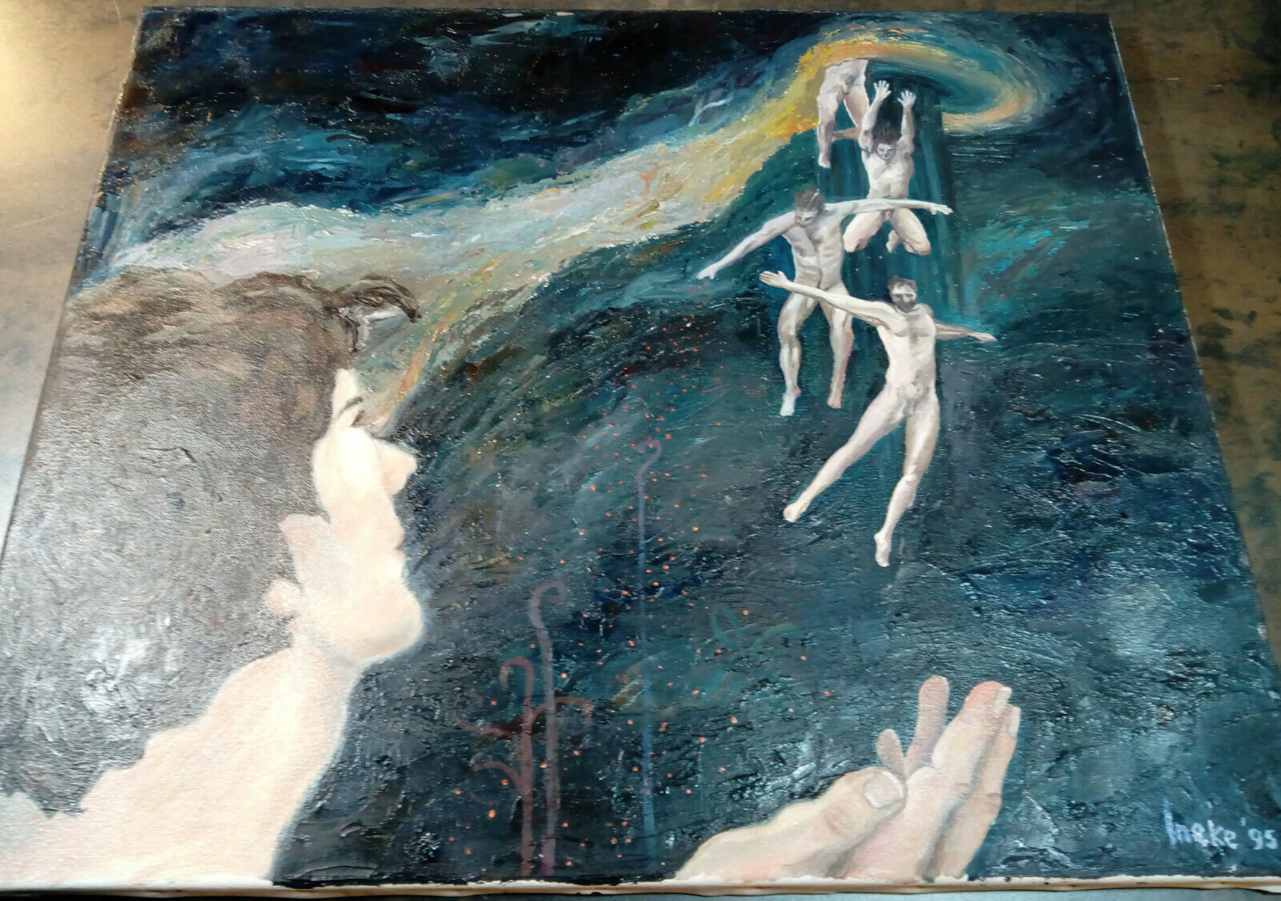 Ineke Kamps - Vrouw met mannen die in haar hand springen. (LAATSTE KANS!)
