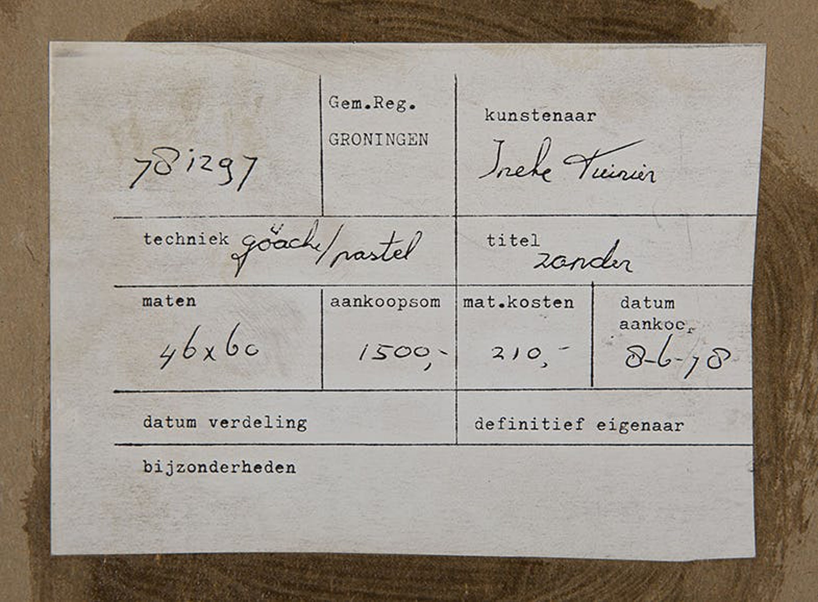 Herkomst: BKR Groningen (Het kunstwerk is afgevoerd uit de