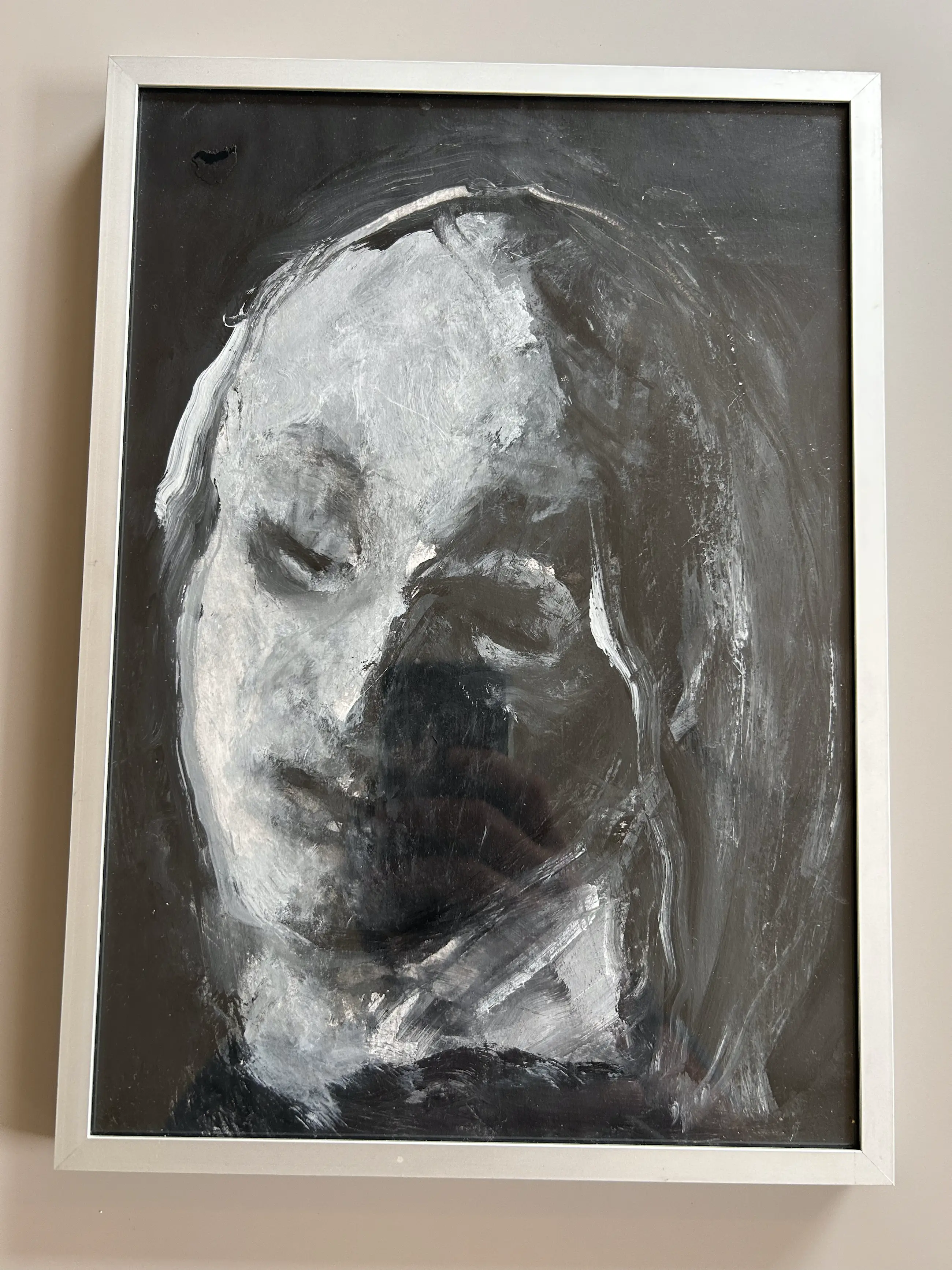Werk van Inez Bulthuis. Hoofd vervaardigd middels acryl & houtskool op papier.
