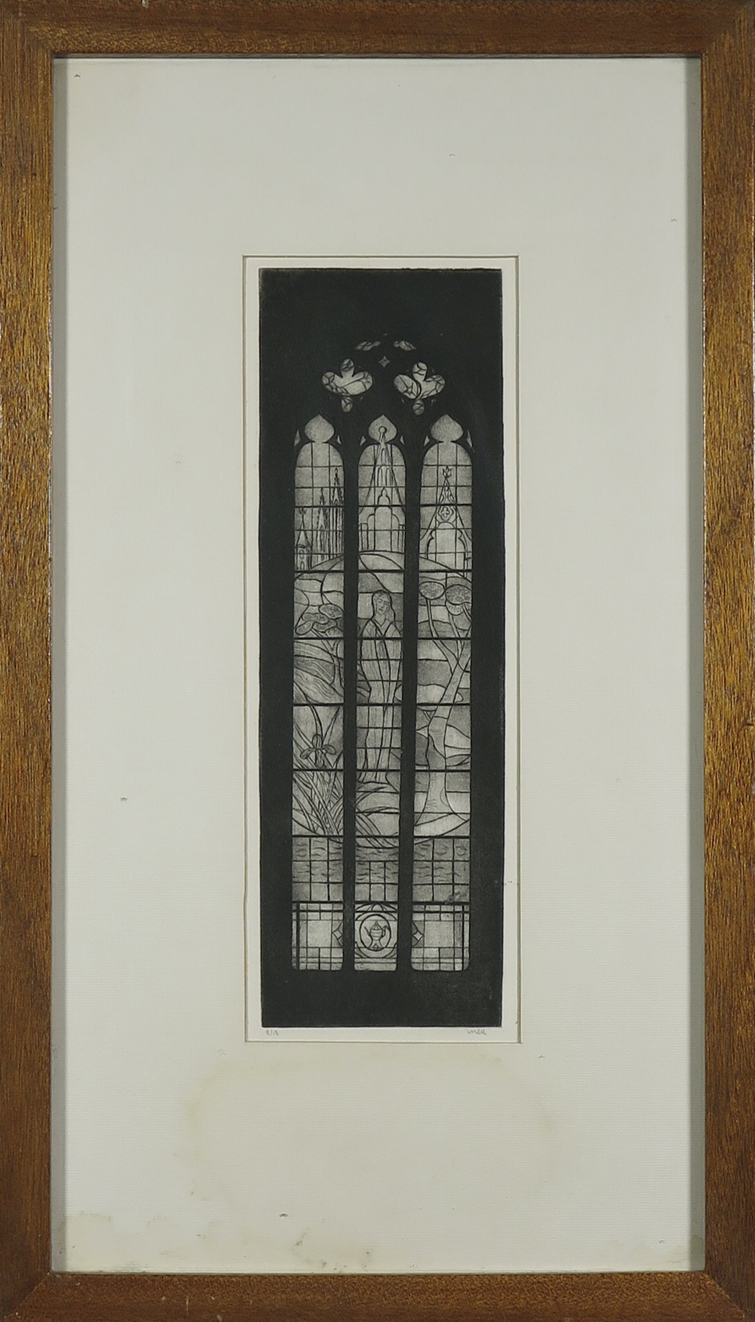 | De ets is in goede staat. In de witranden zijn enkele zeer lichte vlekjes zichtbaar. Passe-partout heeft wat vochtschade aan onderzijde. | |||