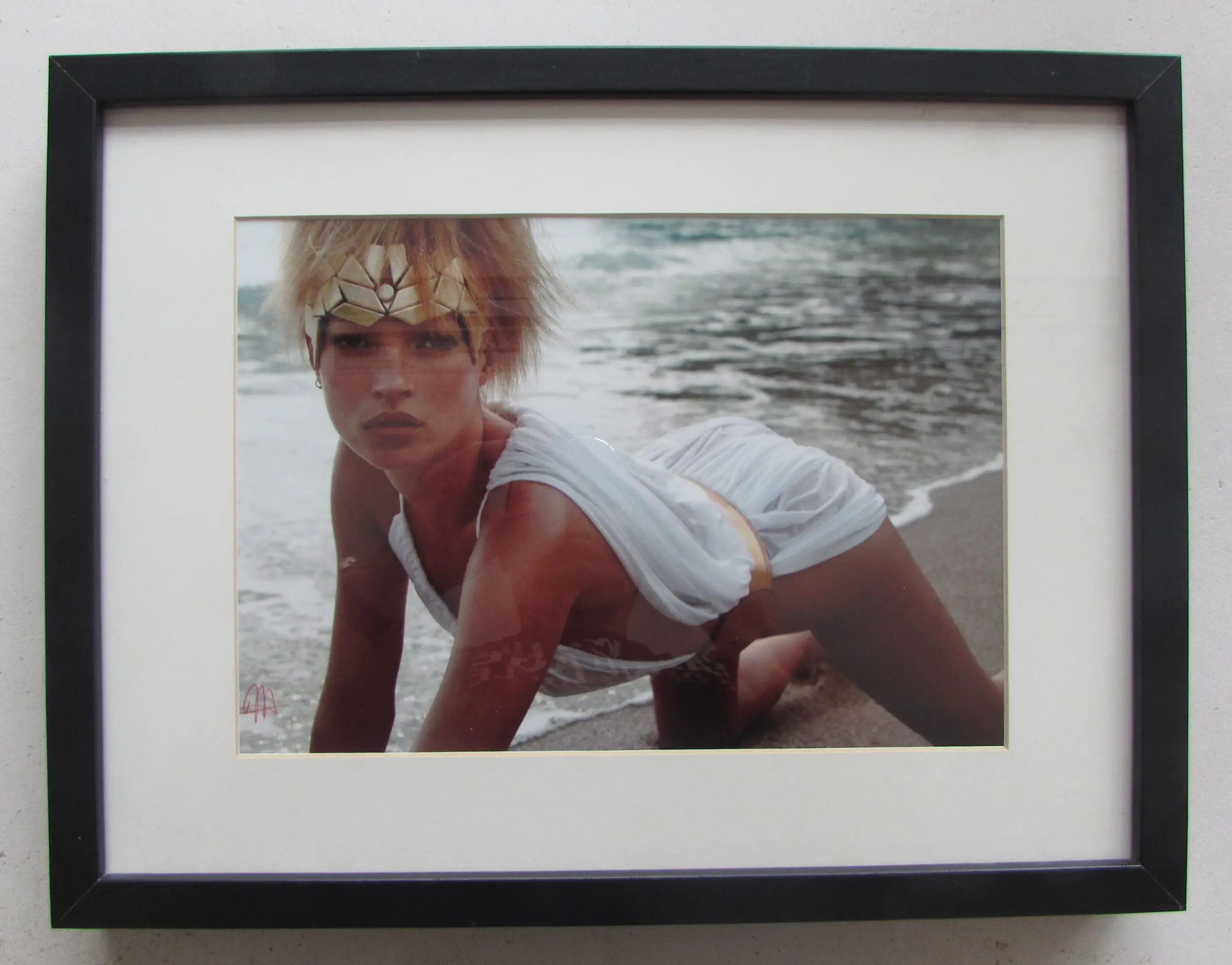 Foto van Inez van Lamsweerde van Kate Moss. Jaartal onbekend. De foto zit in een passepartout in een eenvoudige zwarte lijst. Ik heb de foto jaren geleden in bezit gekregen toen ik privé een grote verzameling foto's kocht. Van bijna alle foto's heb ik destijds de provenance kunnen achterhalen maar van deze helaas niet. Dat is de reden dat de foto voor een laag prijsje weg mag.