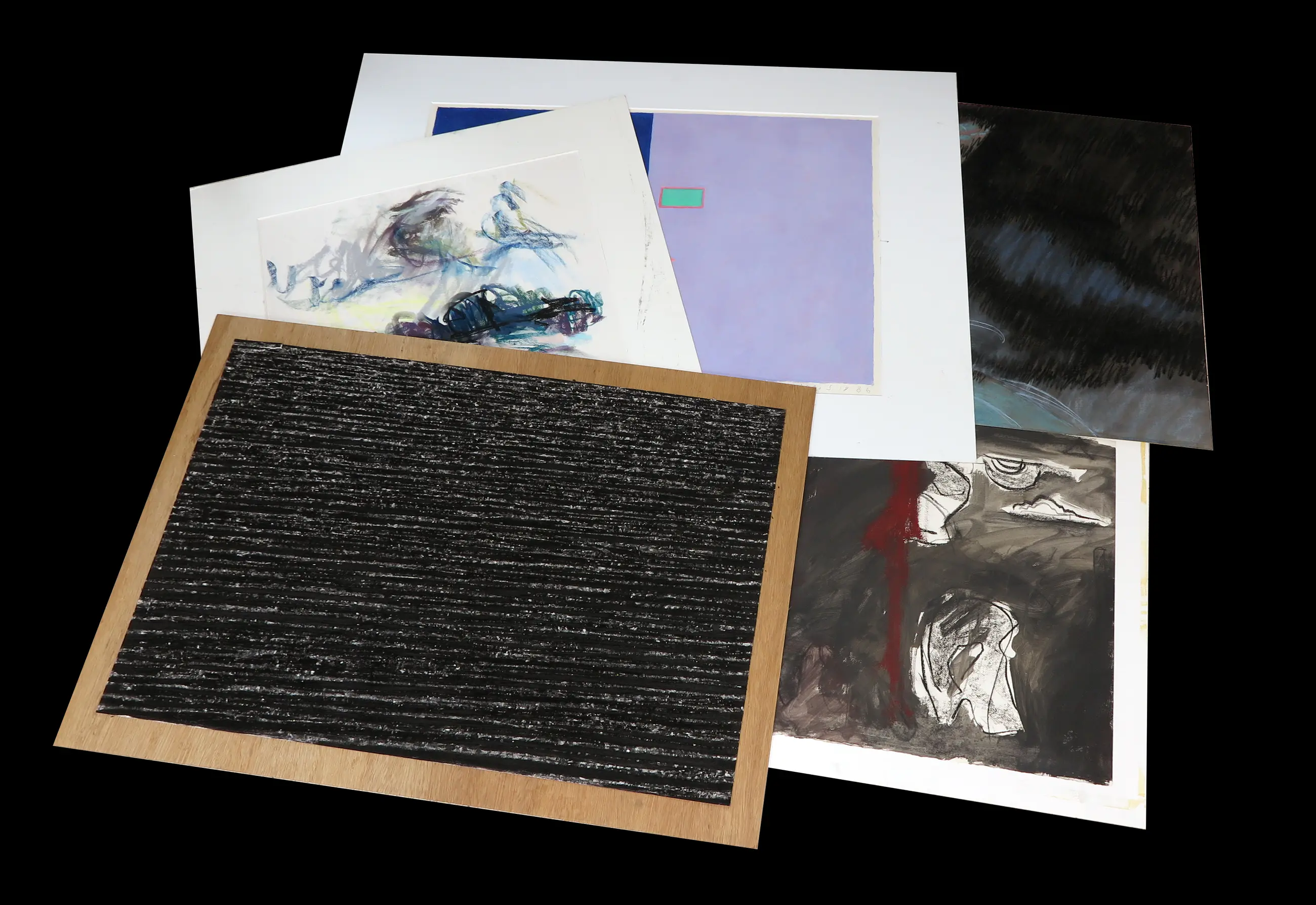 De conditie van de werken in dit lot verschilt. Over het algemeen zijn de werken in goede staat. Maar de werken kunnen enkele beschadigingen hebben (vouwlijnen, gekreukt papier, verkleuring, scheurtjes). Individuele werken worden niet beschreven. | |