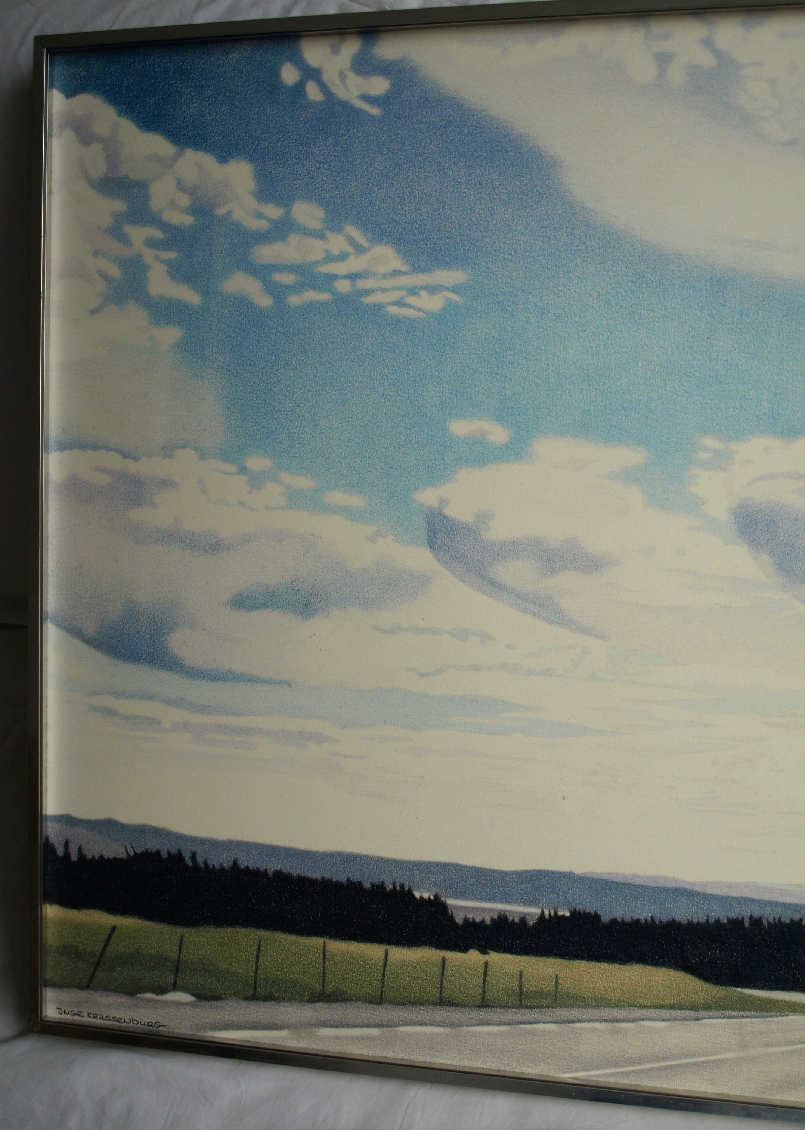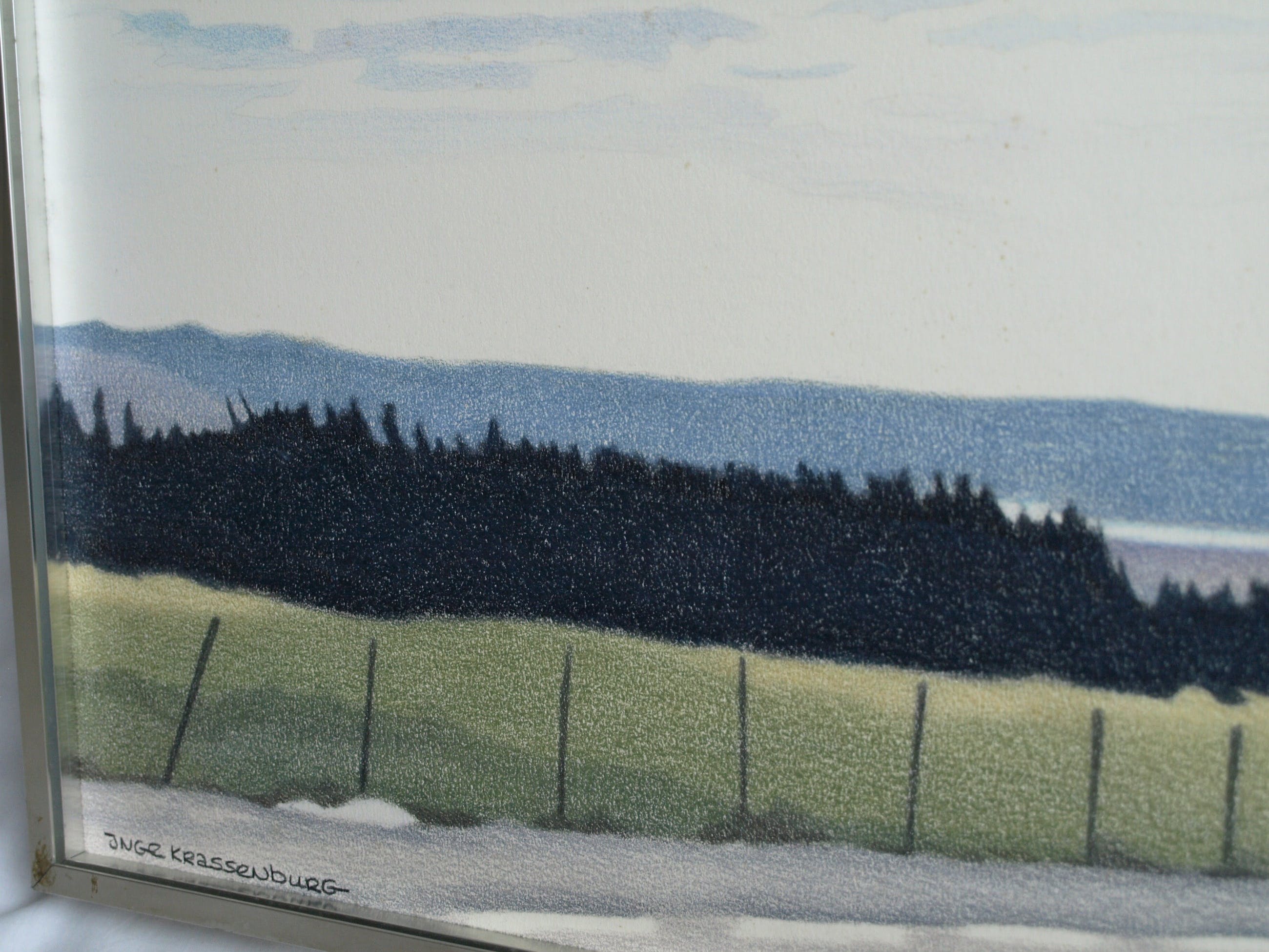 Een grote ingelijste tekening van de Nederlandse kunstenares Inge Krassenburg (1955).
