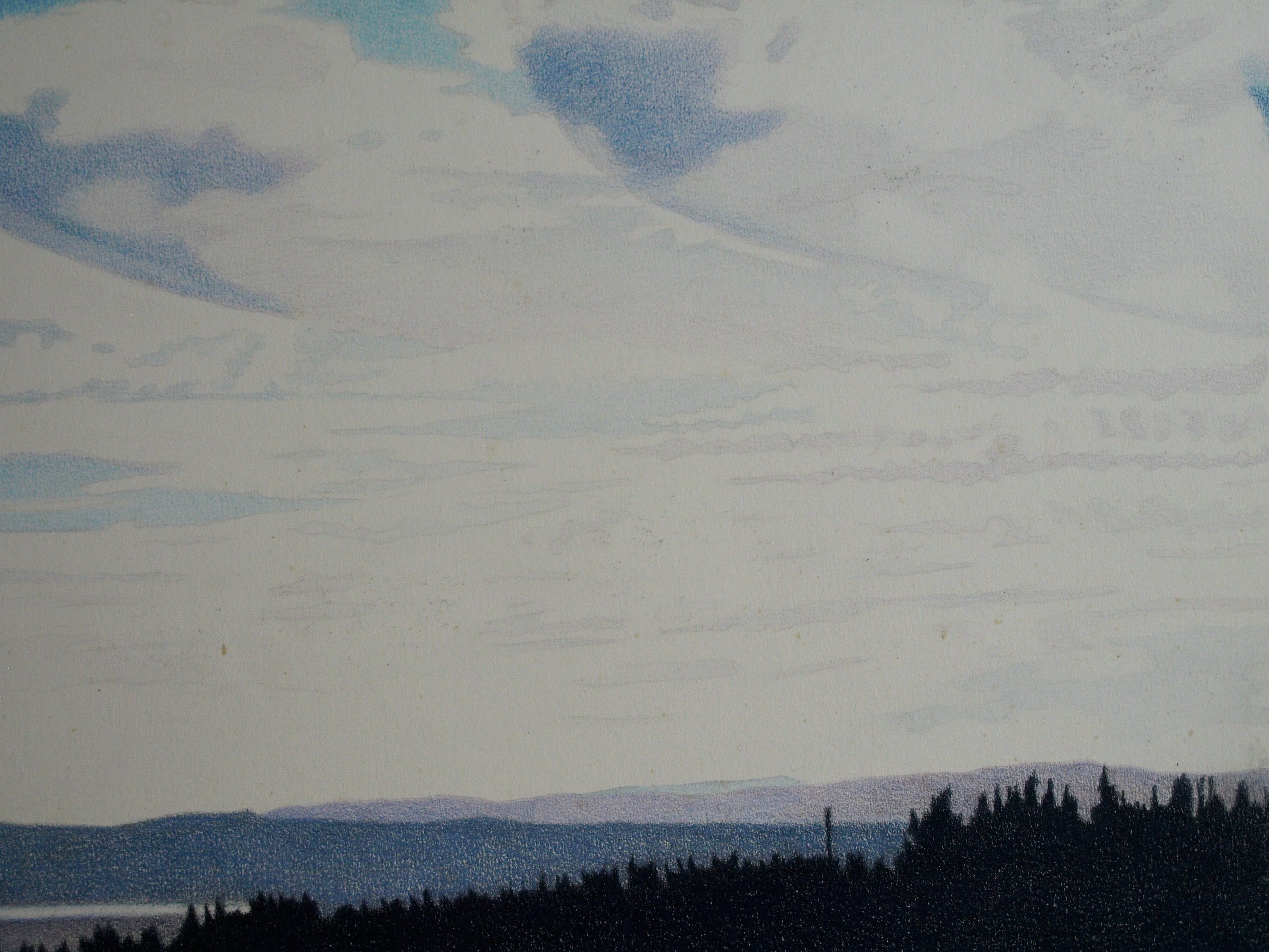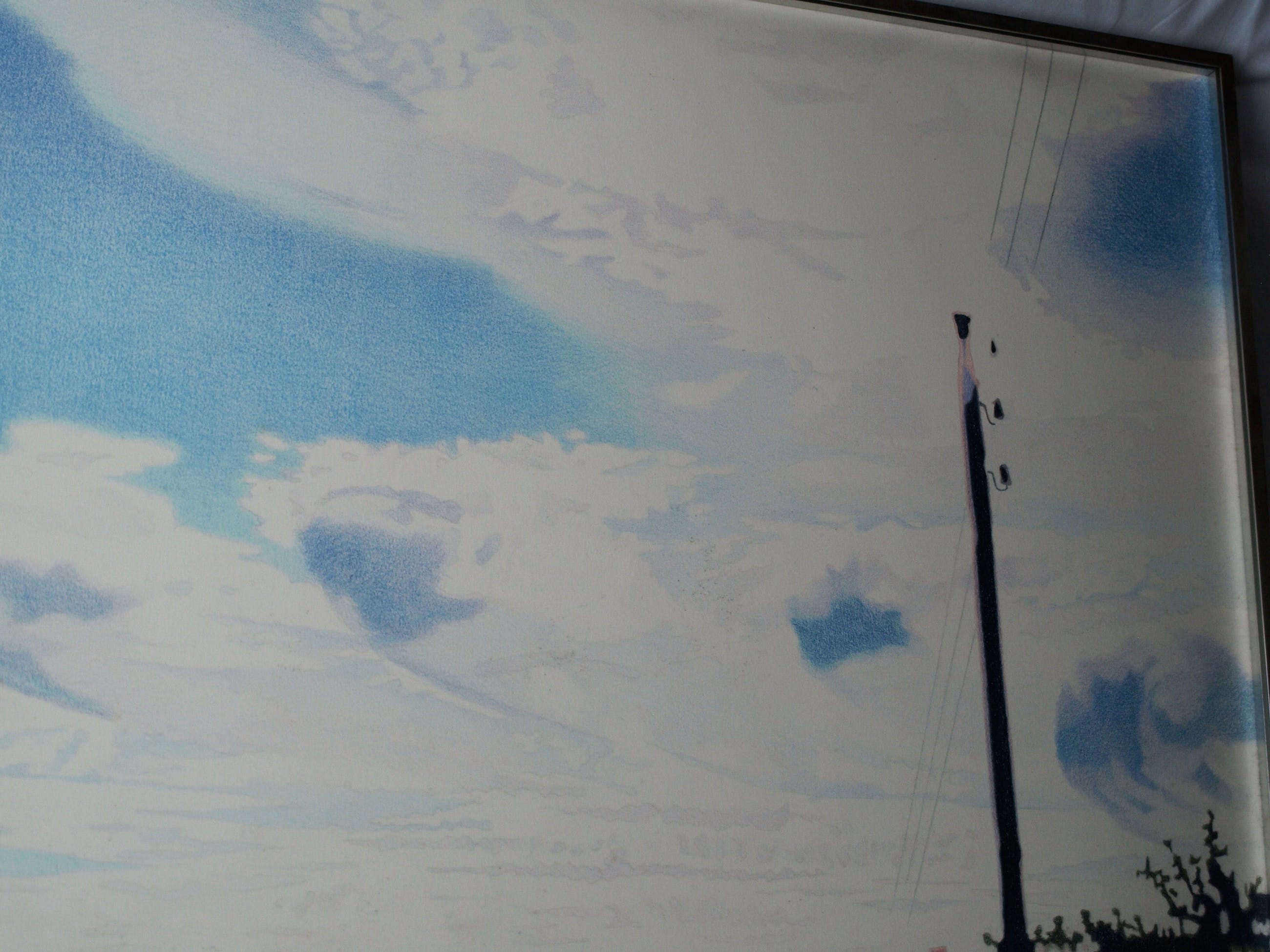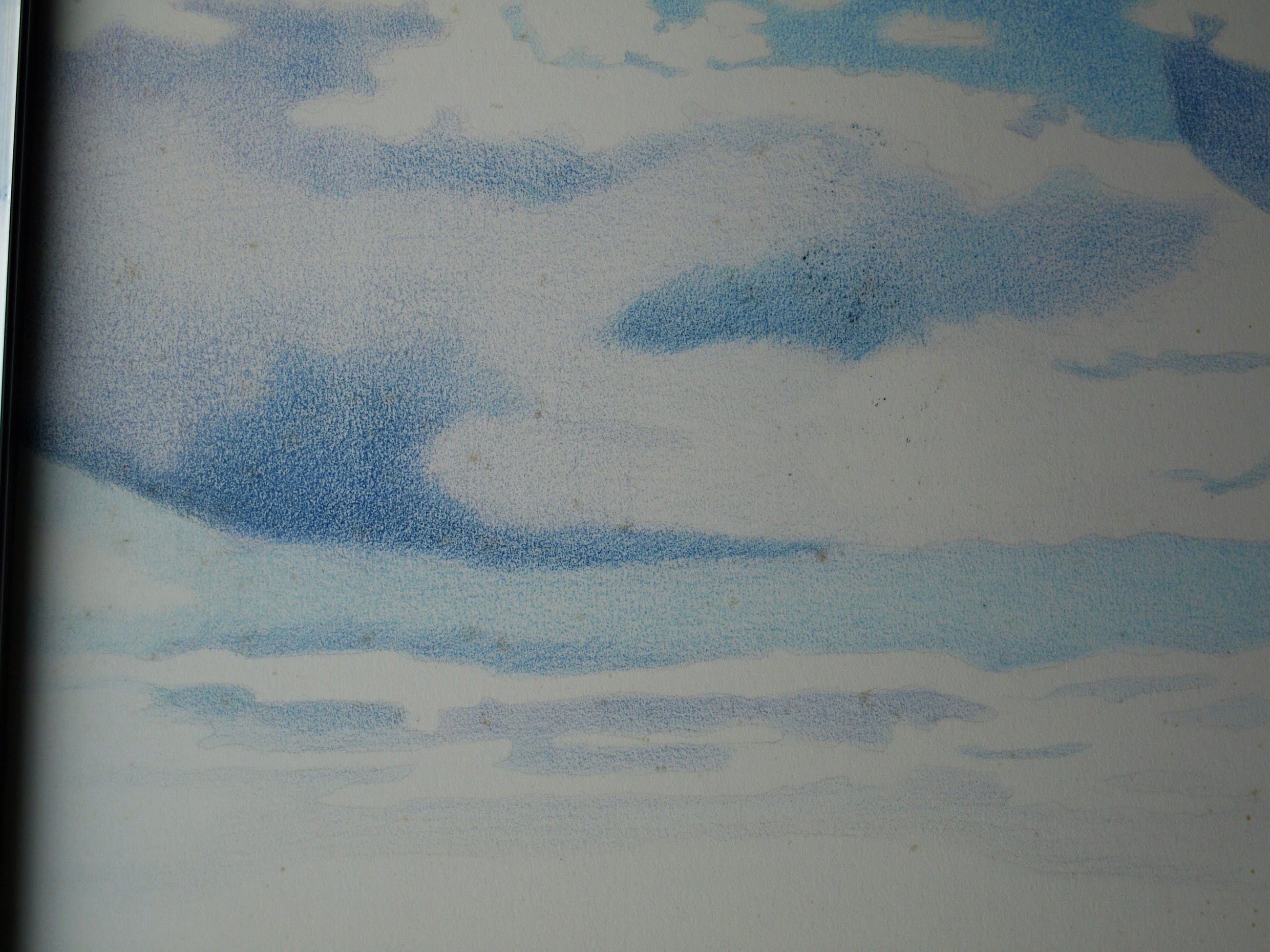 -Conditie: De tekening is in goede staat met wat lichte vlekjes en een paar kleine ‘zuurvlekjes’. De lijst heeft een paar vlekjes t.g.v. verwijderde stickers.