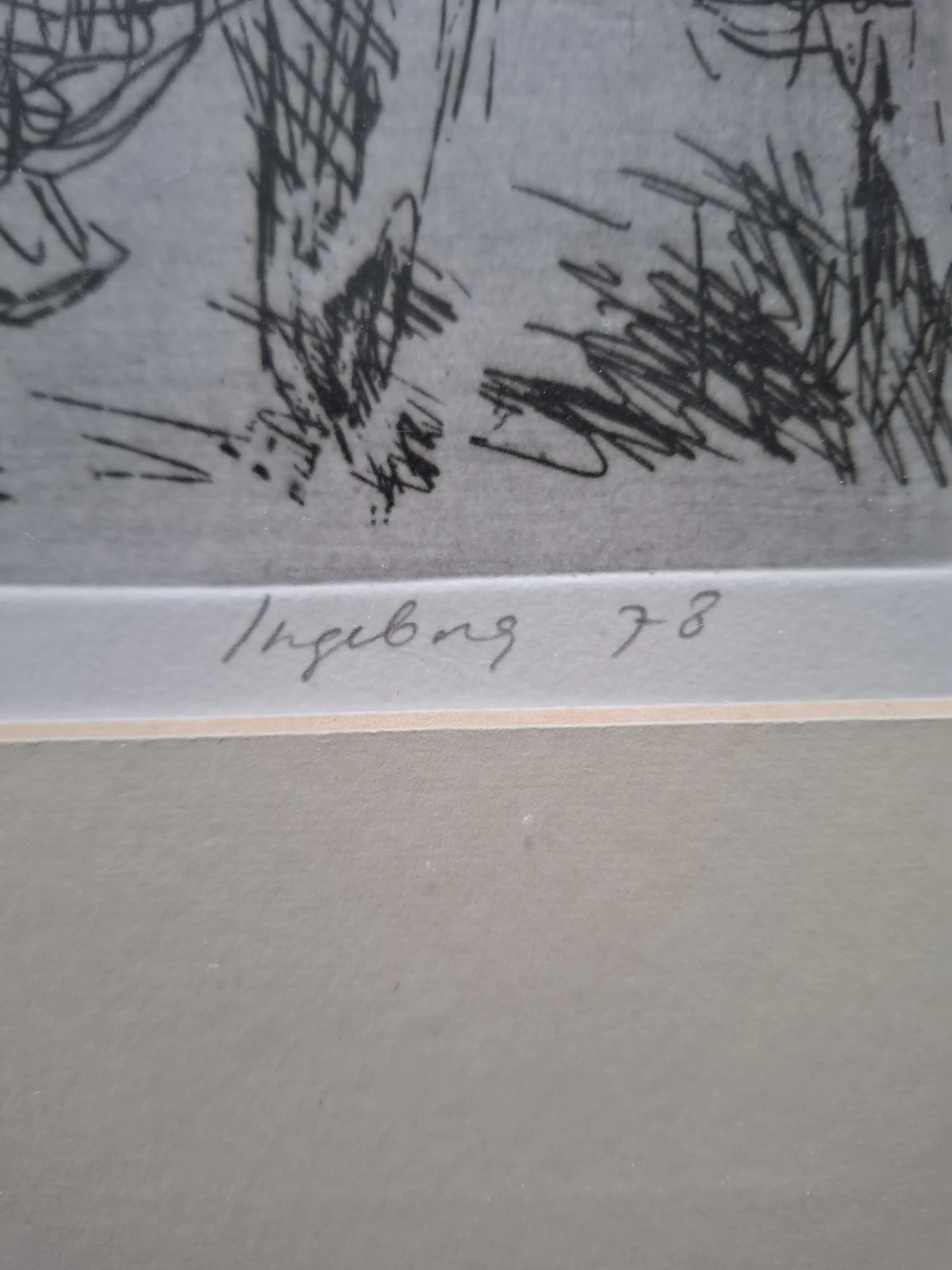 Karaktervol werk van Ingeborg Oderwald, professioneel ingelijst. Verbeeldt de kunstenaar hier zichzelf..? Alleen zij weet het.. Het maakt het werk enigszins mysterieus. De achterzijde van het werk is de biografie opgenomen van de kunstenaar.