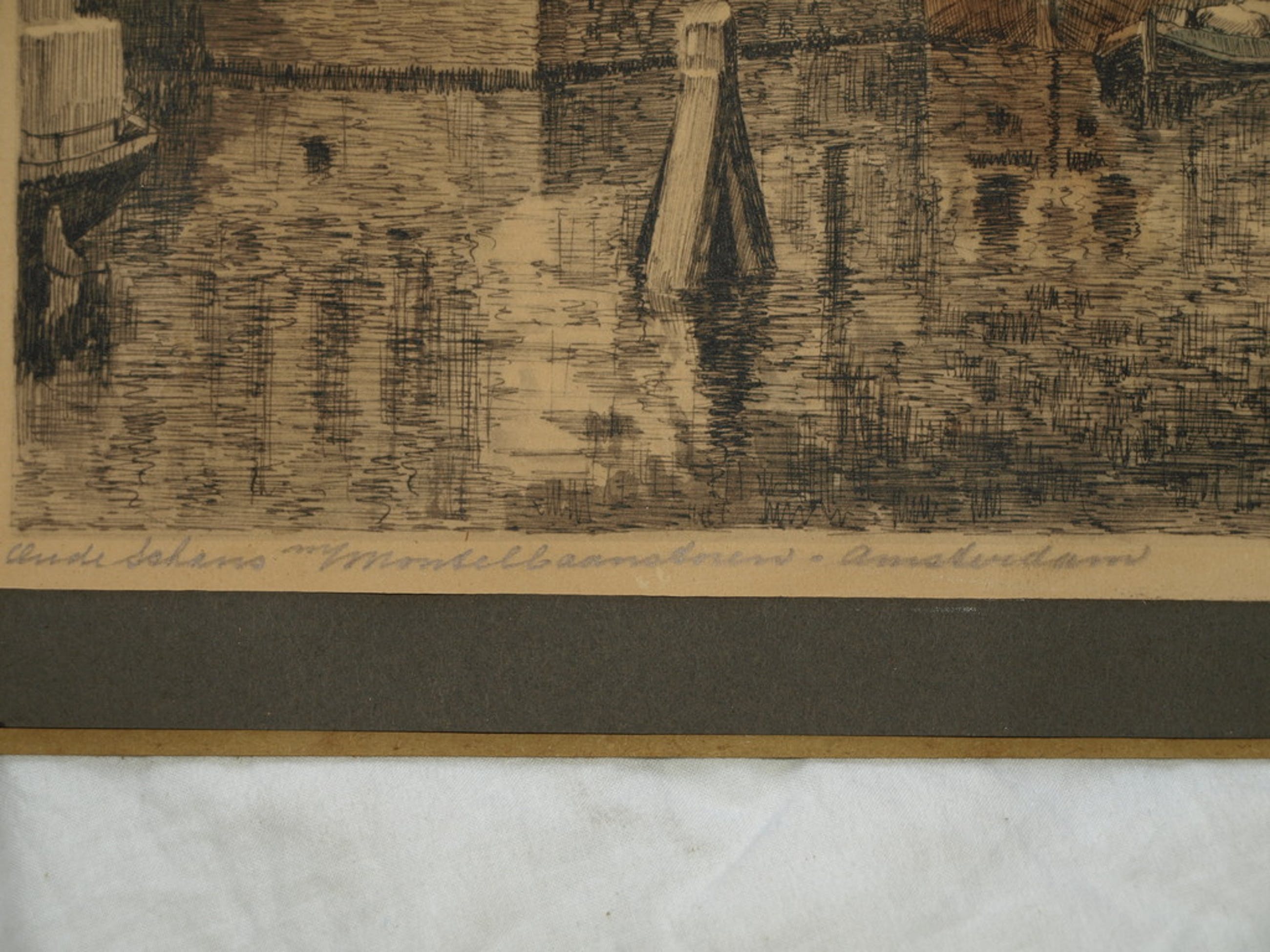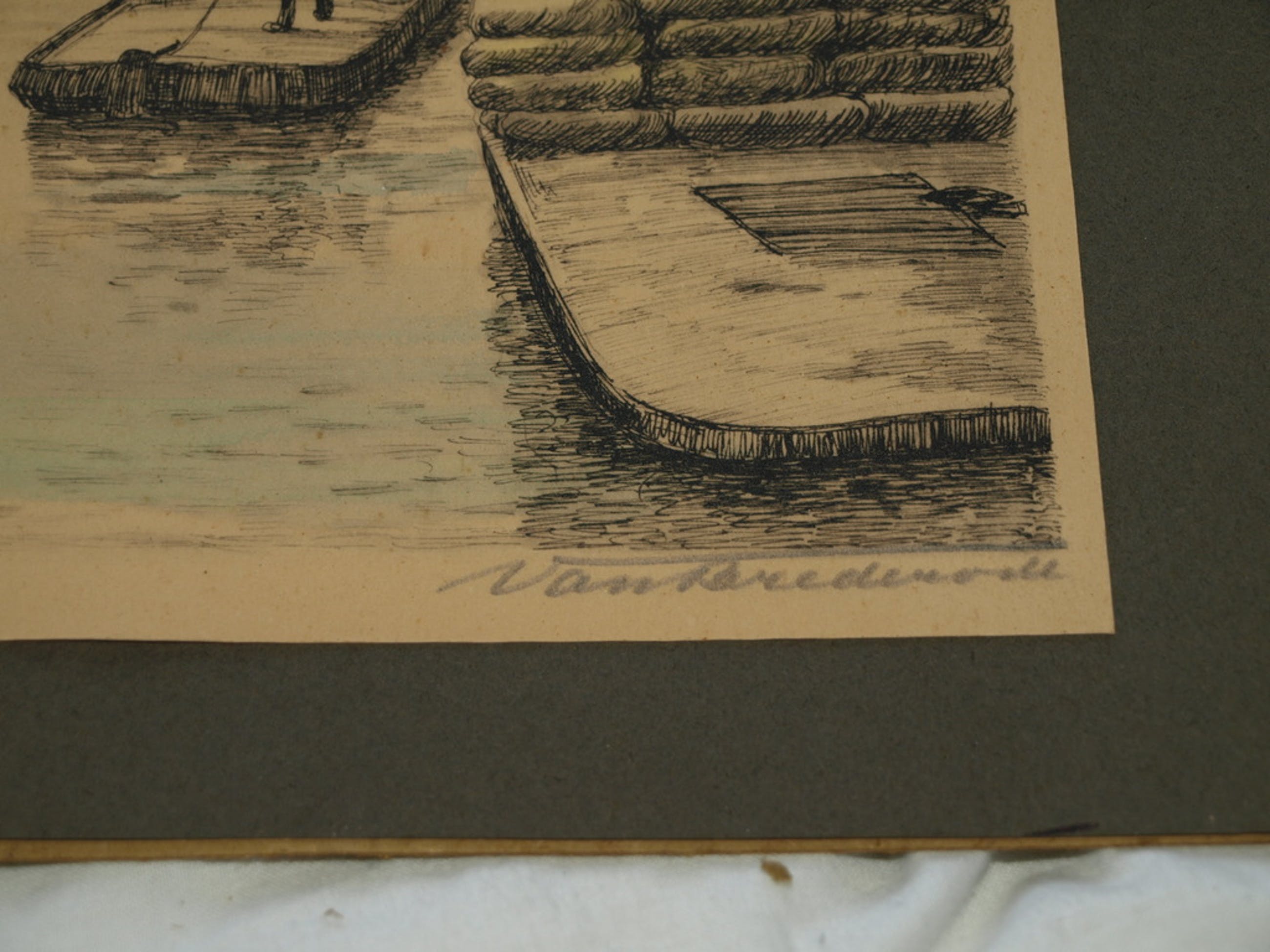 Gesigneerd ‘Van Brederode’ en getiteld met potlood. De prent is (niet meer) ingelijst en zit geplakt op papier en heeft nog wel de kartonnen achterplaat.