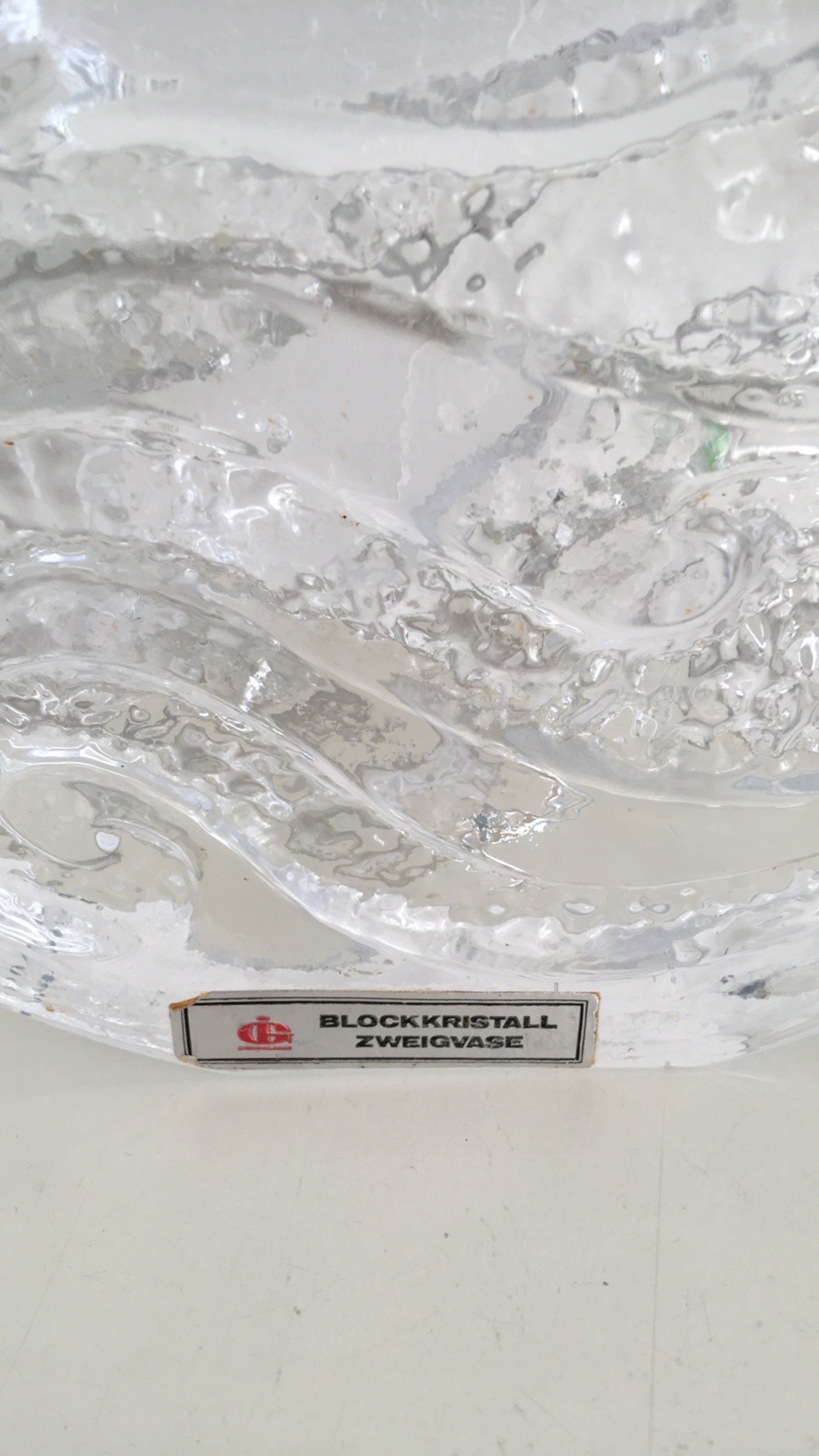 Prachtige zwar, massieve, kristallen vaas. Reliëf golven in het kristal verwerkt. Originele sticker.