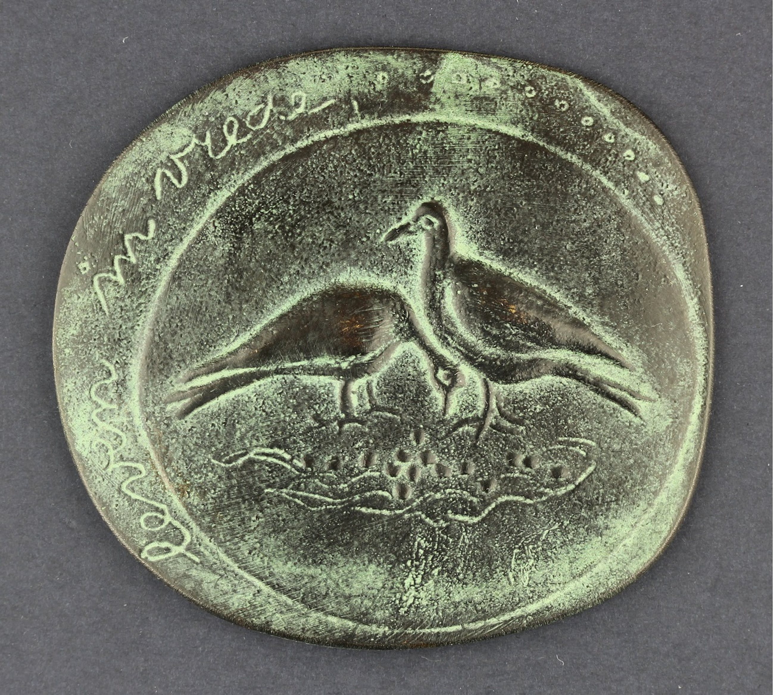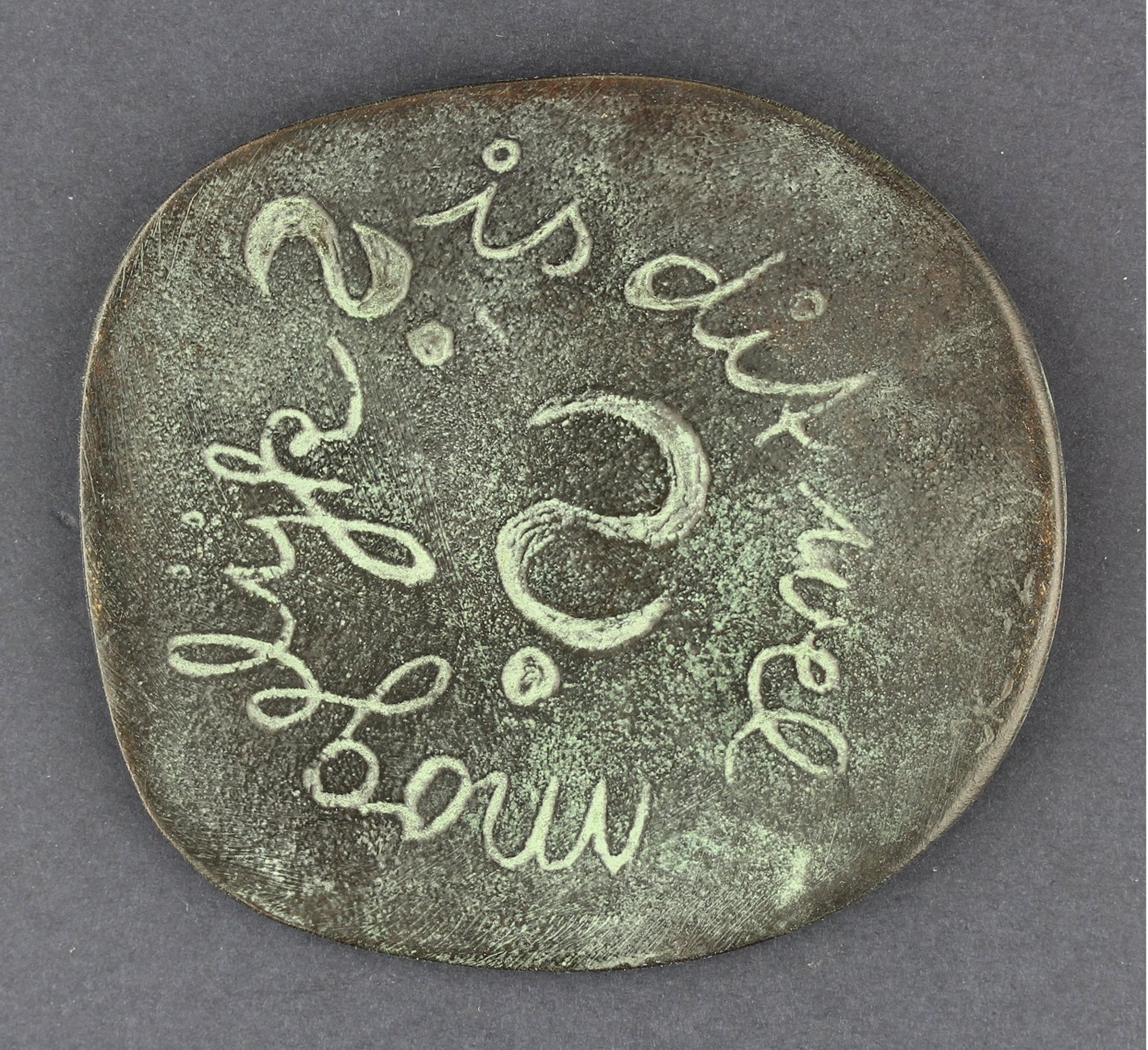 1973-08 Leven in vrede, brons, 82 x 75 mm, signatuur IK ’72.