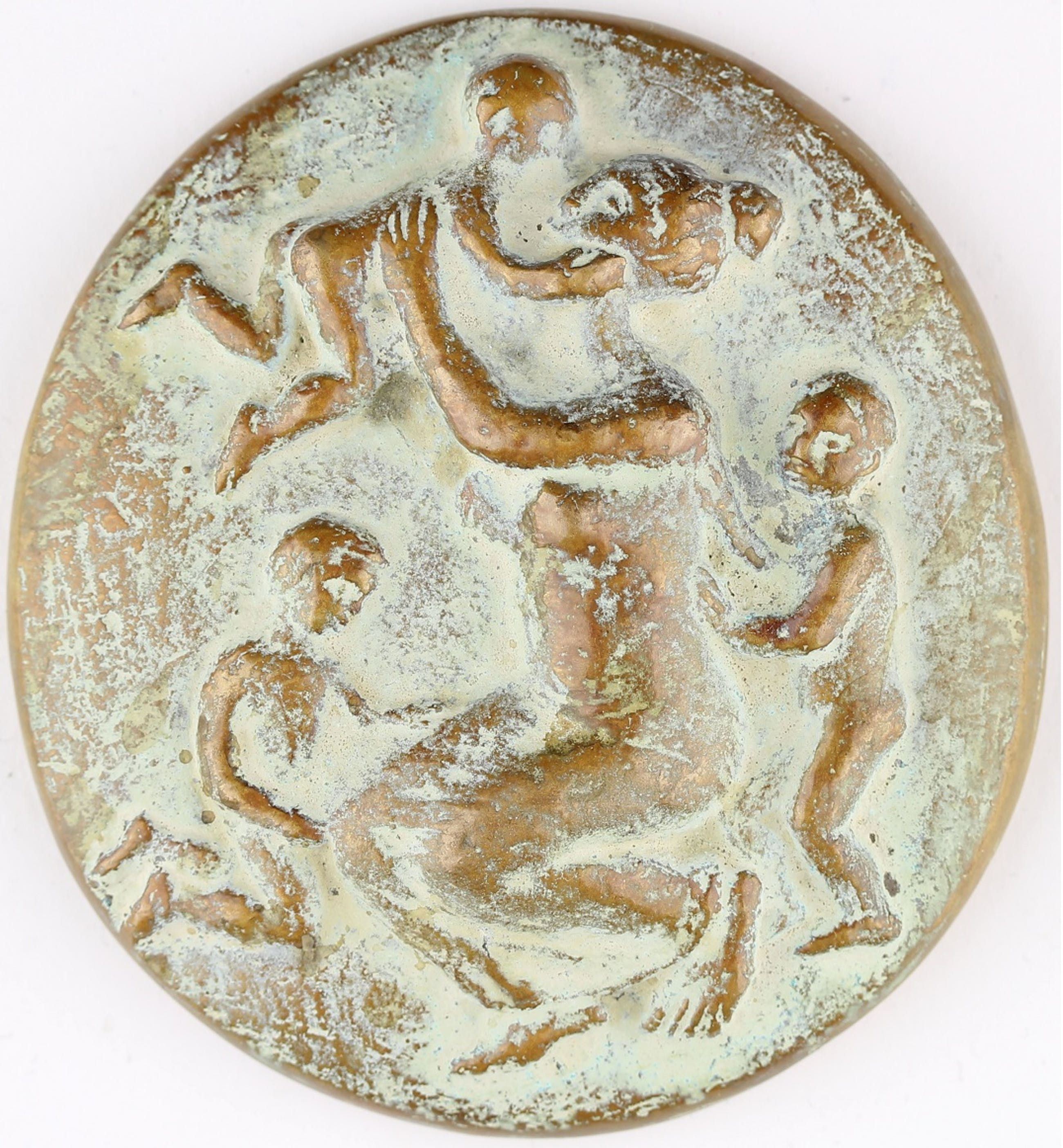 Bronzen penning Inka Klinckhard, 1964: Afmetingen: 88 x 80 x 18 mm Gewicht: 504 gr