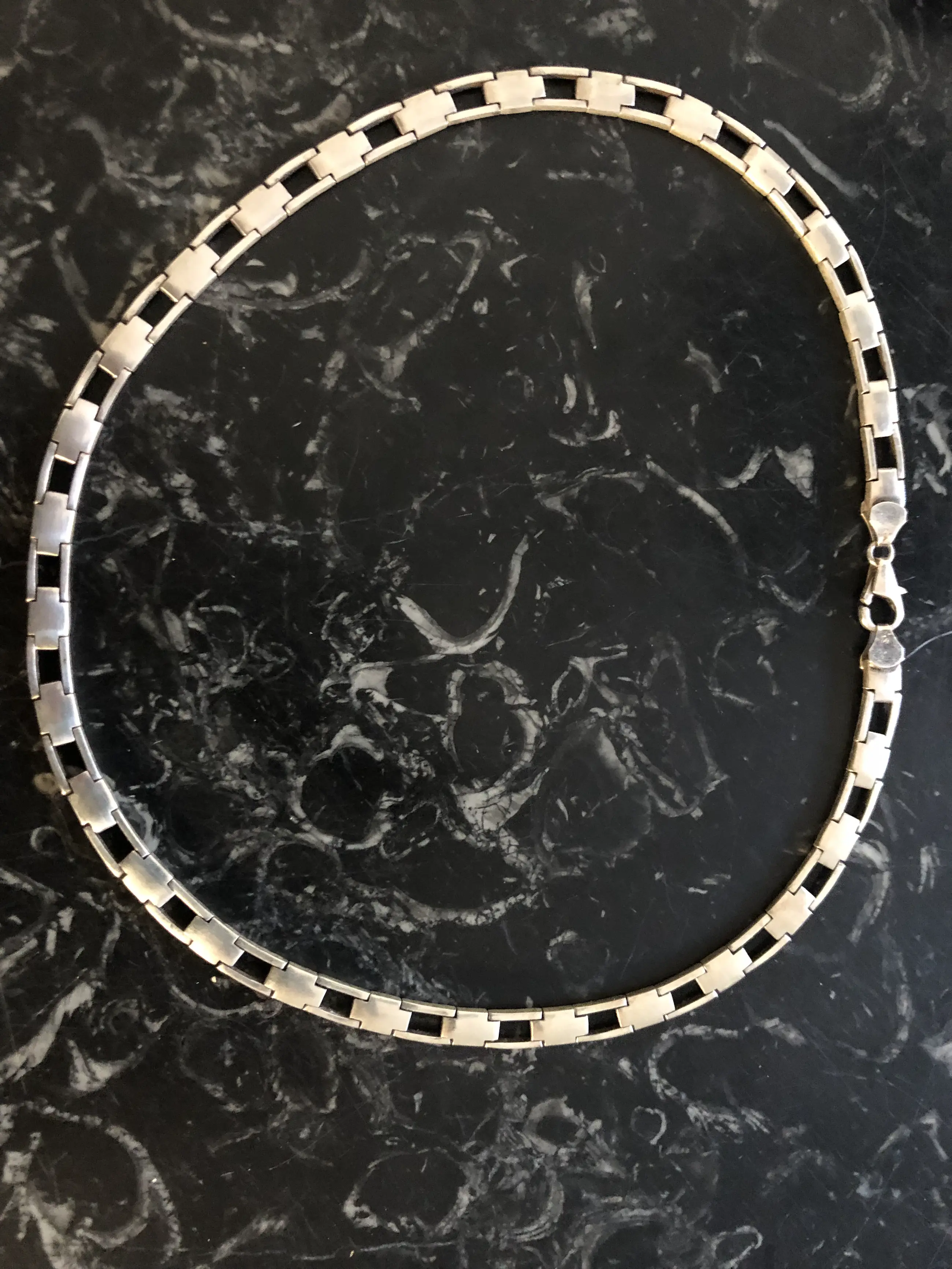 Zilveren dames choker. Lengte 47 cm gewicht 44 gram. Gemerkt 925. Hoogte 0,6 cm
