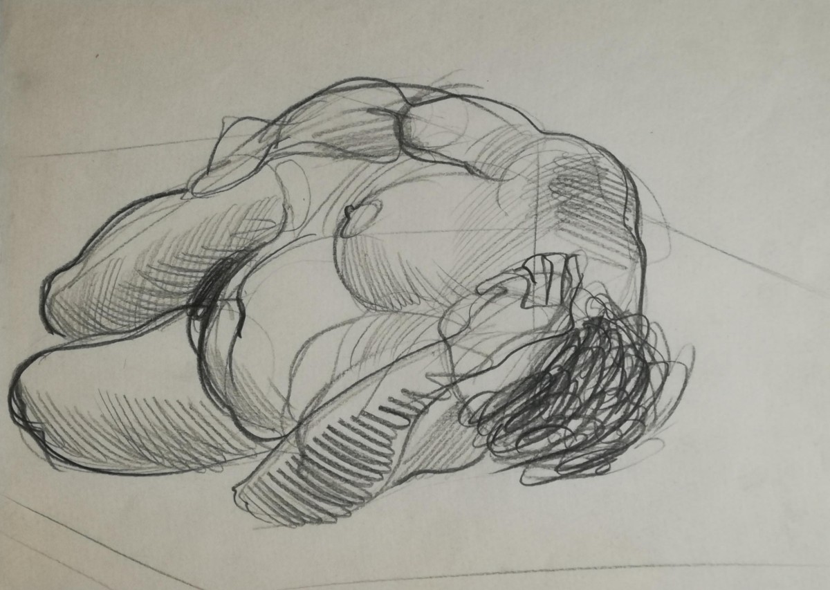Aktstudie auf Papier 35,5x25 cm aus der Akademiezeit. Schwarzer Stift auf leicht gelblichen Papier; Algemein guter Zustand. Versand gratis innerhalb Deutschland, weitere Länder bitte anfragen.