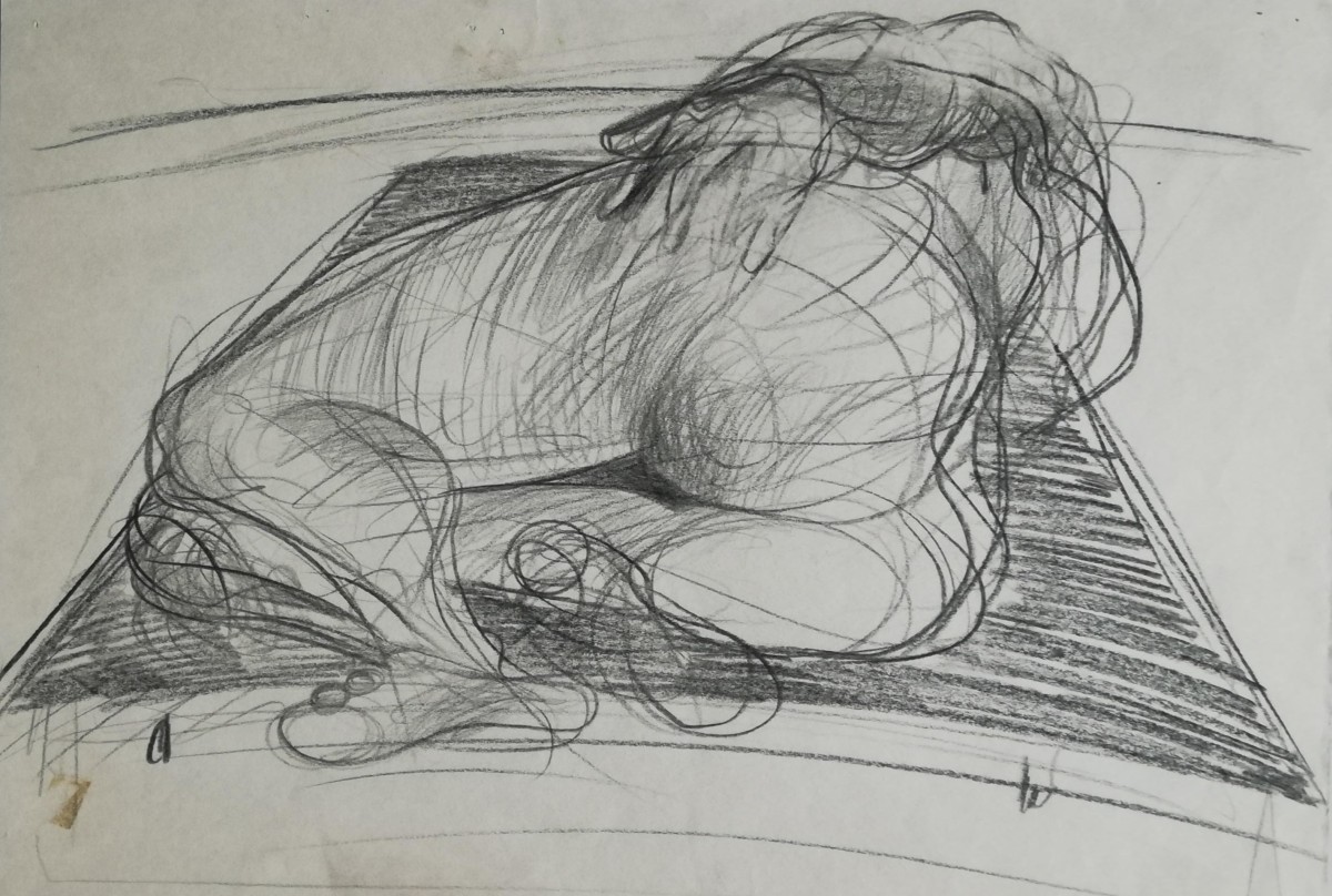 Ion isaila - Studie: Liegender Akt, Zeichnung, 1977