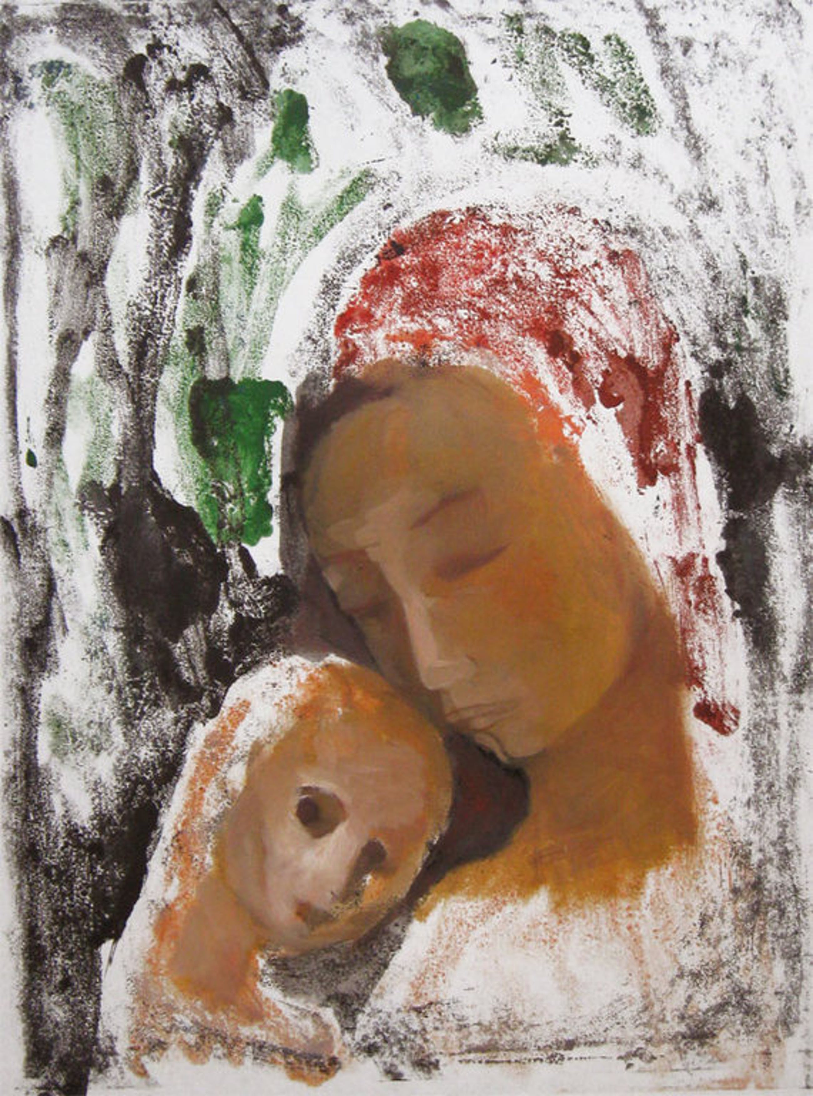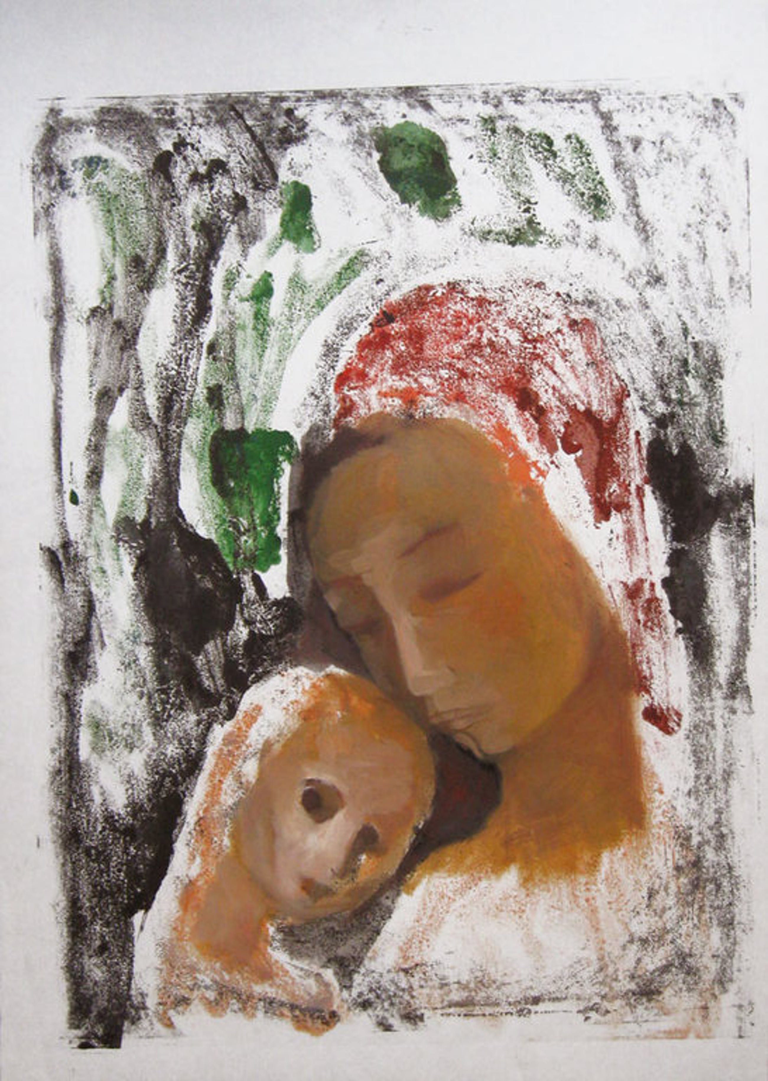 Uitdrukkingsvol kunstwerk op papier - uit nalatenschap. Niet gedateerd, niet gesigneerd. MOEDER EN KIND - Olieverf op papier. Afm: 32 x 45 cm. Irene Joffroy was behalve doctoranda en werkzaam in de geestelijke gezondheidszorg tevens beeldend kunstenares en schrijfster van haiku's. . Verzending 10 euro. Belgie 12,40.