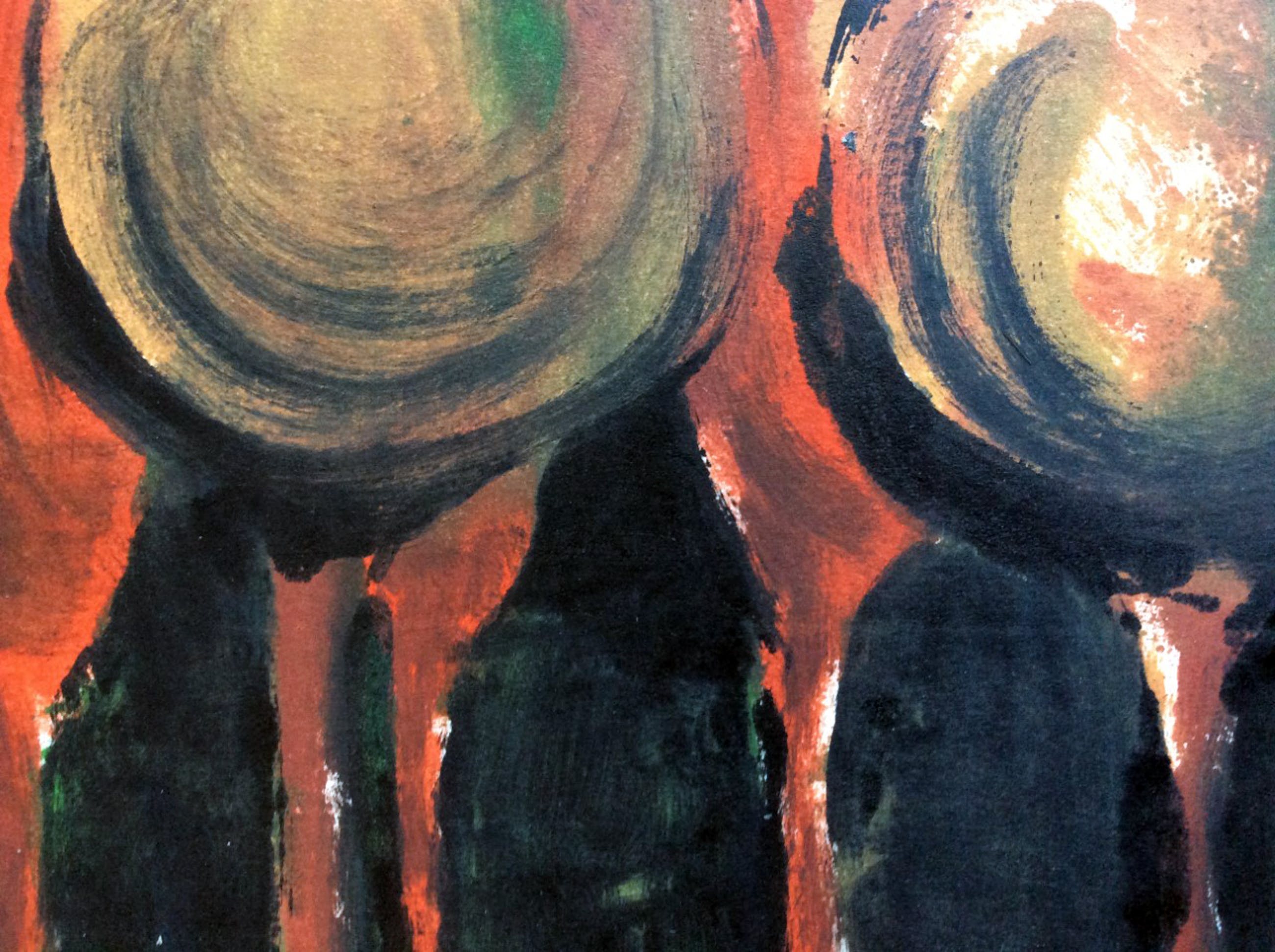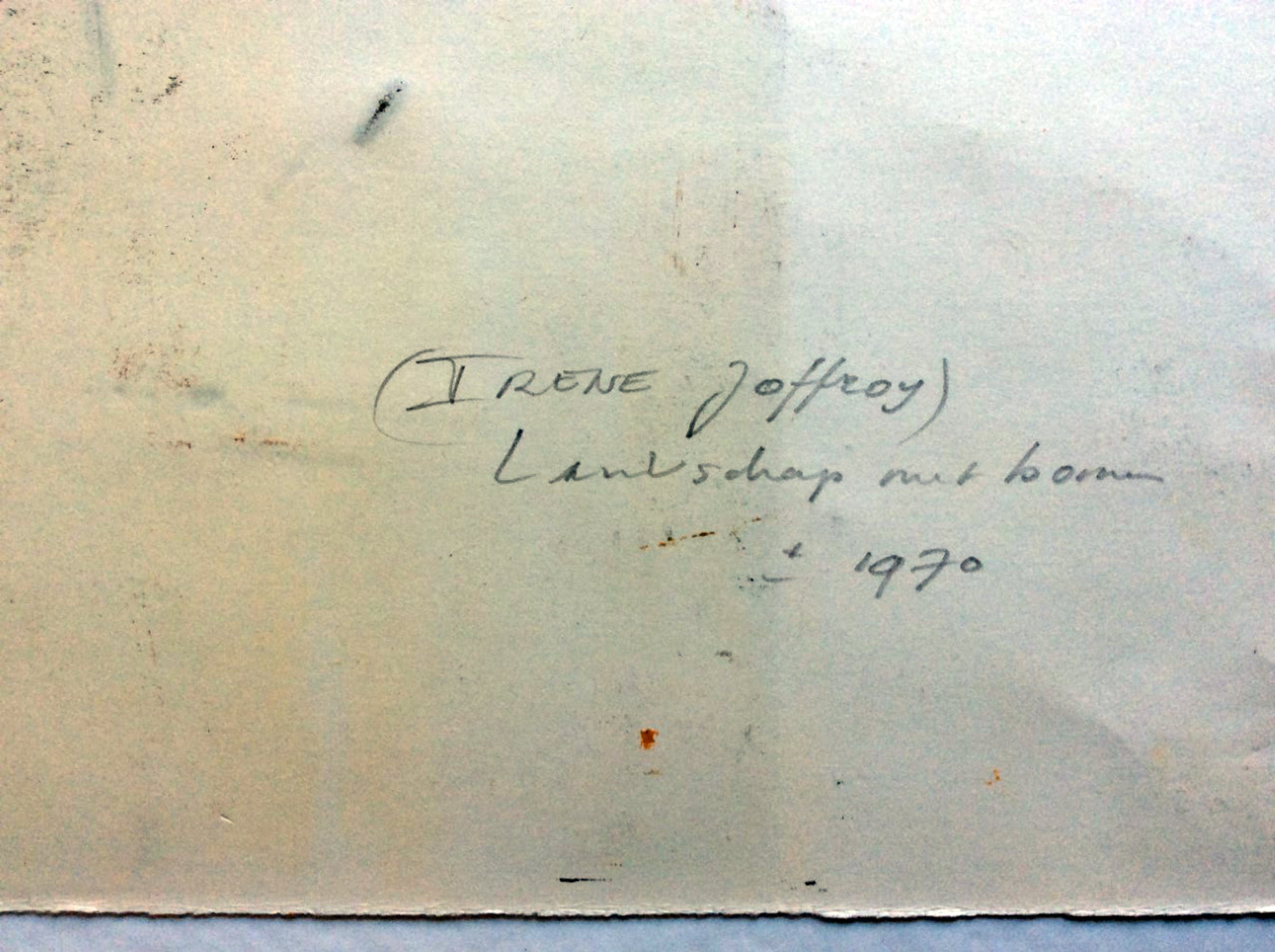 Irene Joffroy: Landschap met bomen.Olieverf op stevig papier.Ca. 1970Afm. incl. 32 x 48 cm, schilderij grootte 30 x 33 cm.Uit nalatenschap.