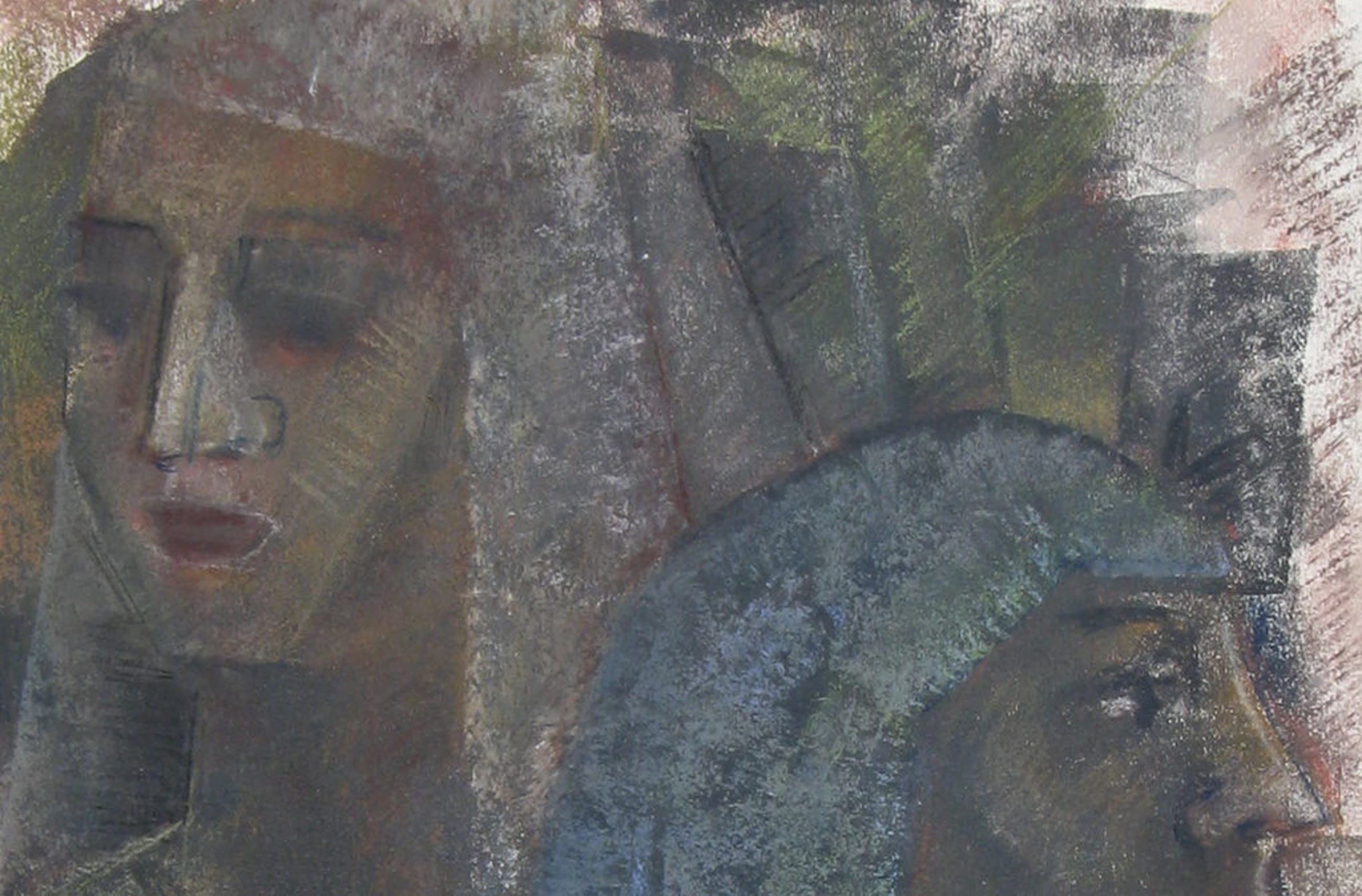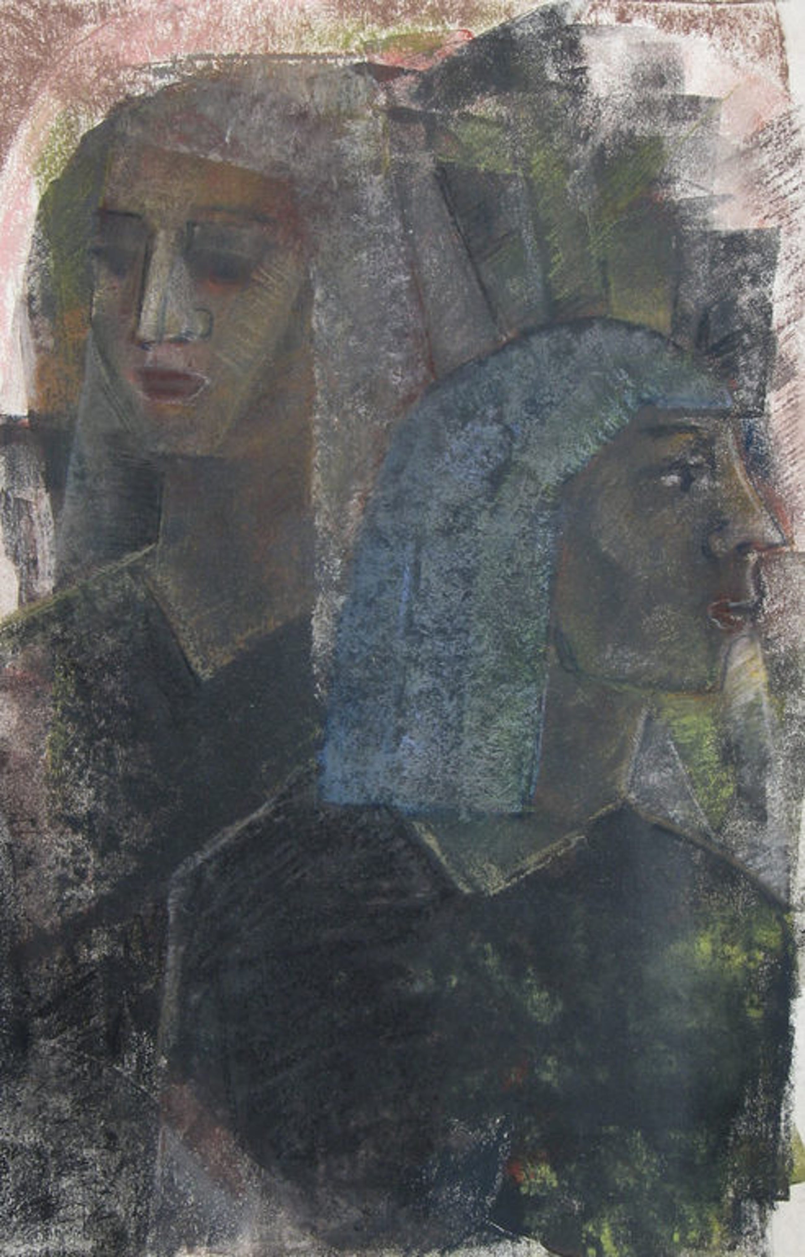 Mooi, lichtelijk kubistisch, dubbelportret van 2 vrouwen, Irene Joffroy. Olieverf en krijt op papier, datum ca. 1975. Niet gedateerd, uit nalatenschap. Info achterop. Afm: blad 36 x 48 cm; afbeelding 28 x 44 cm. Verzending NL 10 euro, Belgie 15 euro.