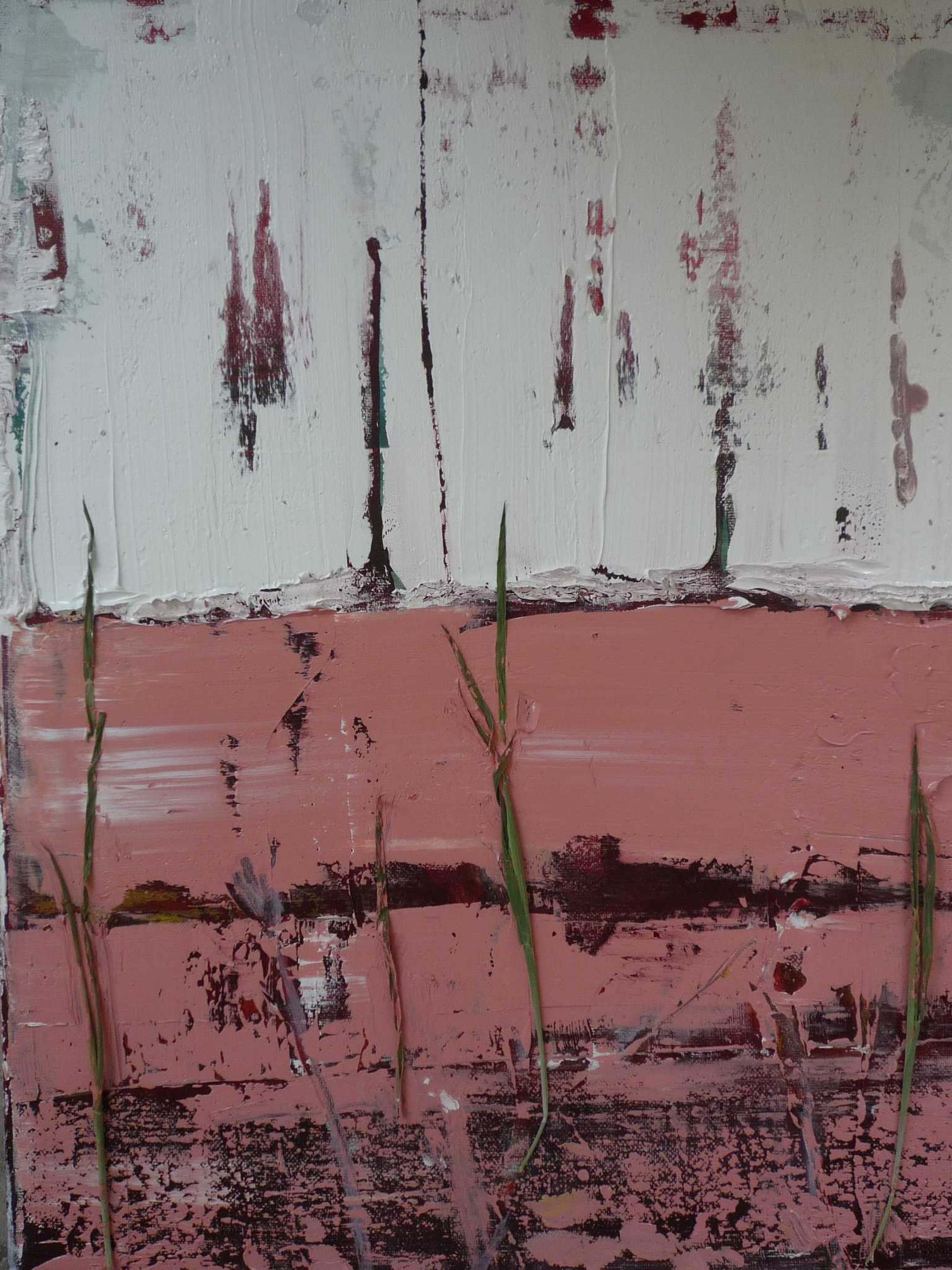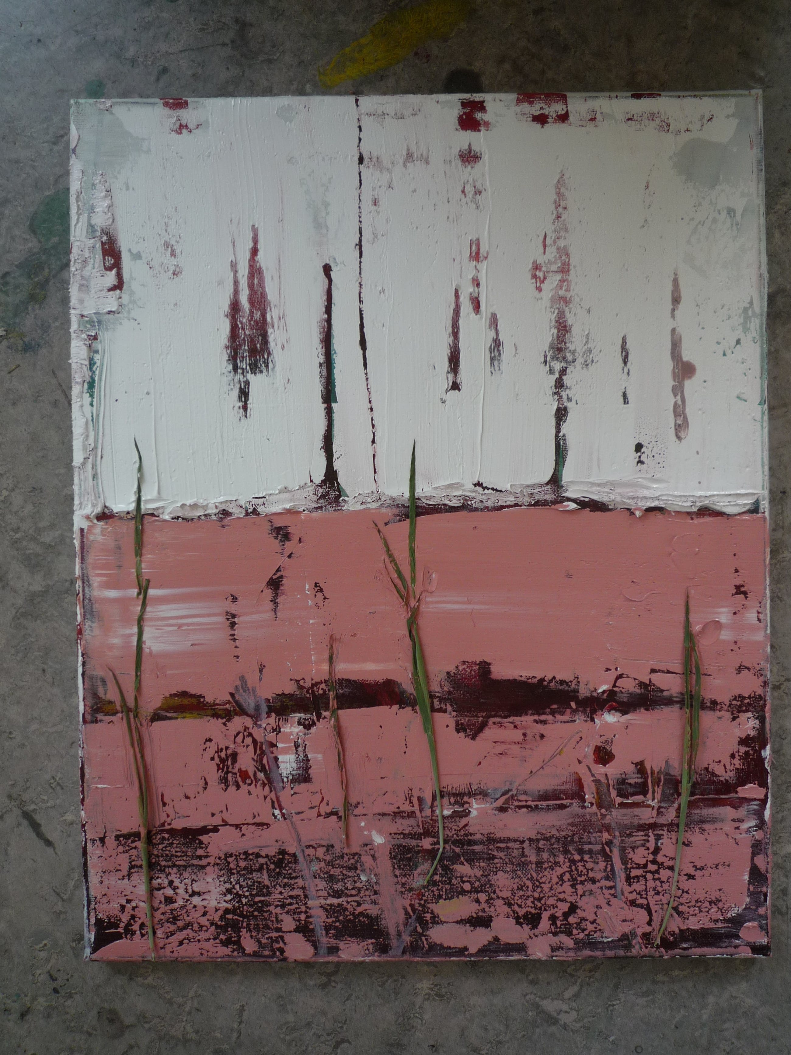 Impasto doek in olieverf met gedroogd grasstengeltje.